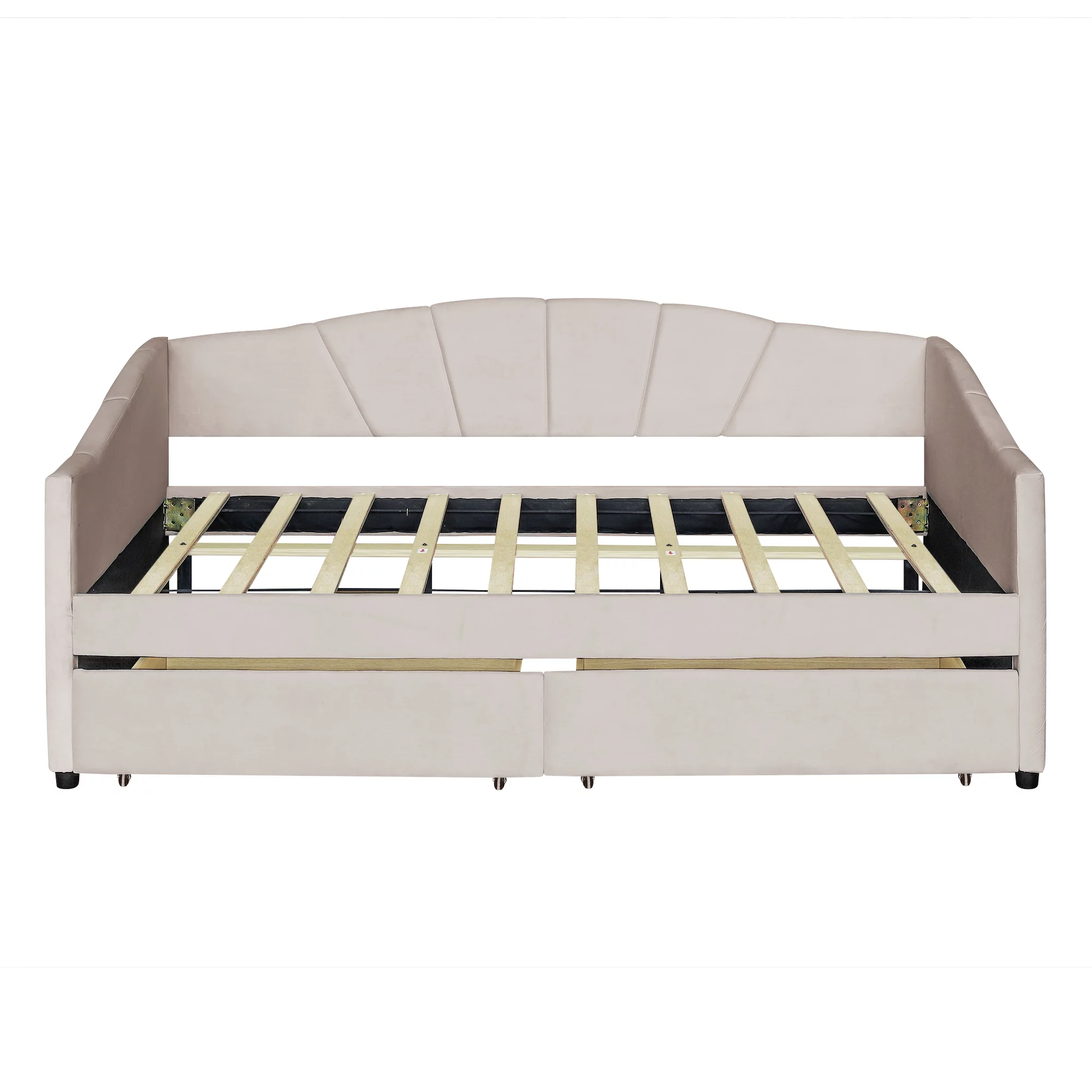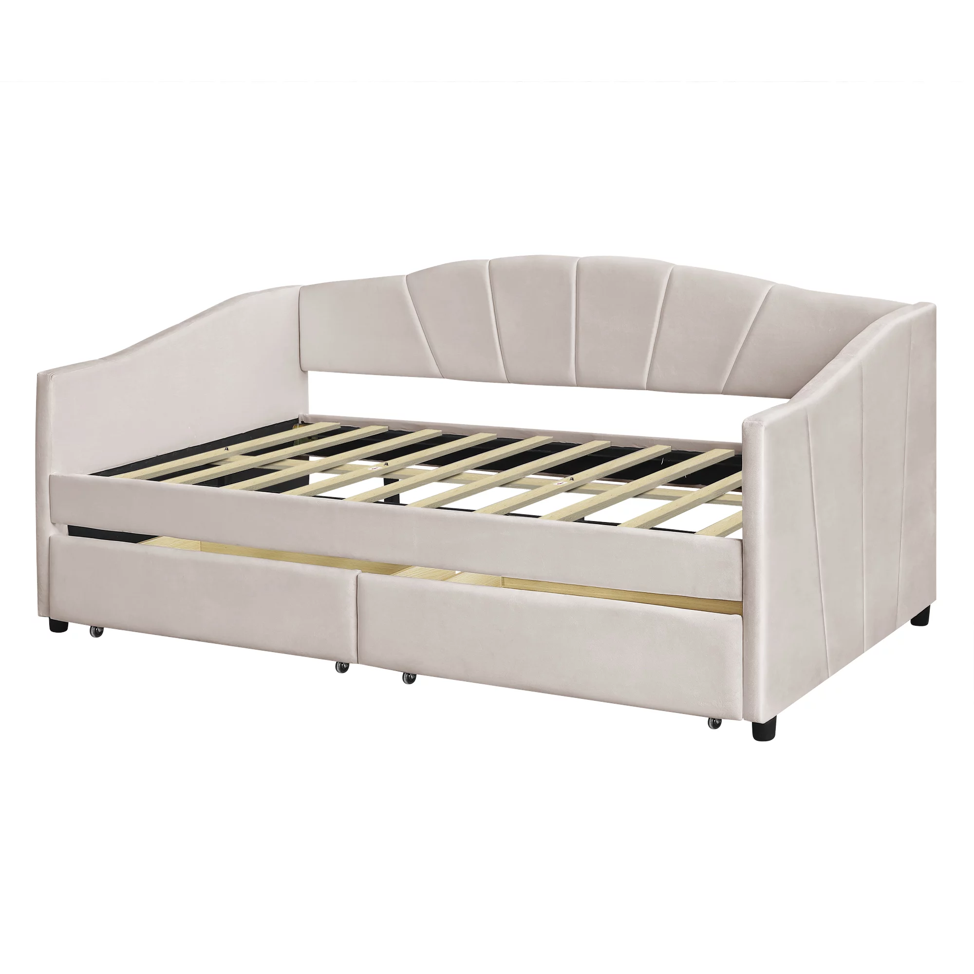 CoSoTower Upholstered Daybed Twin Size With Two Drawers And Wood Slat Suppot, Beige