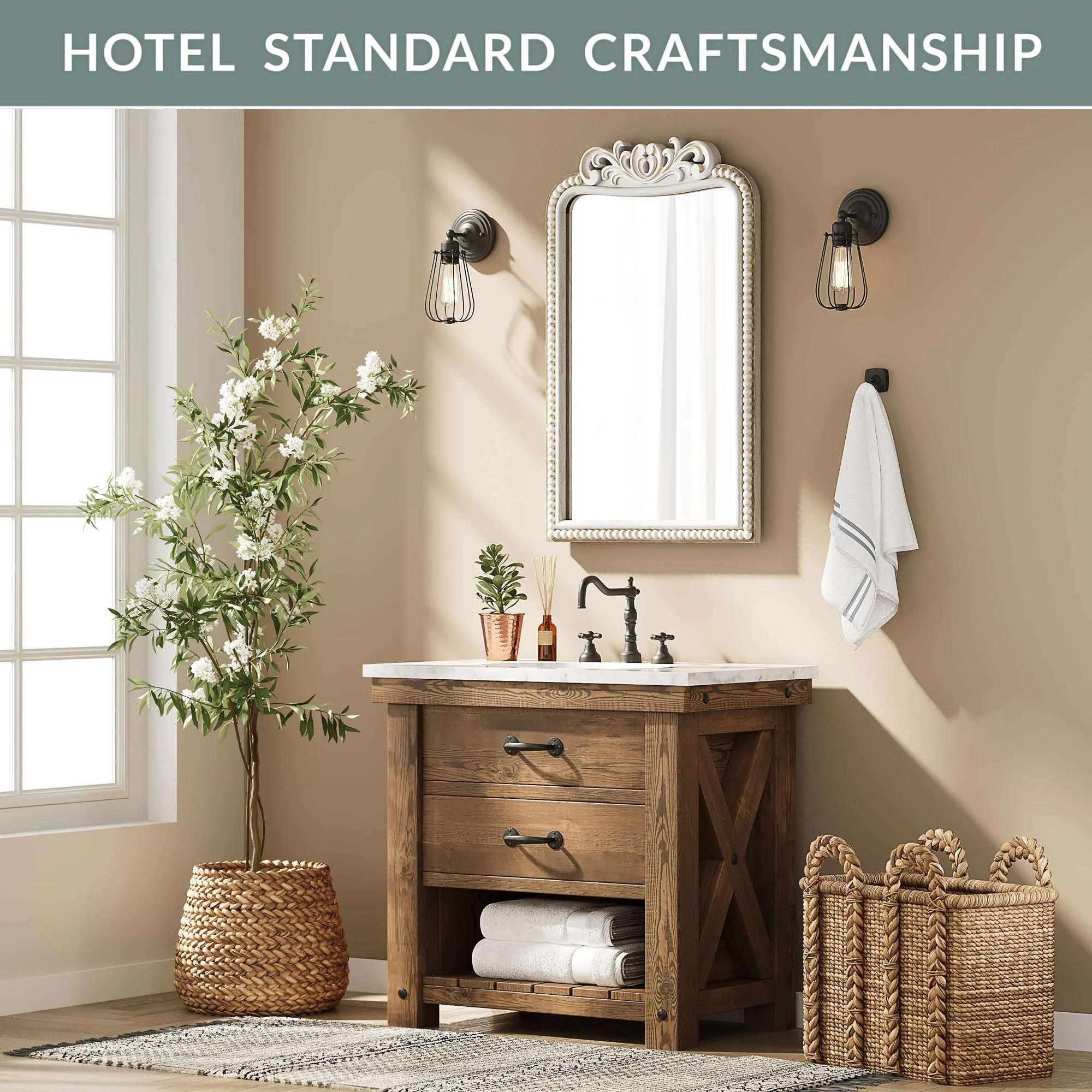 Wall Arch Mirror – Arch & Flourish - MDF Back Arched Ornate Mirror For Vanity, Living Room Or Event – Home Décor