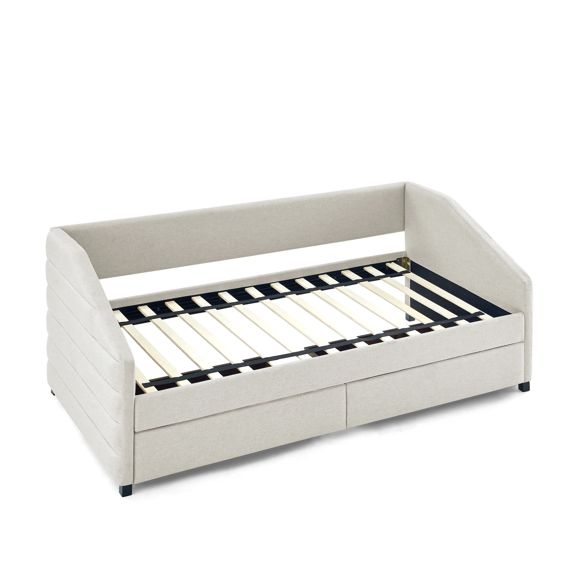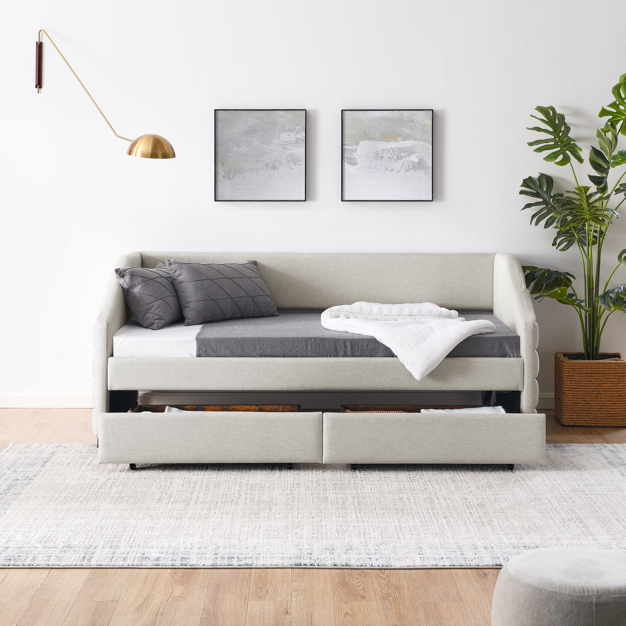CoSoTower Twin Size Daybed with Two Drawers Trundle Upholstered Tufted Sofa Bed, Linen Fabric, Beige (82.5"X42.5"X34")