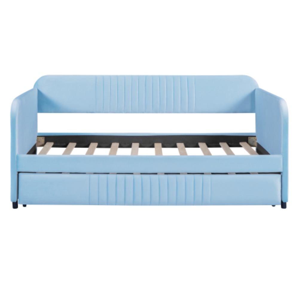 Upholstered Daybed Sofa Bed Twin Size With Trundle Bed and Wood Slat, Light Blue Light Blue + Upholstered