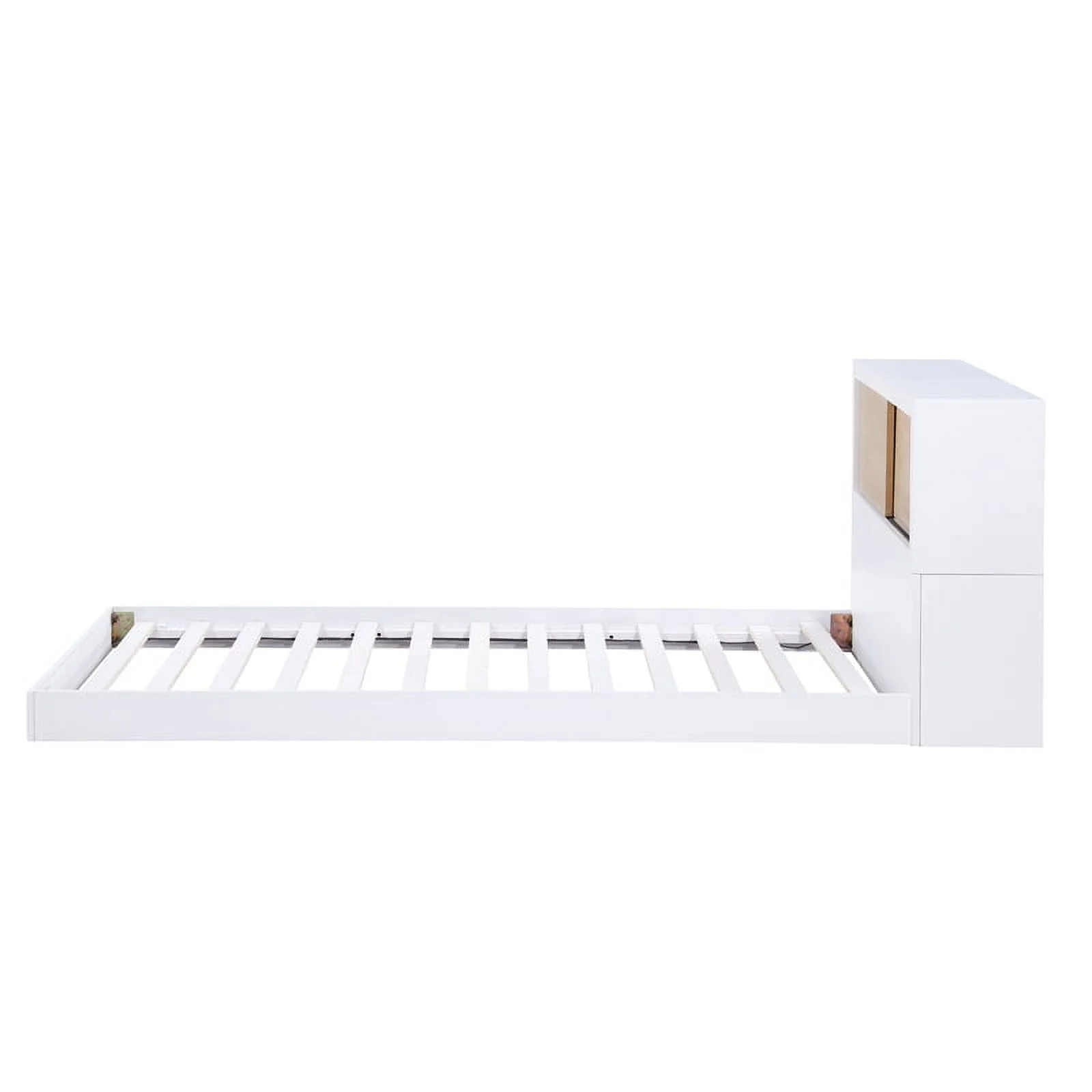 Pemberly Row Wood Twin Bookcase Bed in 2-Tone Finish (White and Natural)