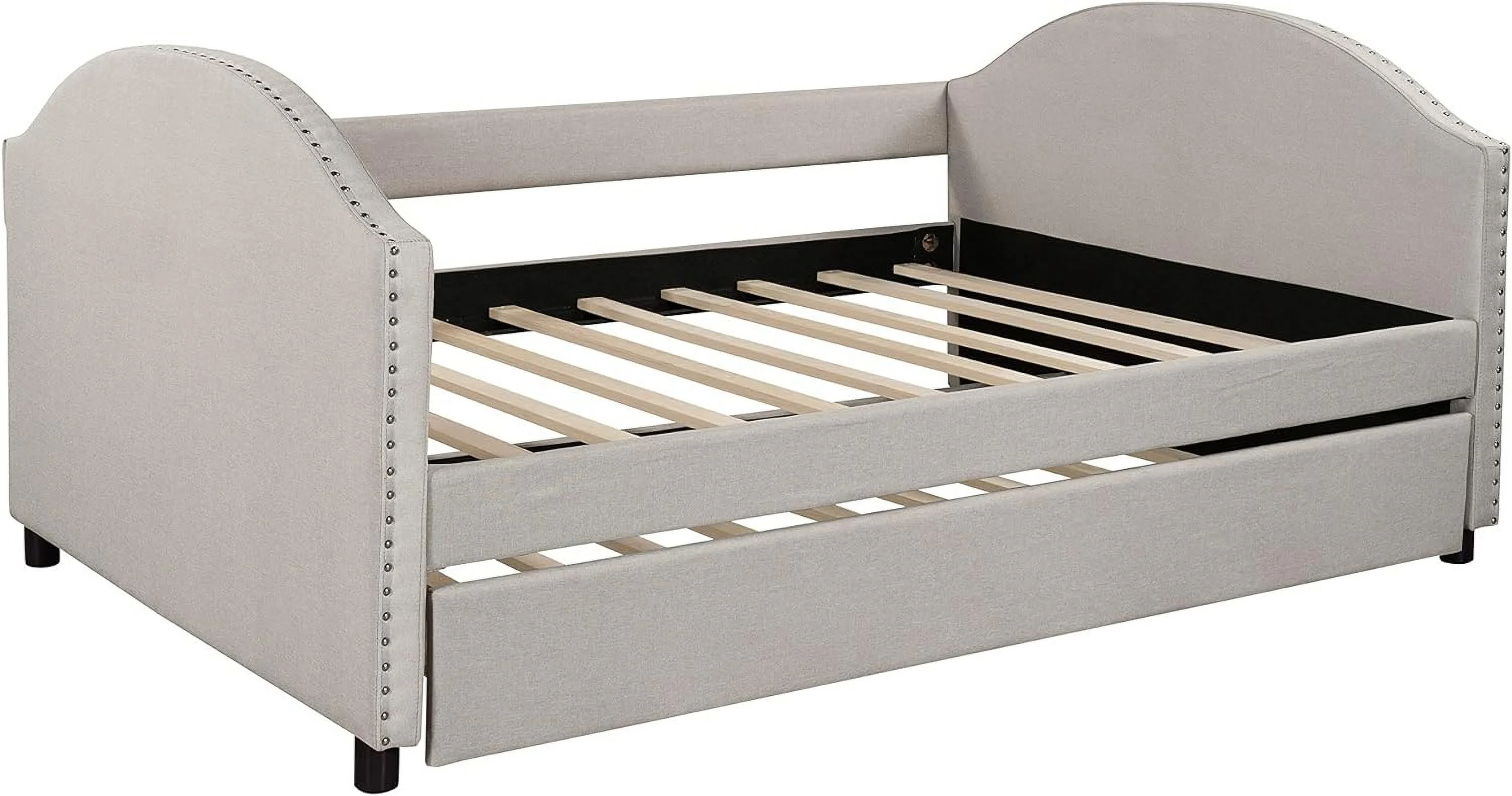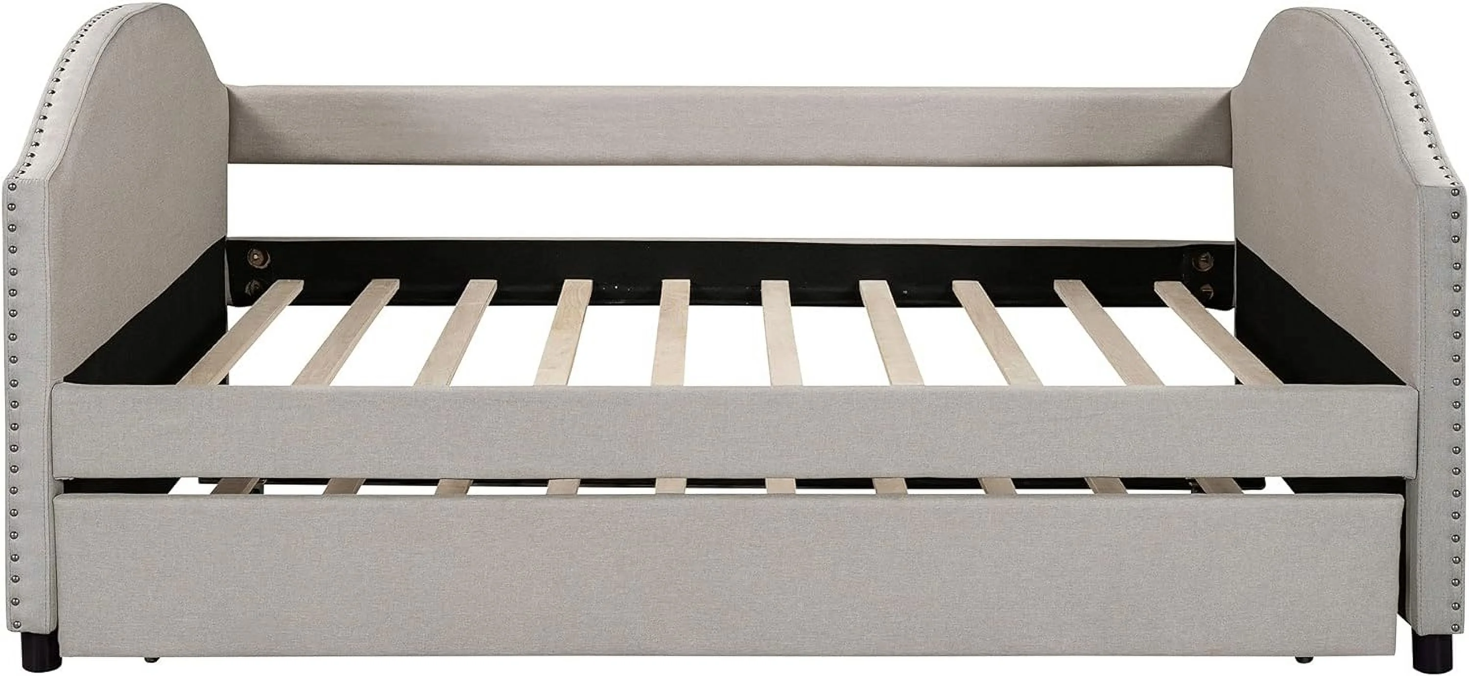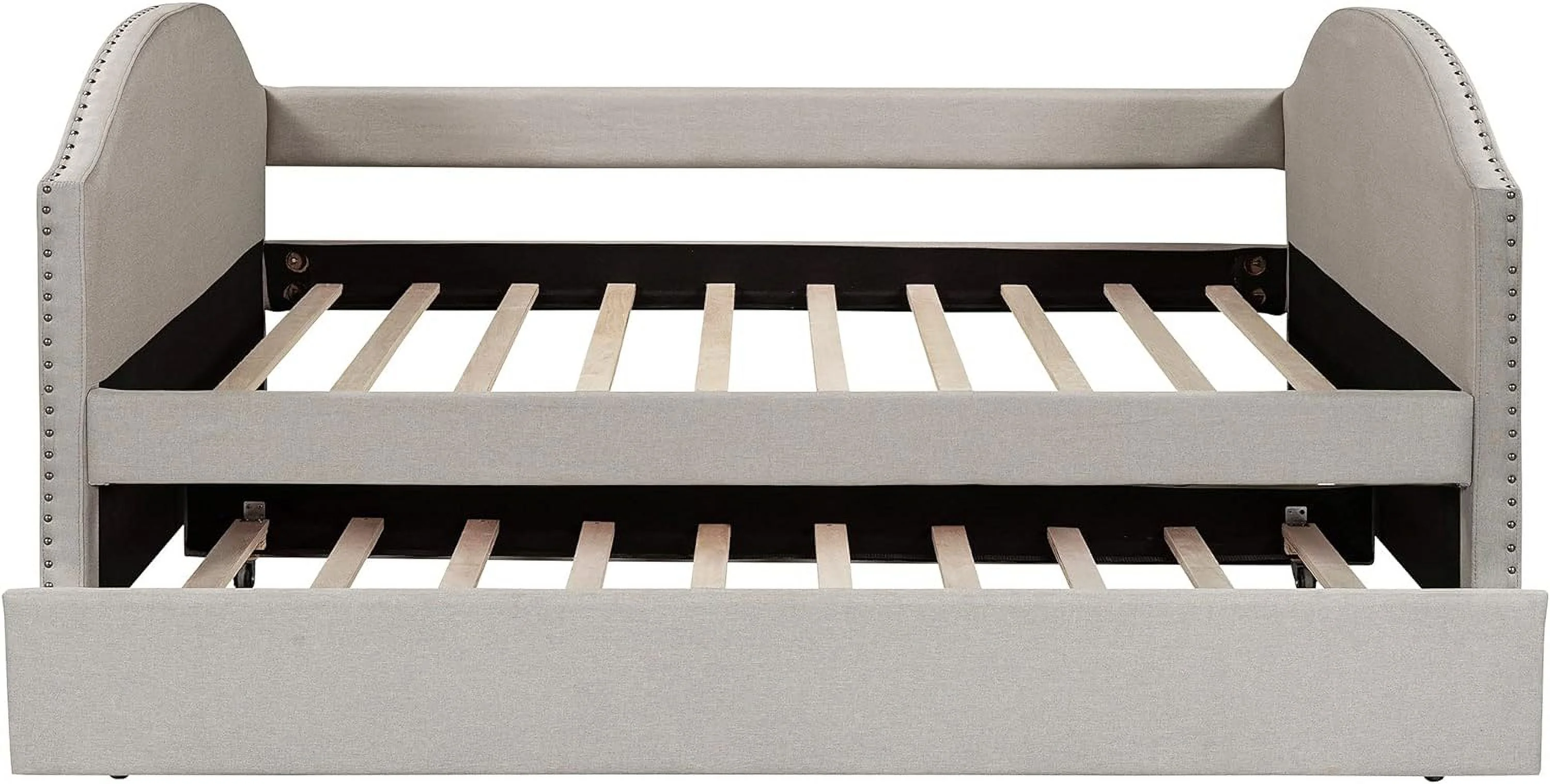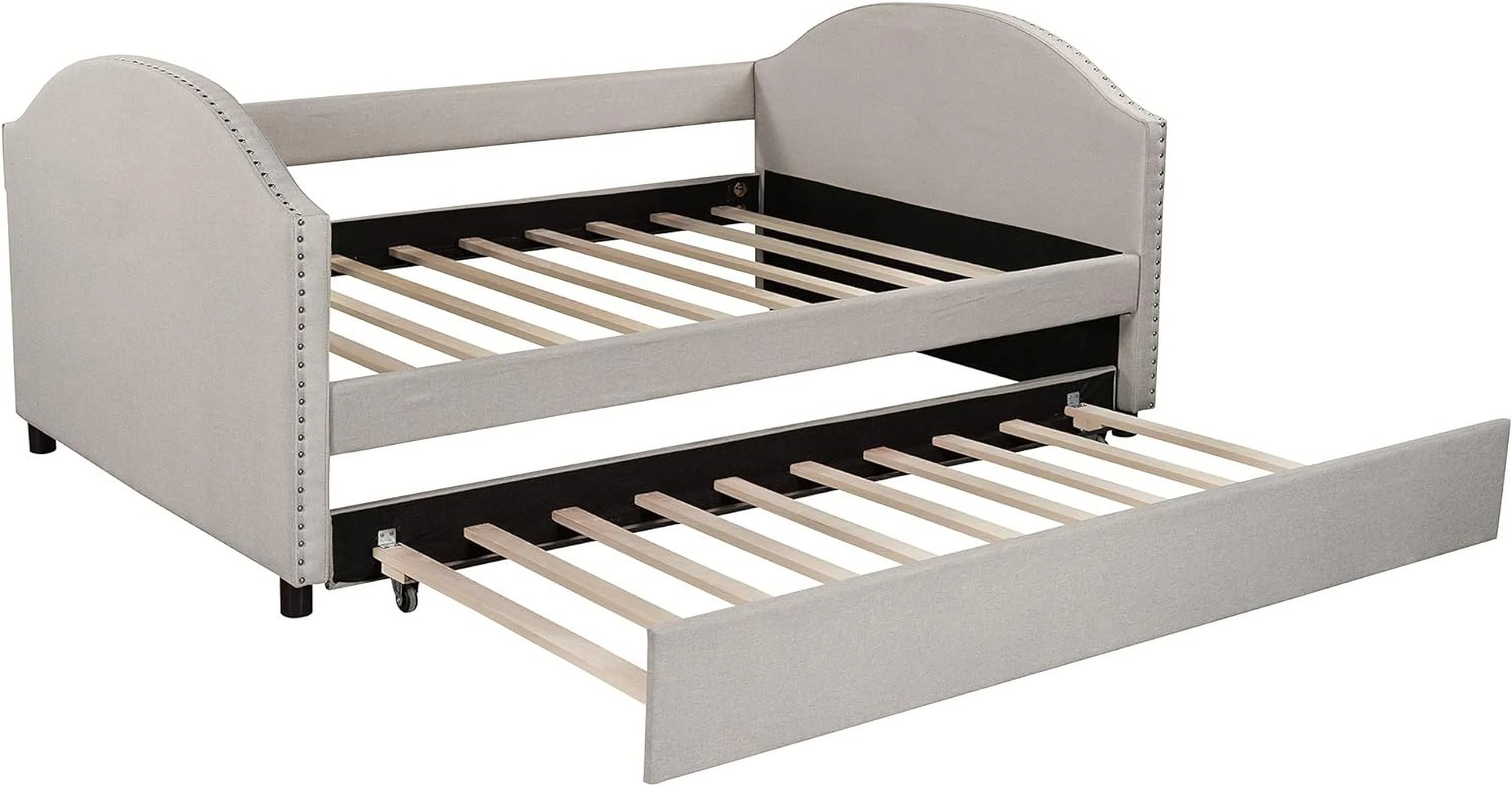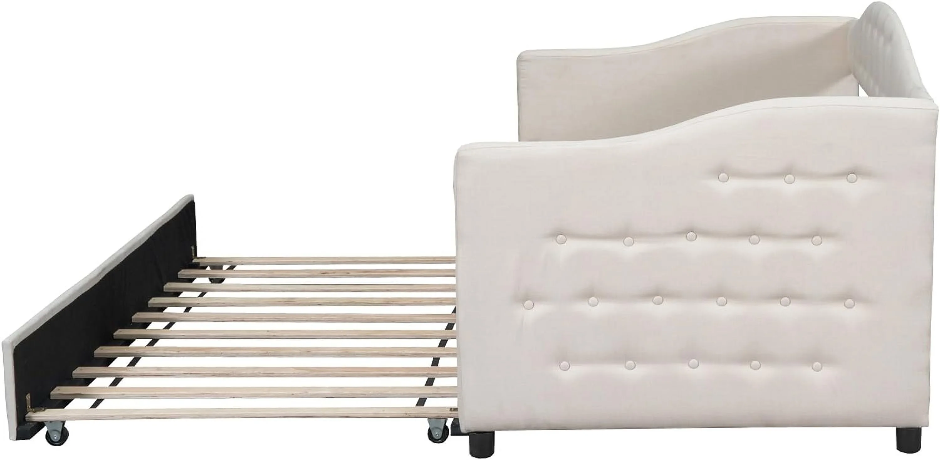 Twin Size Daybed with Trundle Upholstered Tufted Sofa Bed, Linen Fabric, Beige (82.5"x42.5"x34")