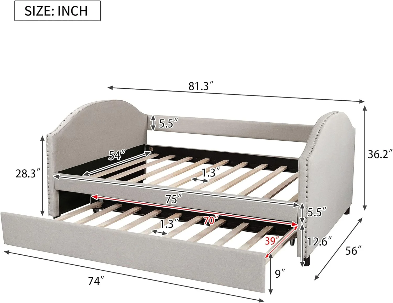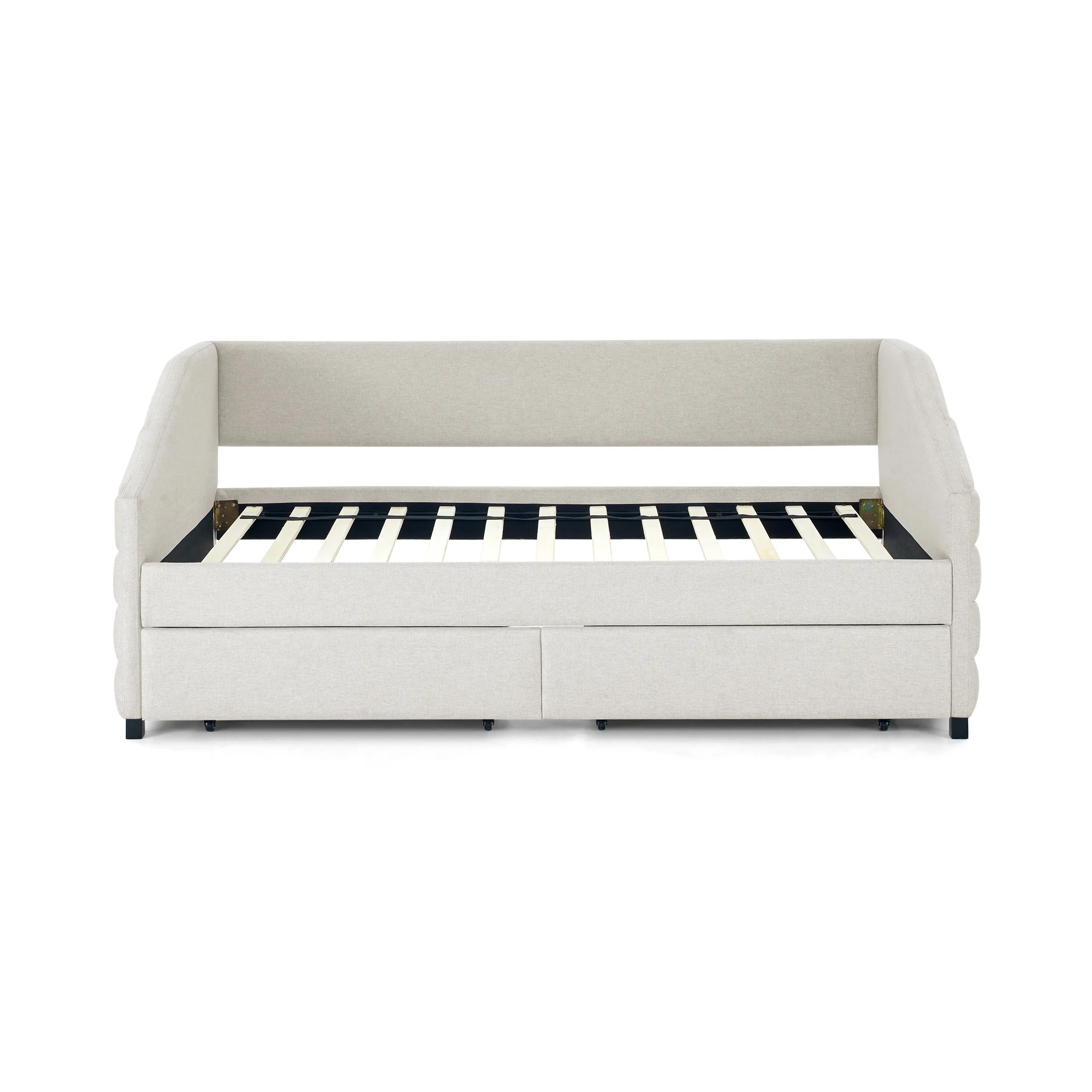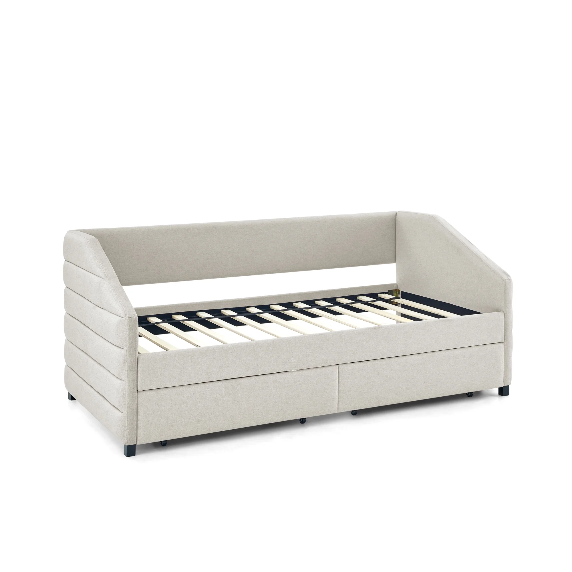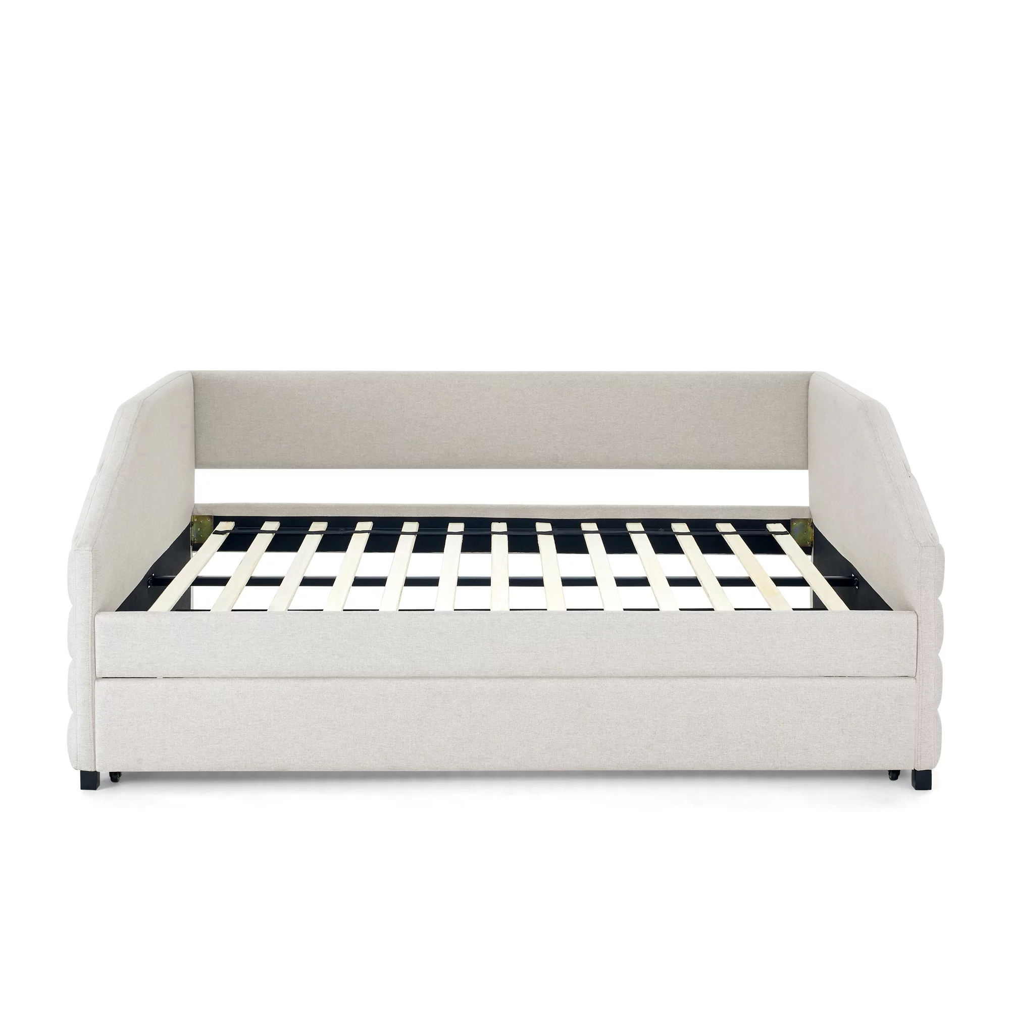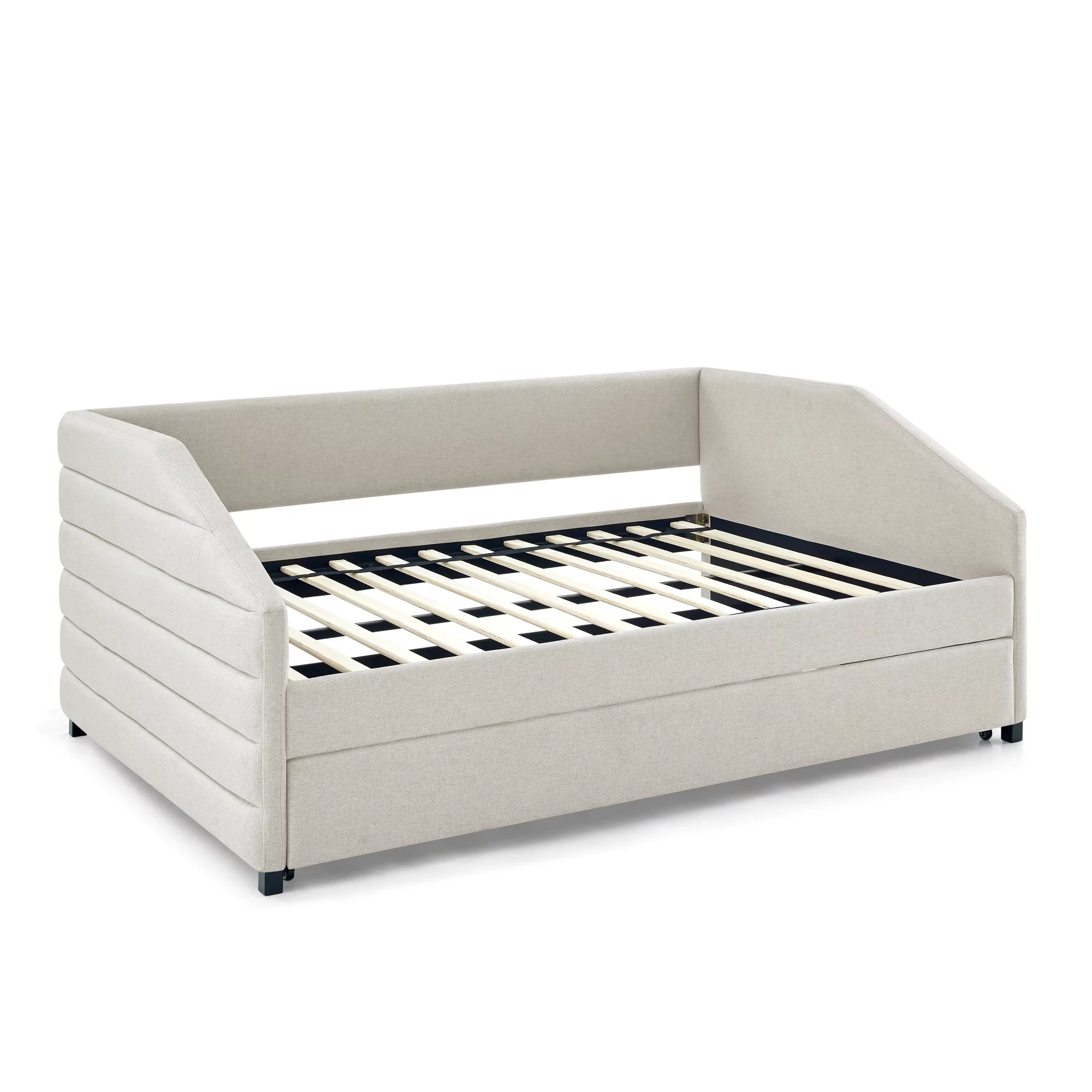 Twin Size Daybed with Trundle Upholstered Tufted Sofa Bed, Linen Fabric, Beige (82.5"x42.5"x34")
