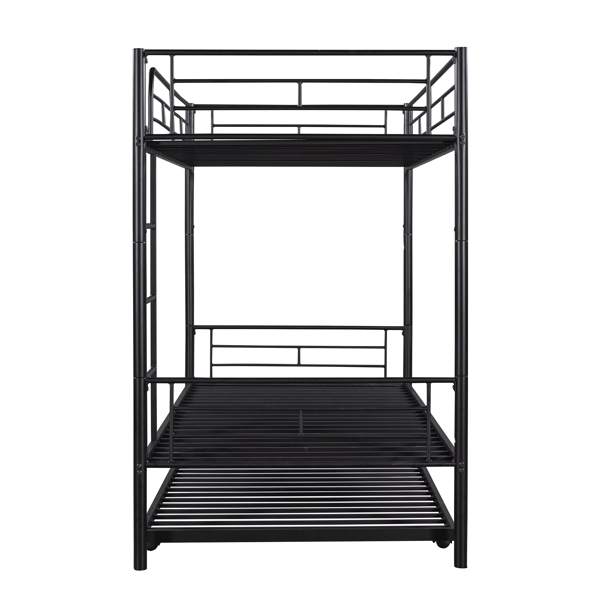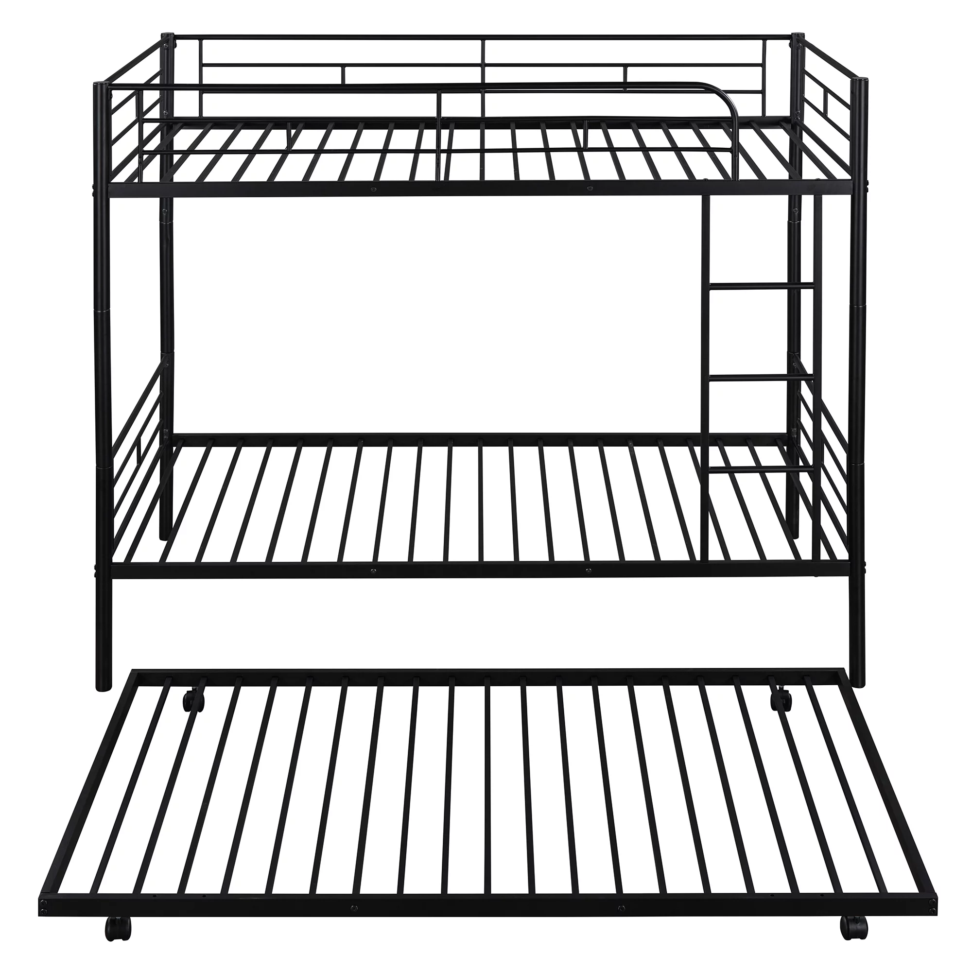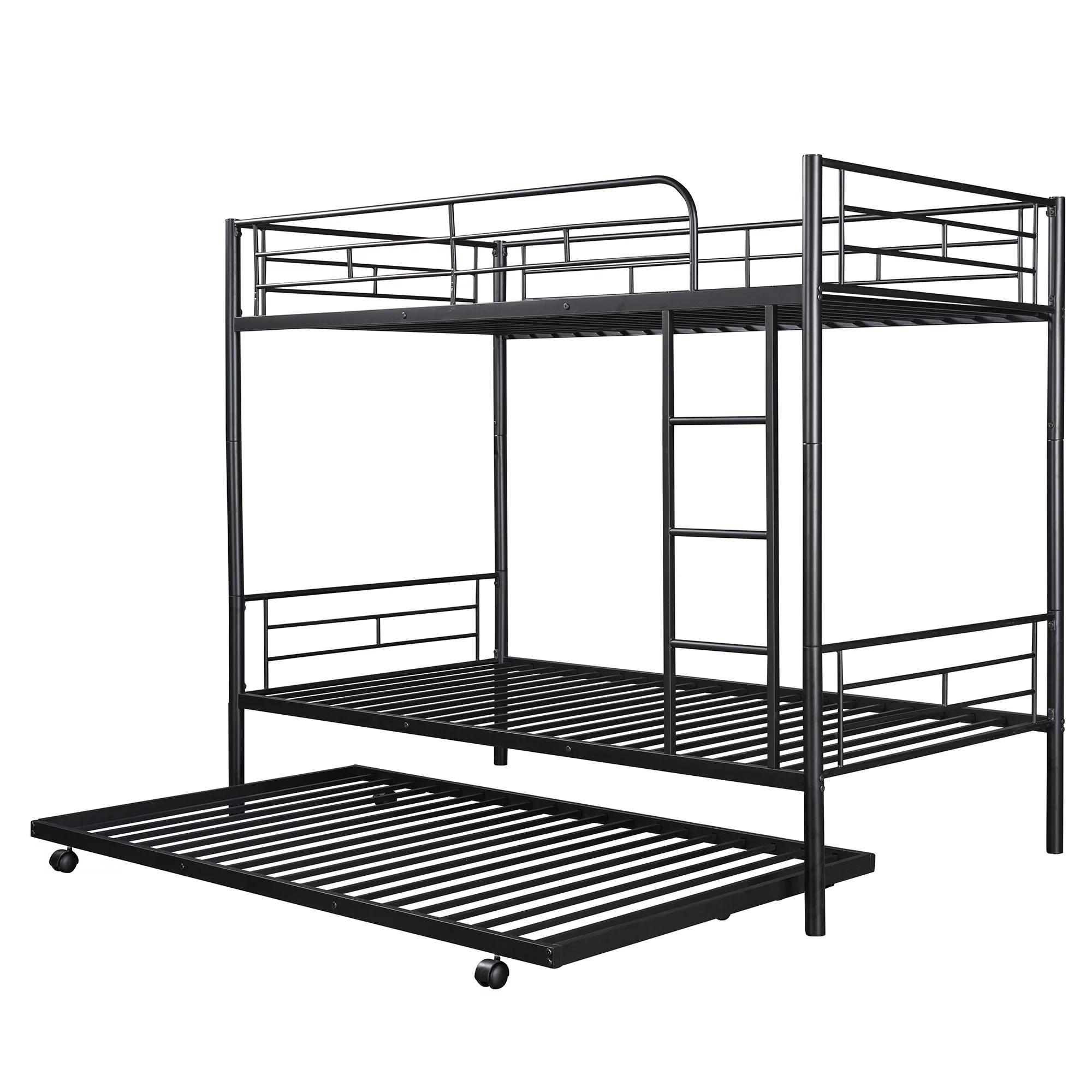Gewnee Twin over Twin Bunk Bed with Trundle, Metal Twin Size Bunk Beds for Kids Teens with Ladder,Black