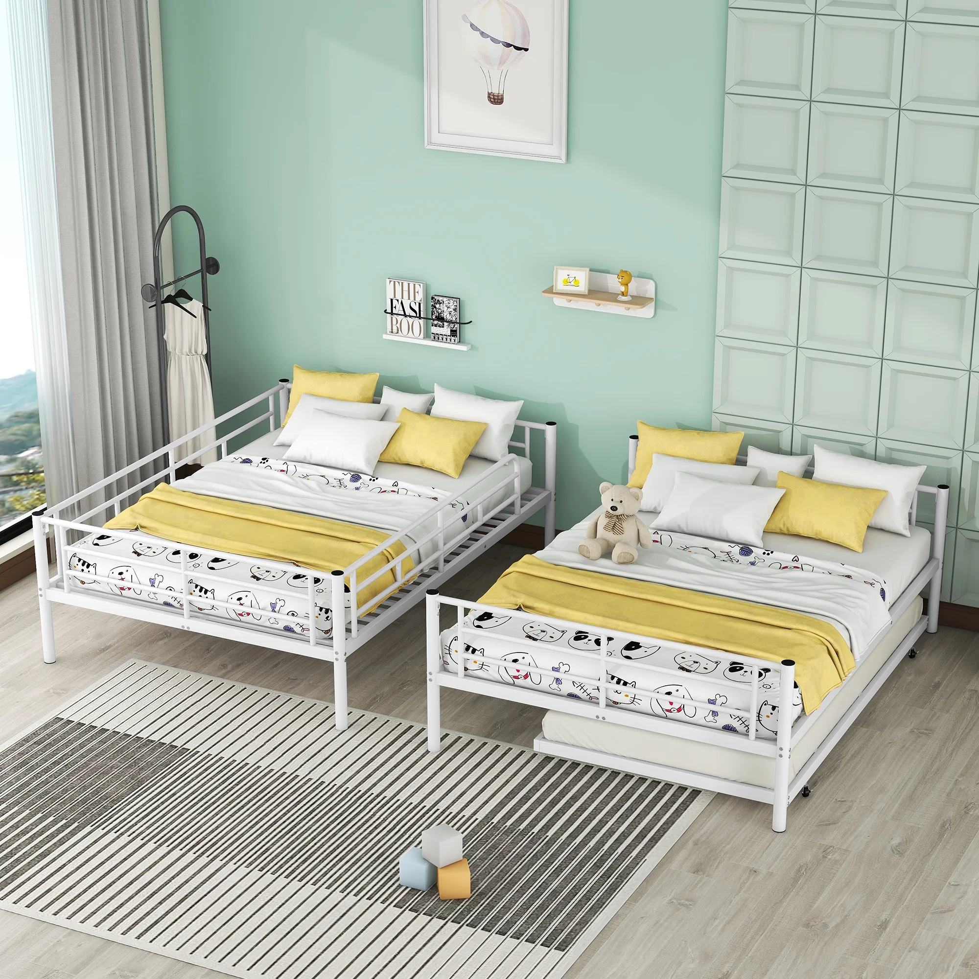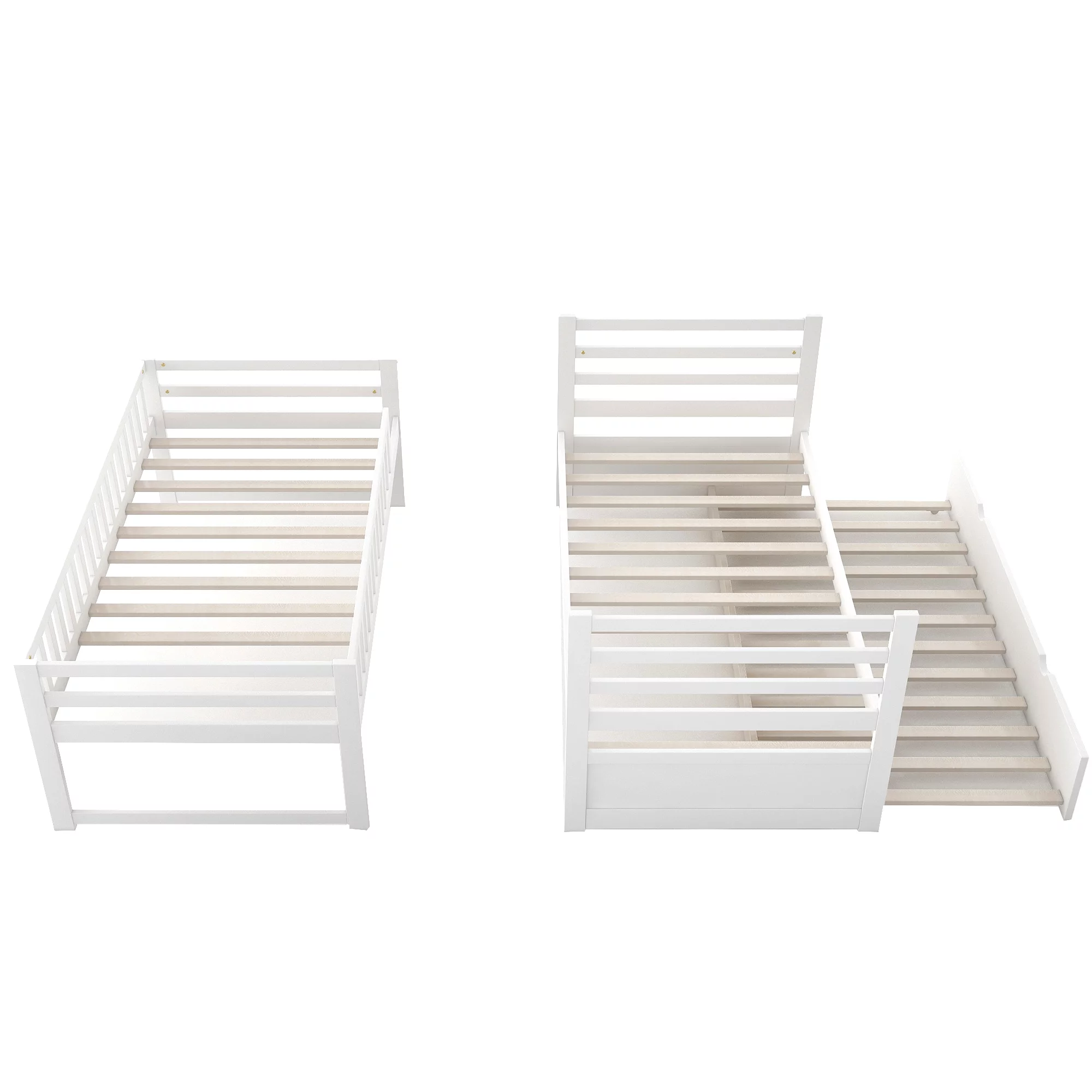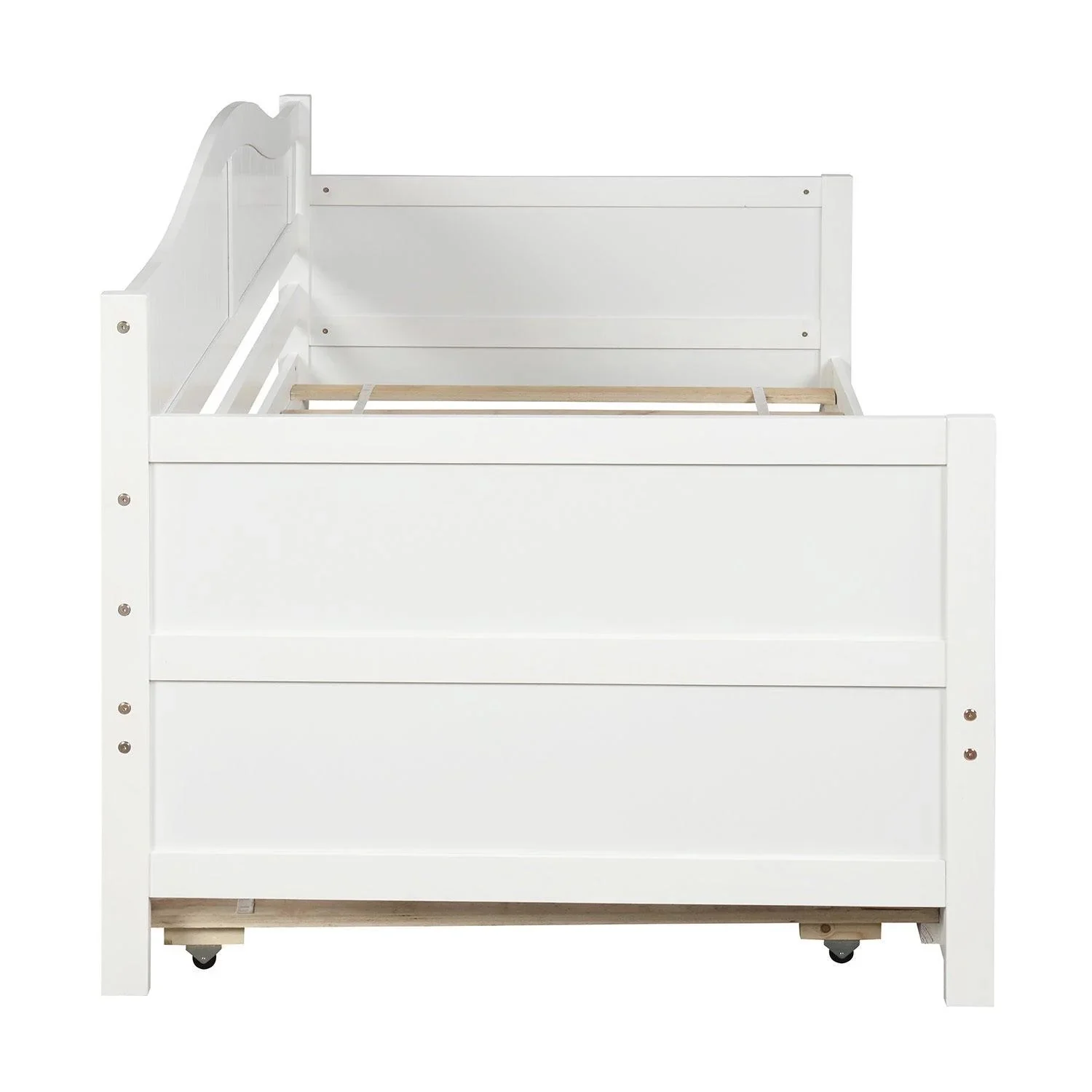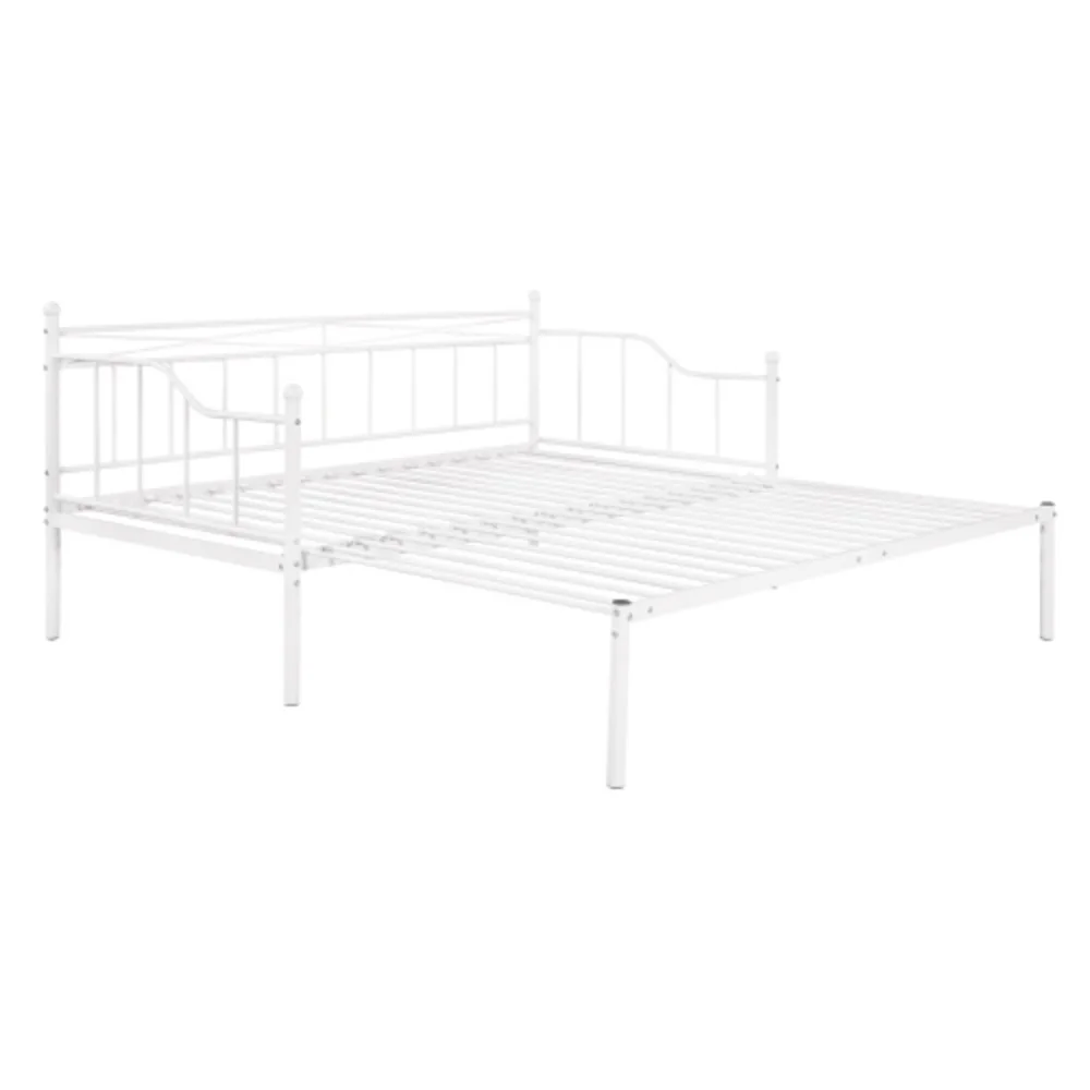 Twin Size Metal Daybed with Trundle, Daybed with Slat No Box required White White + Steel
