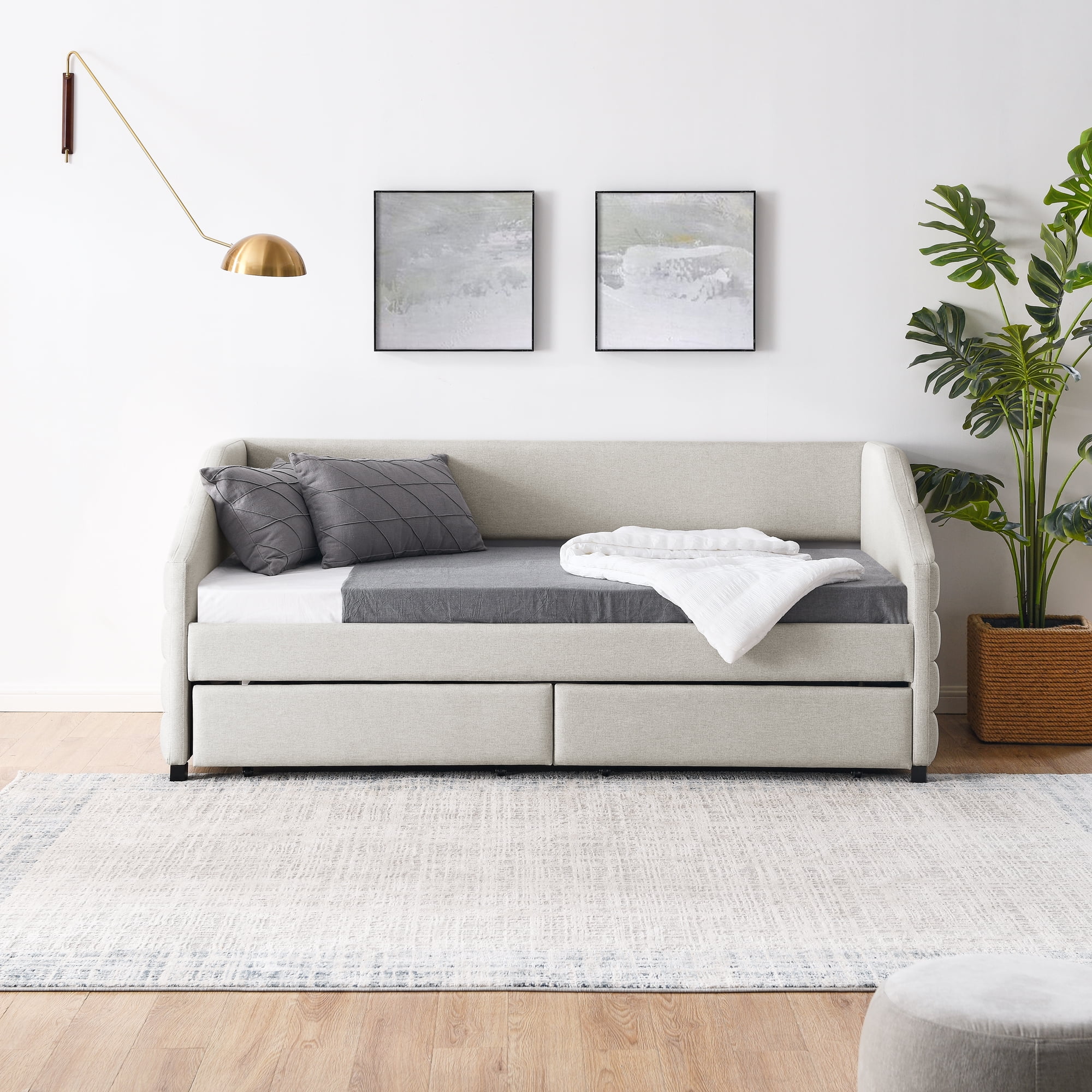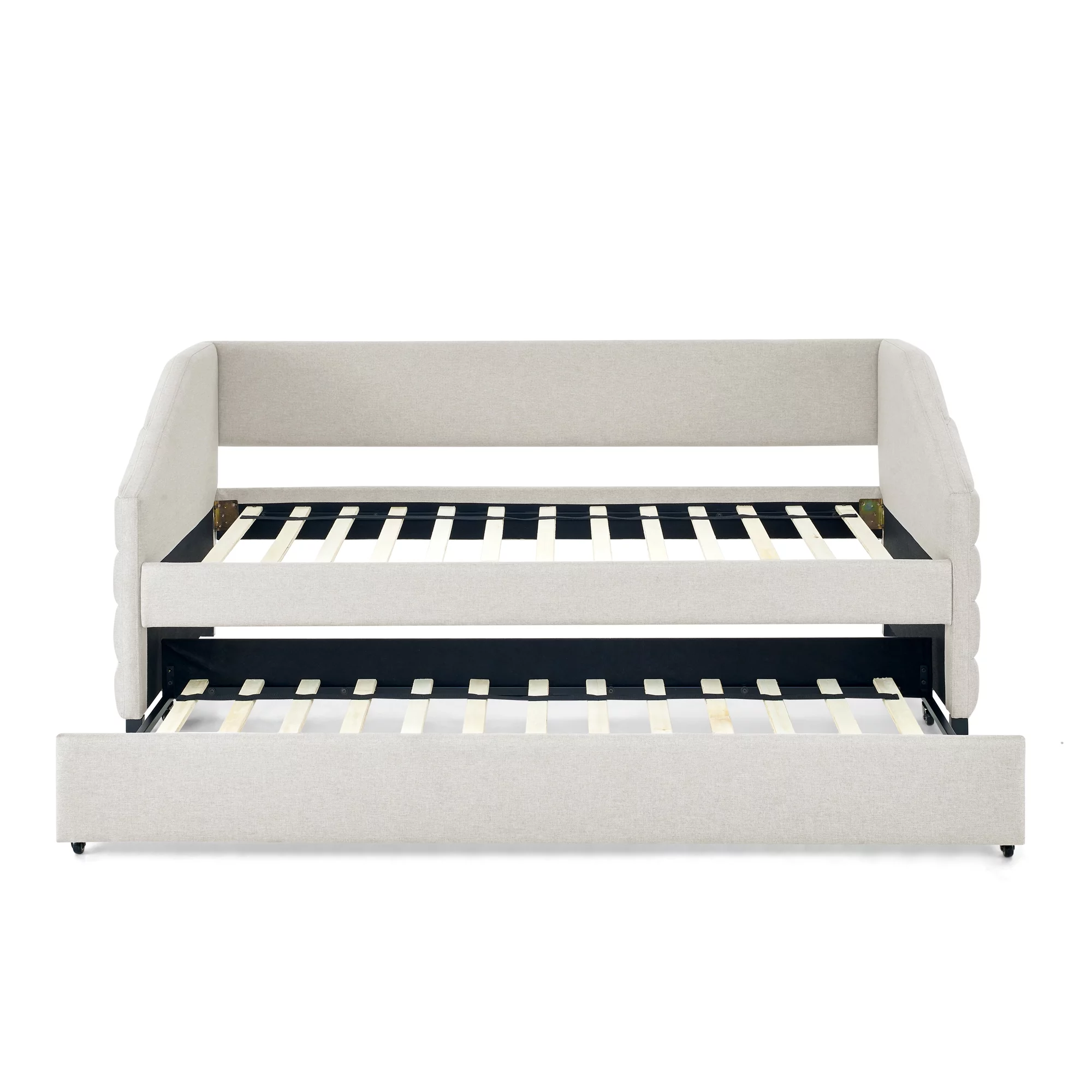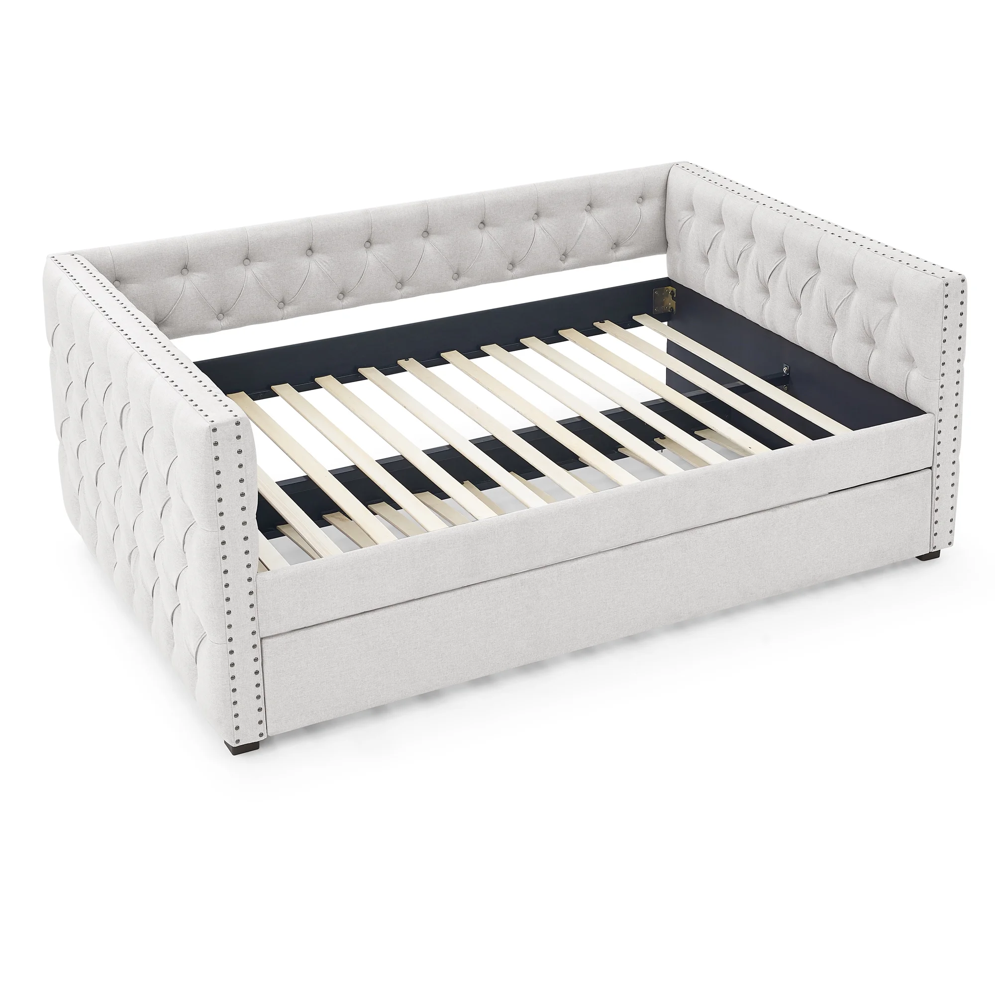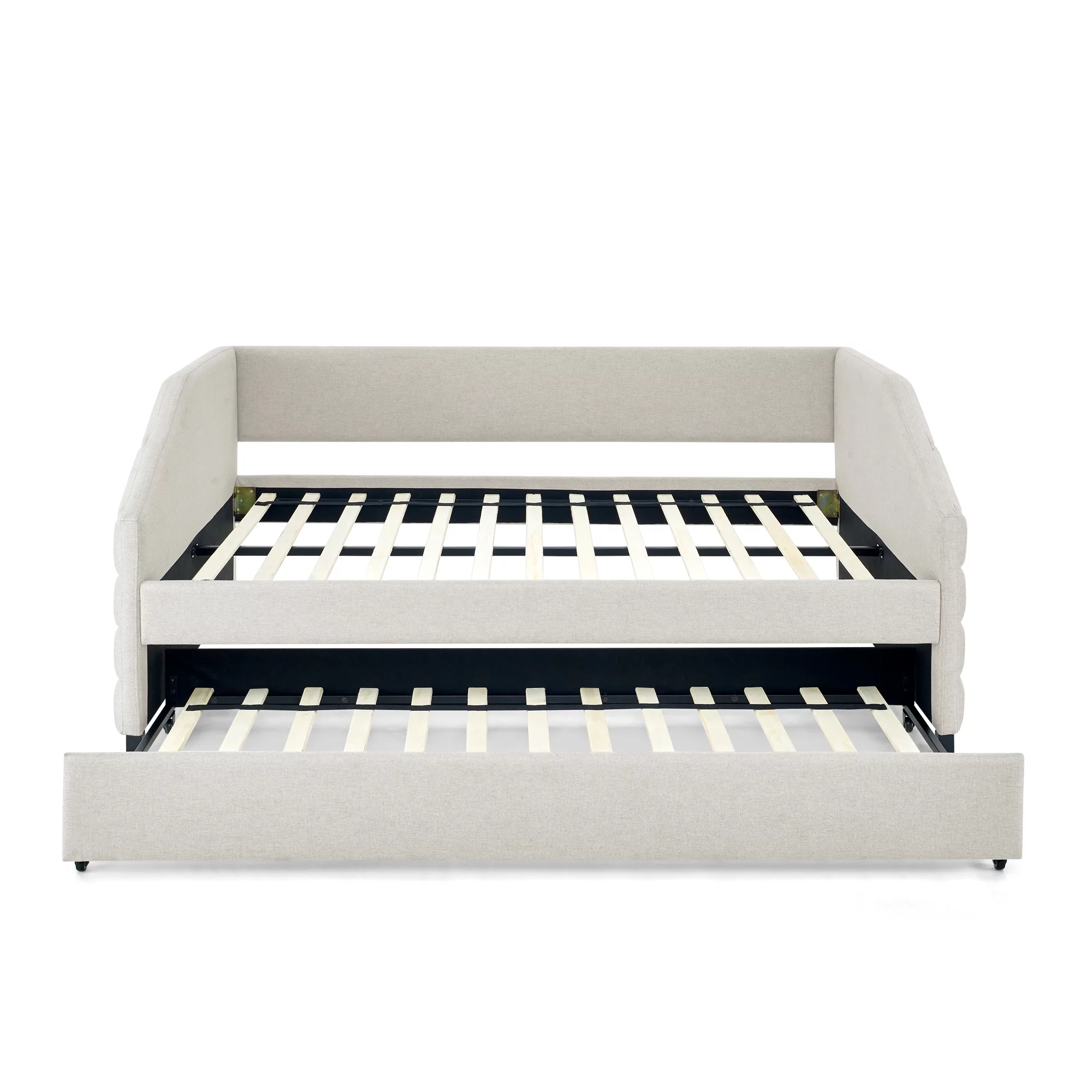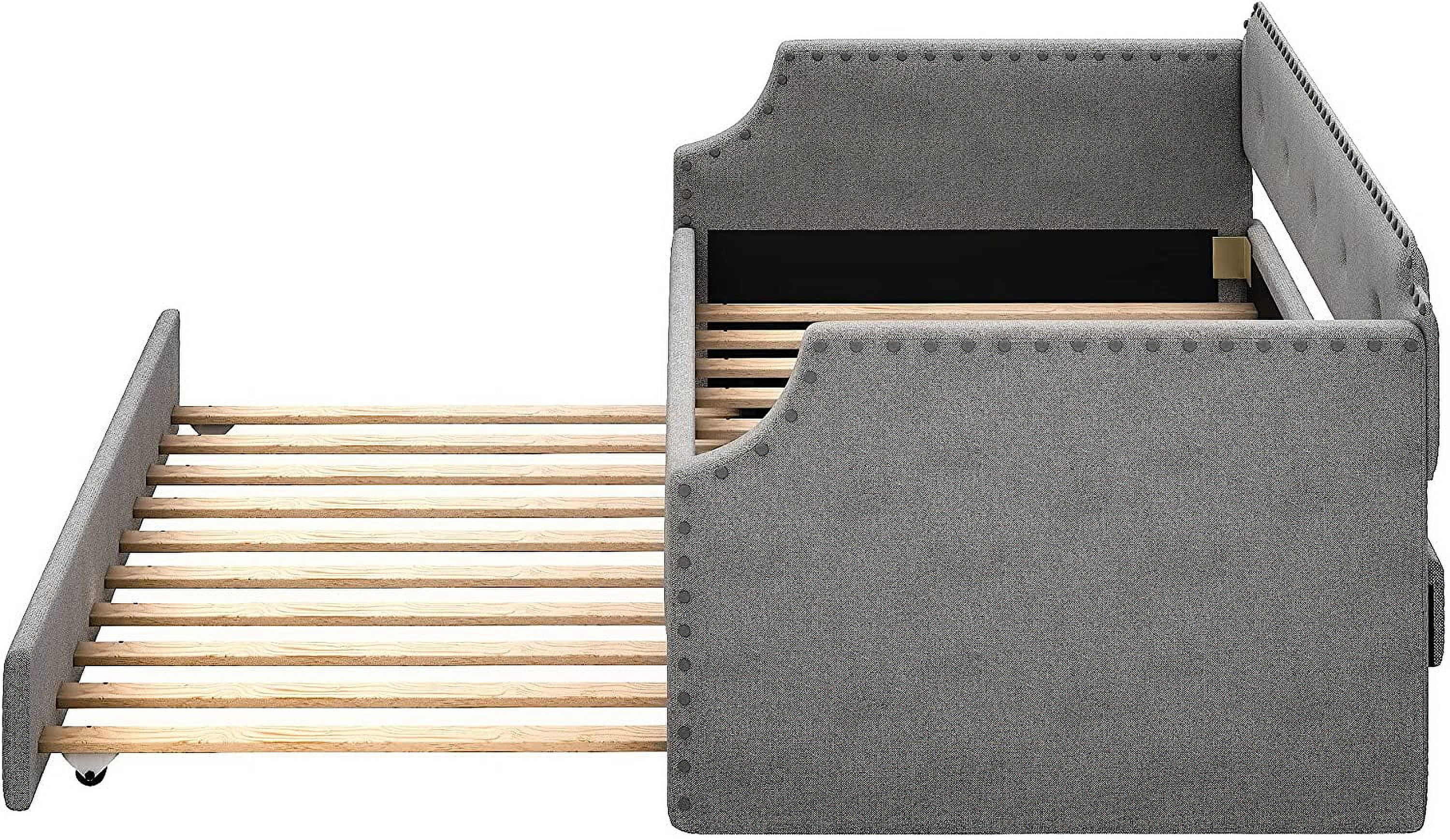 Twin Upholstered Daybed, Linen Fabric Upholstered Tufted Sofa Bed with Trundle, Sofa Bed Trundle Daybed with Wood Frame