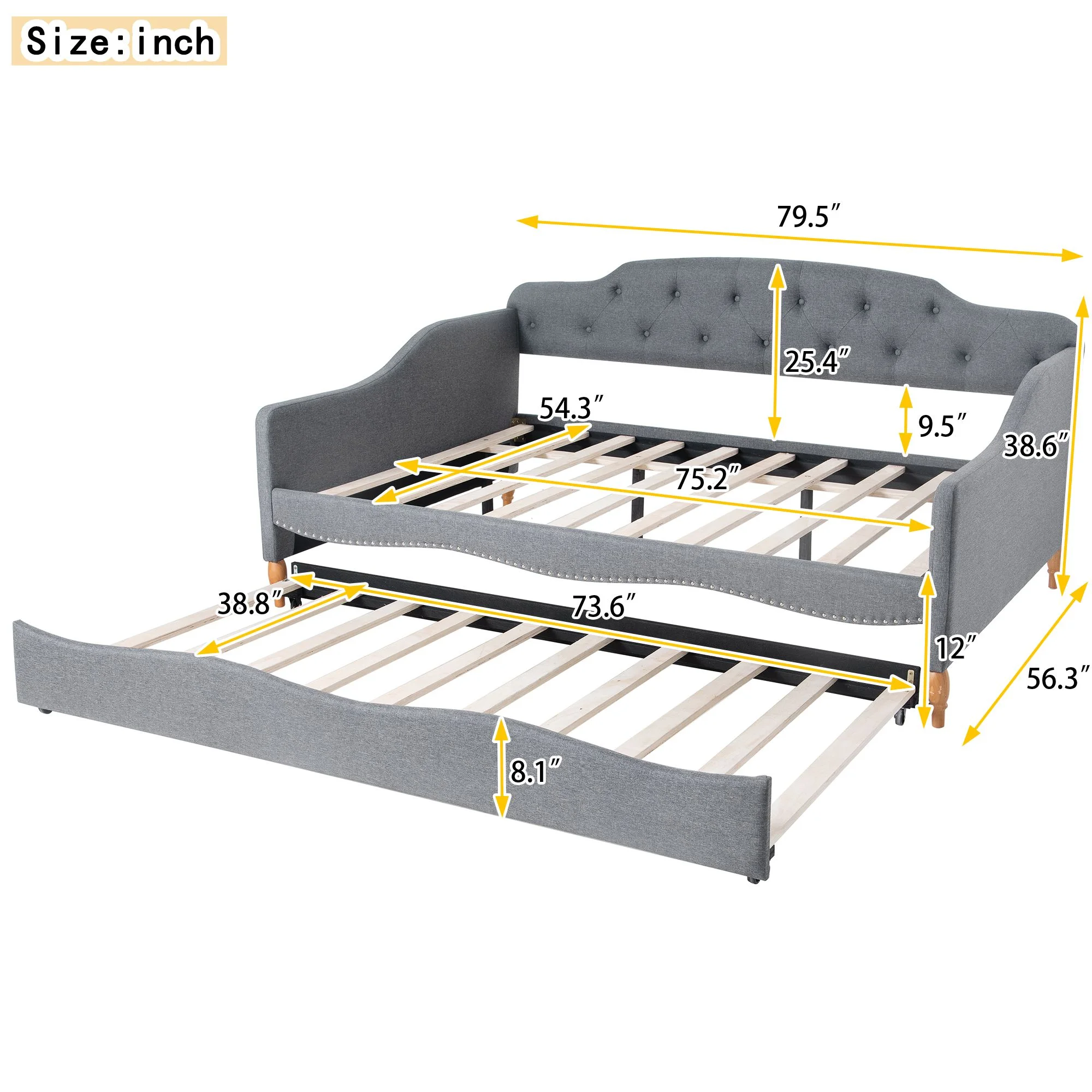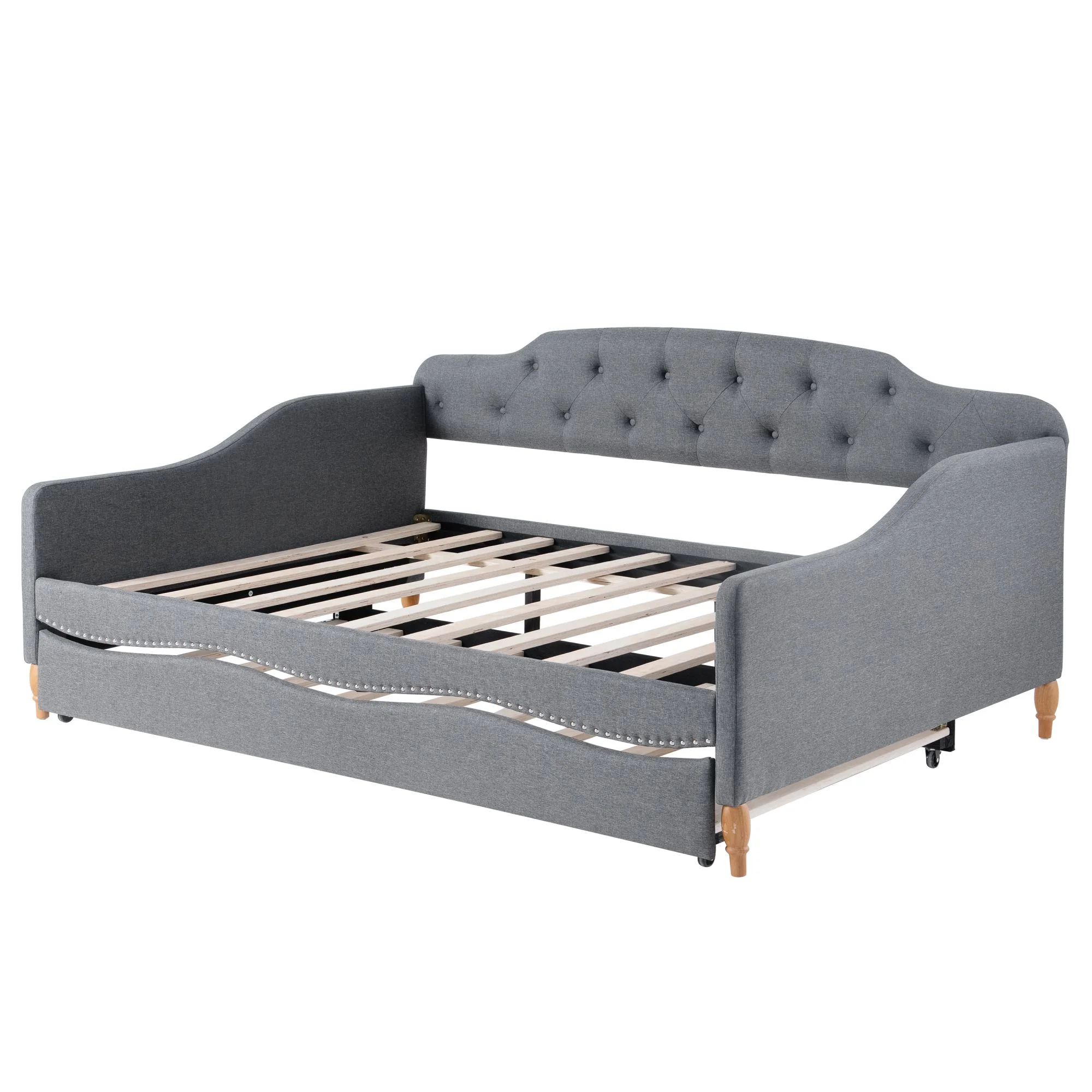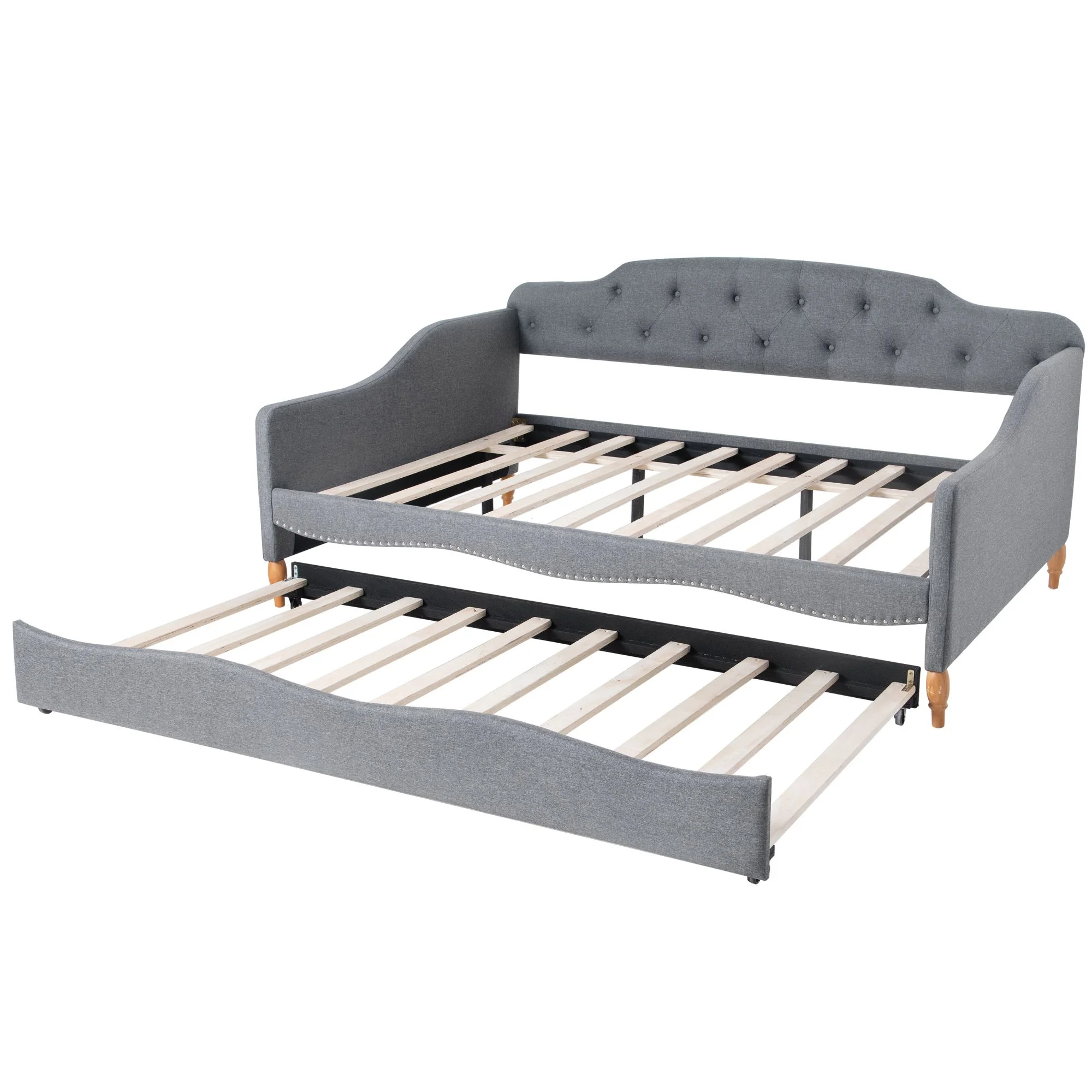 Twin Size Daybed with Trundle Upholstered Tufted Sofa Bed, Linen Fabric, Grey (82.5"x42.5"x34")