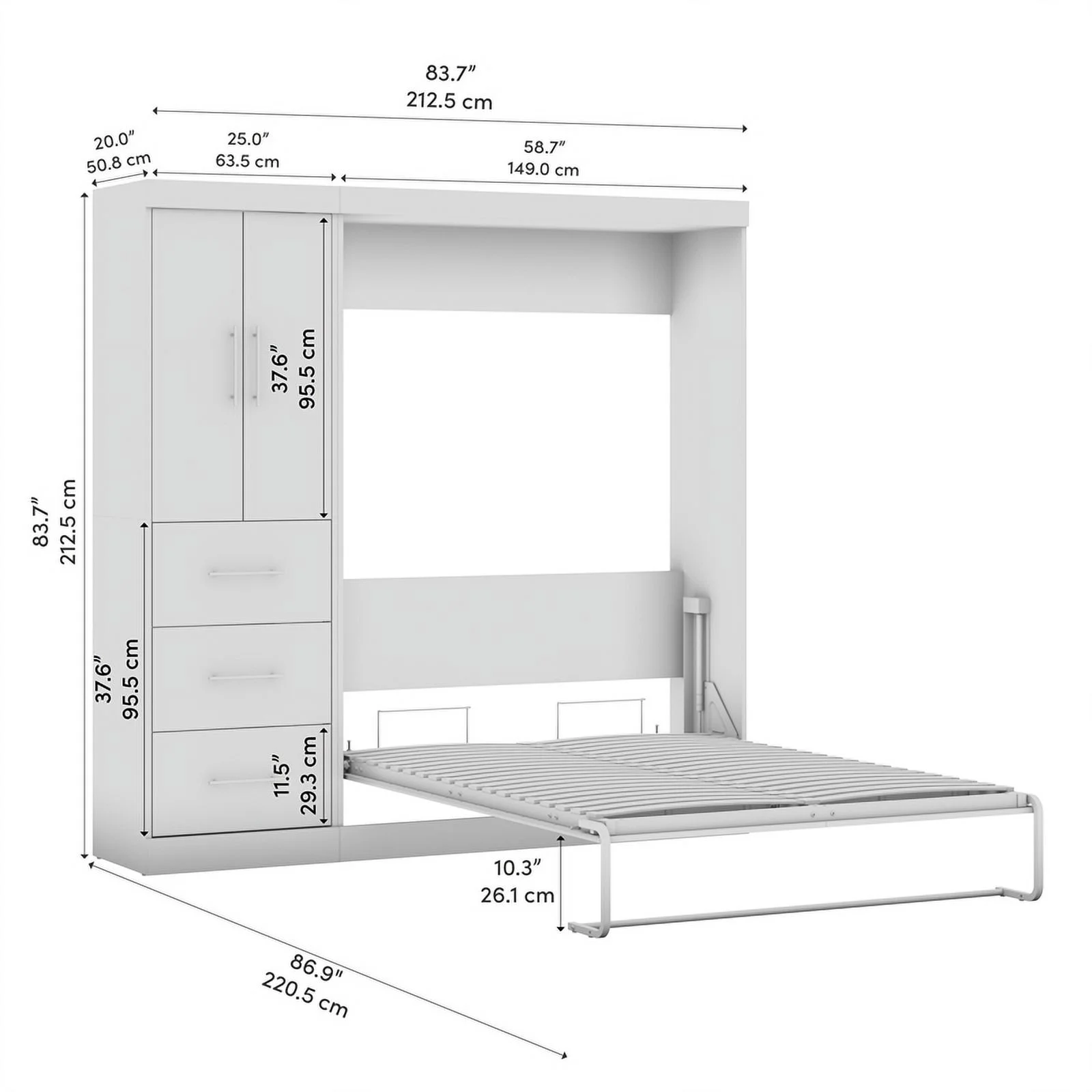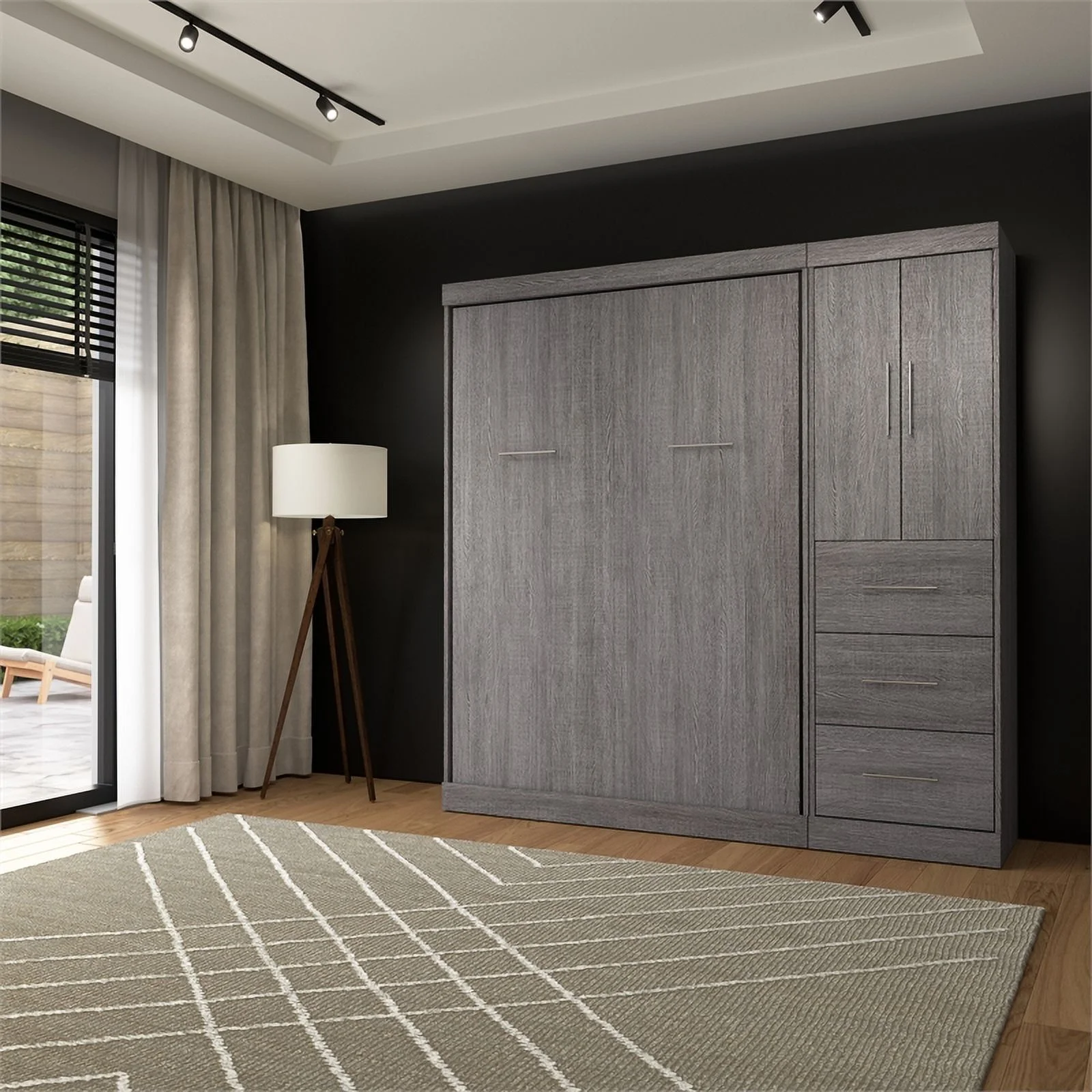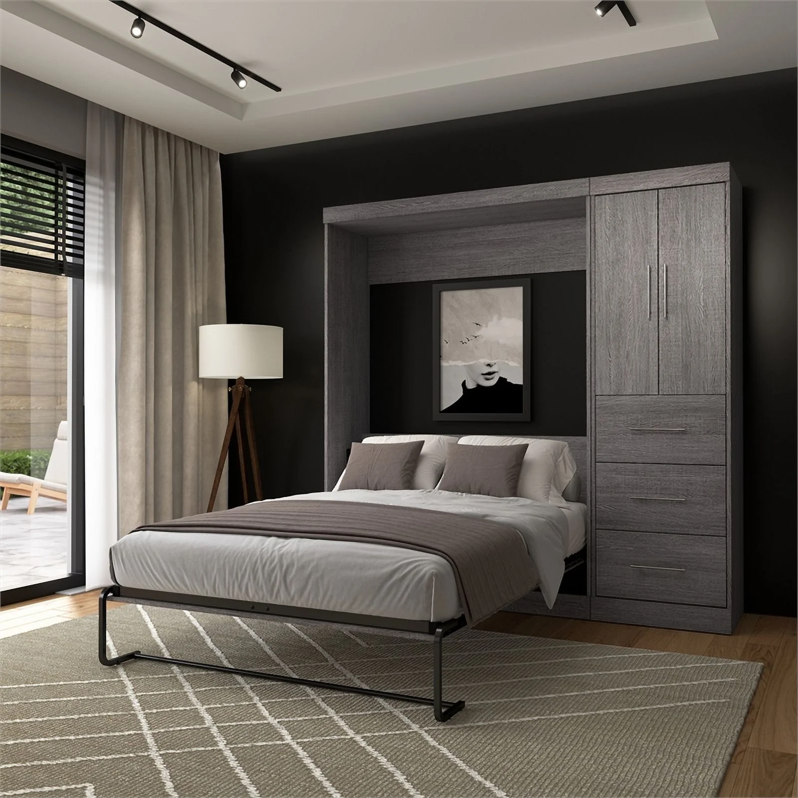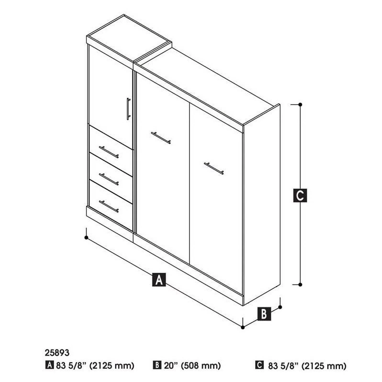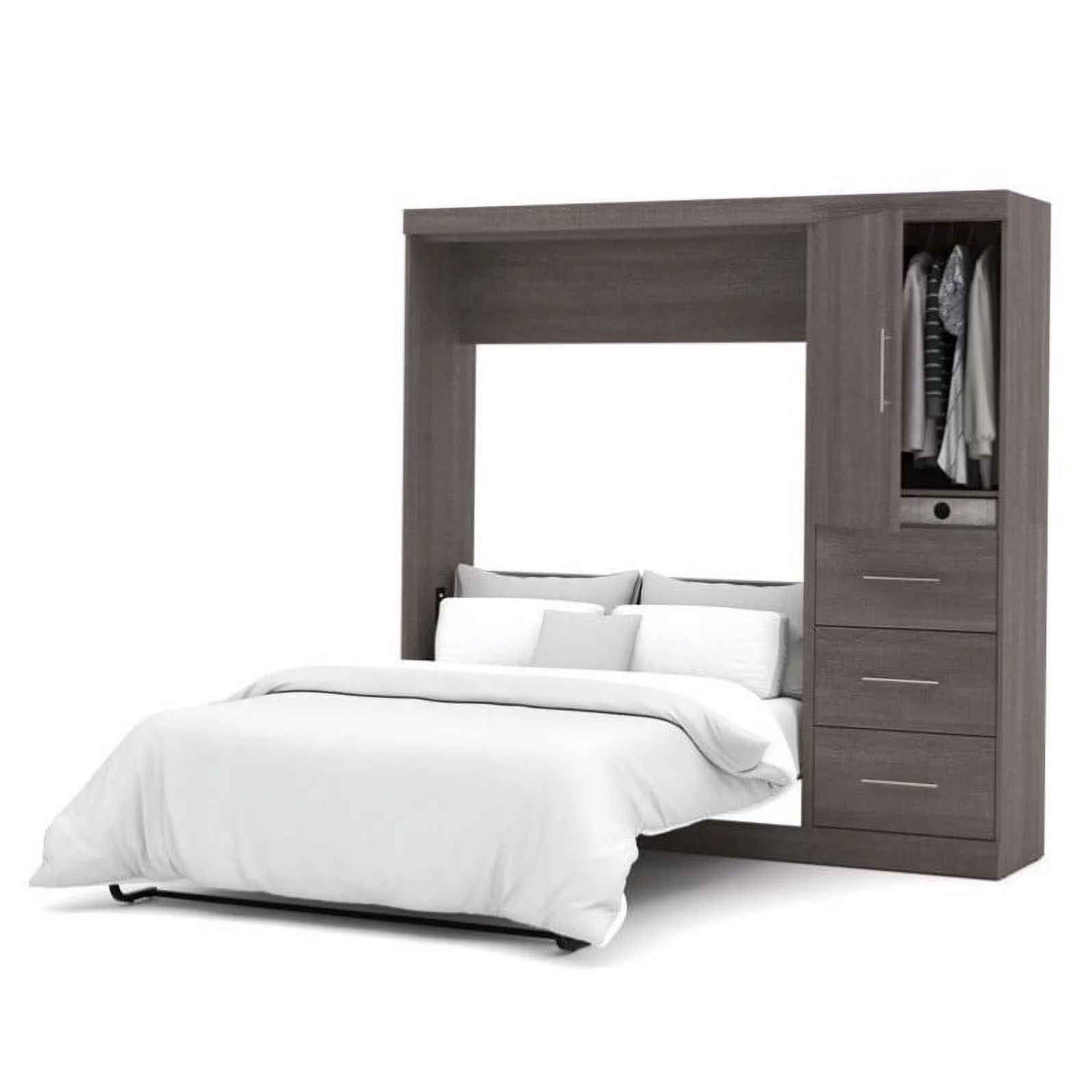 Atlin Designs 84" Engineered Wood Full Wall Bed Kit with 3 Drawer Set in Gray