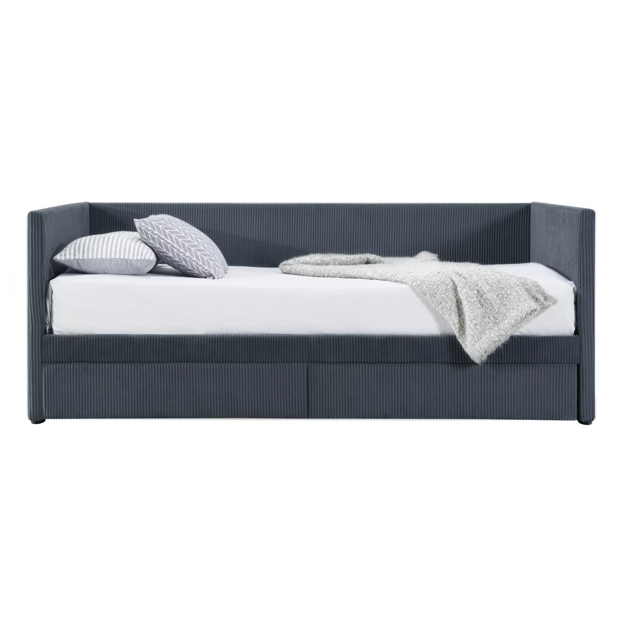 CoSoTower Twin Size Corduroy Daybed with Two Drawers and Wood Slat, Gray