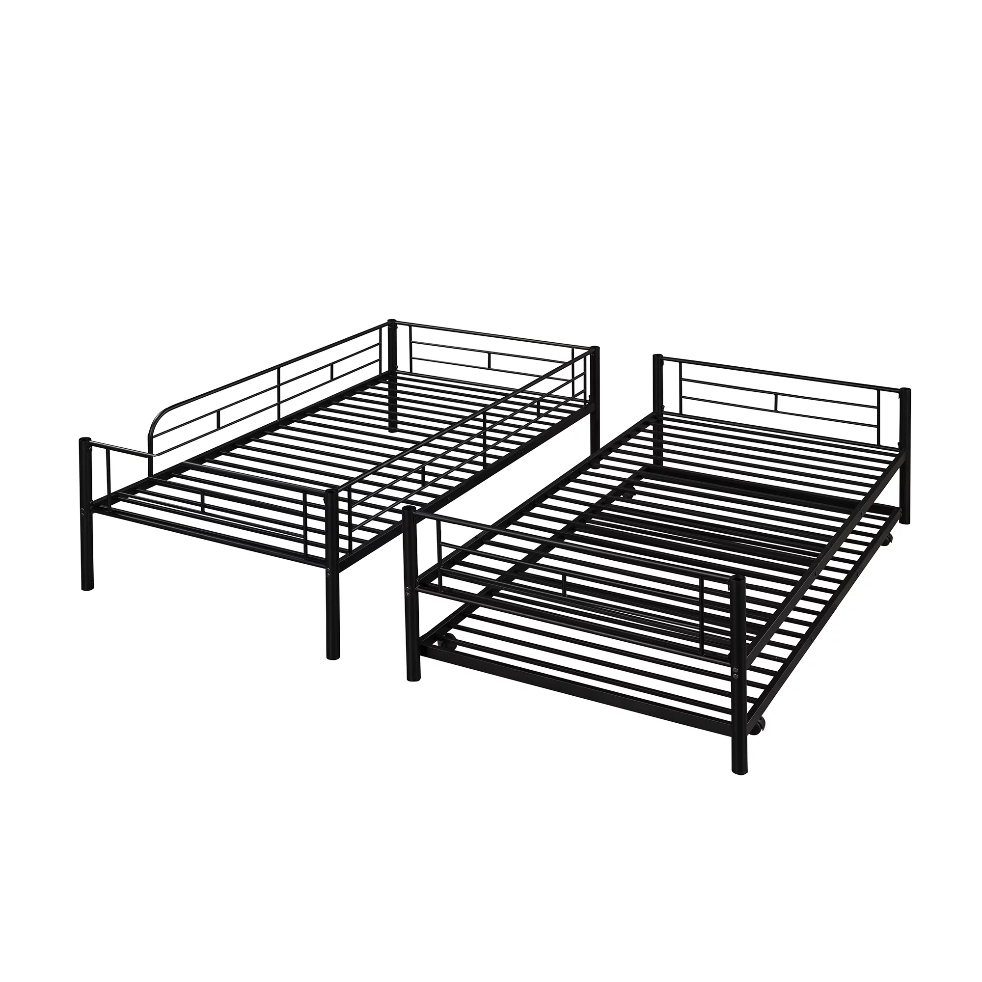 Twin Size Daybed with Trundle - Metal Framed Sofa Bed, 77''L x 40.6'' W x 14.5'' H, Trundle Bed Twin-Black