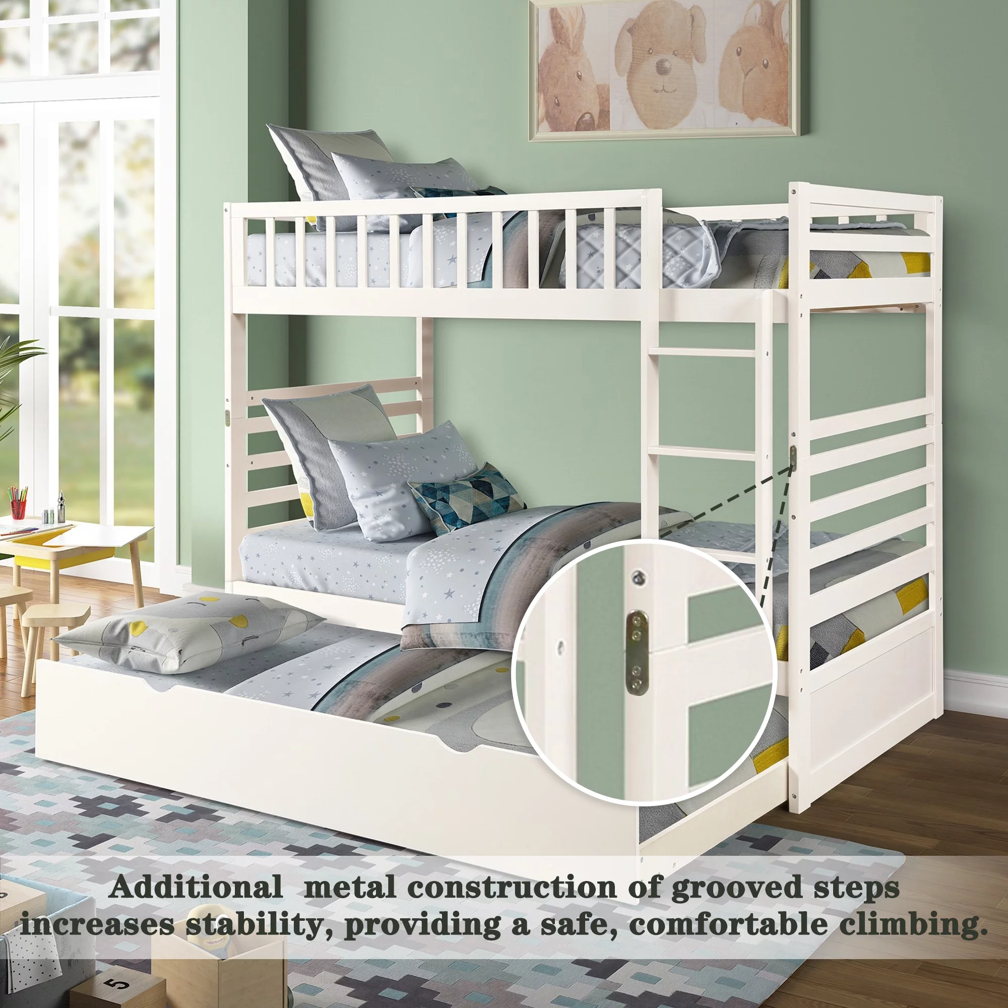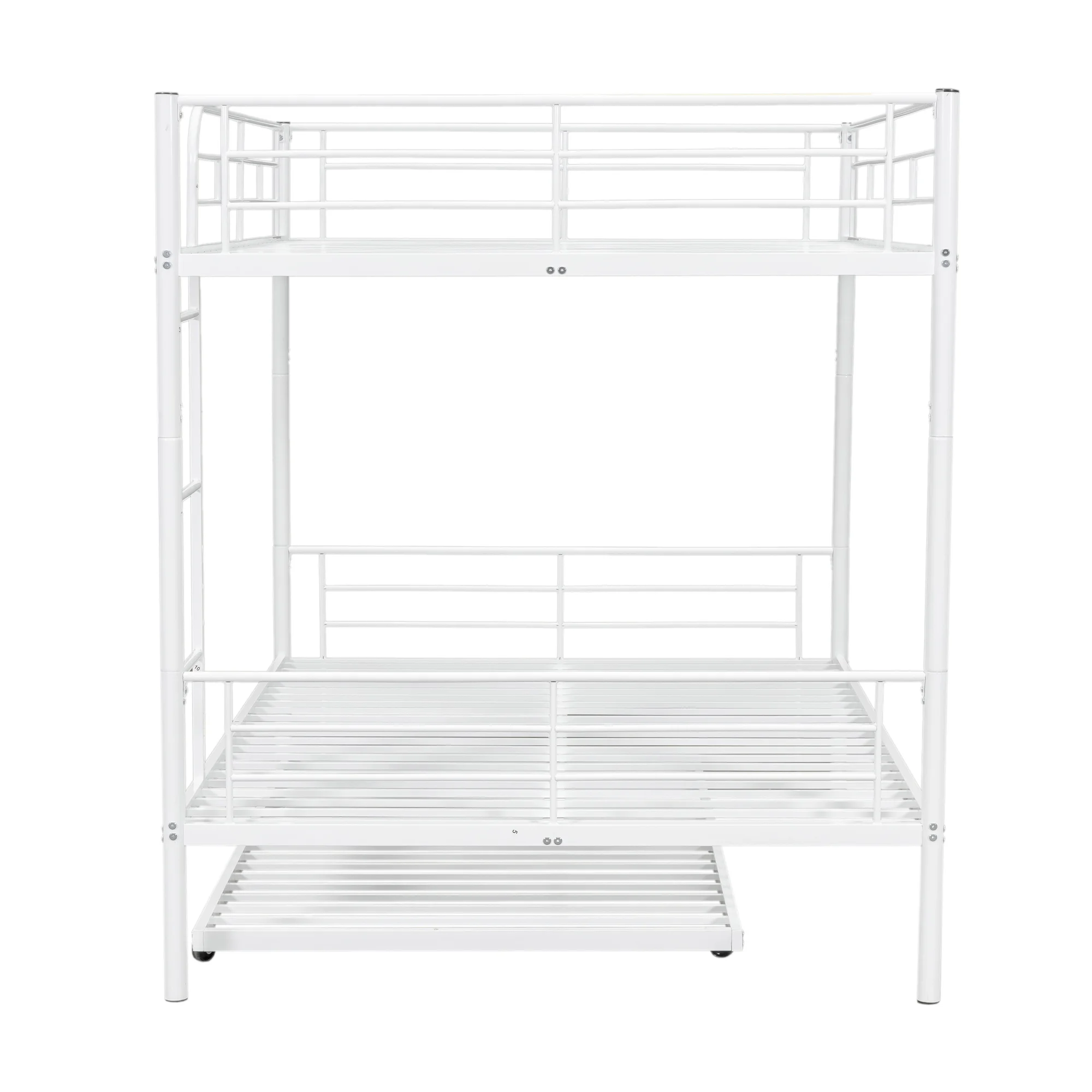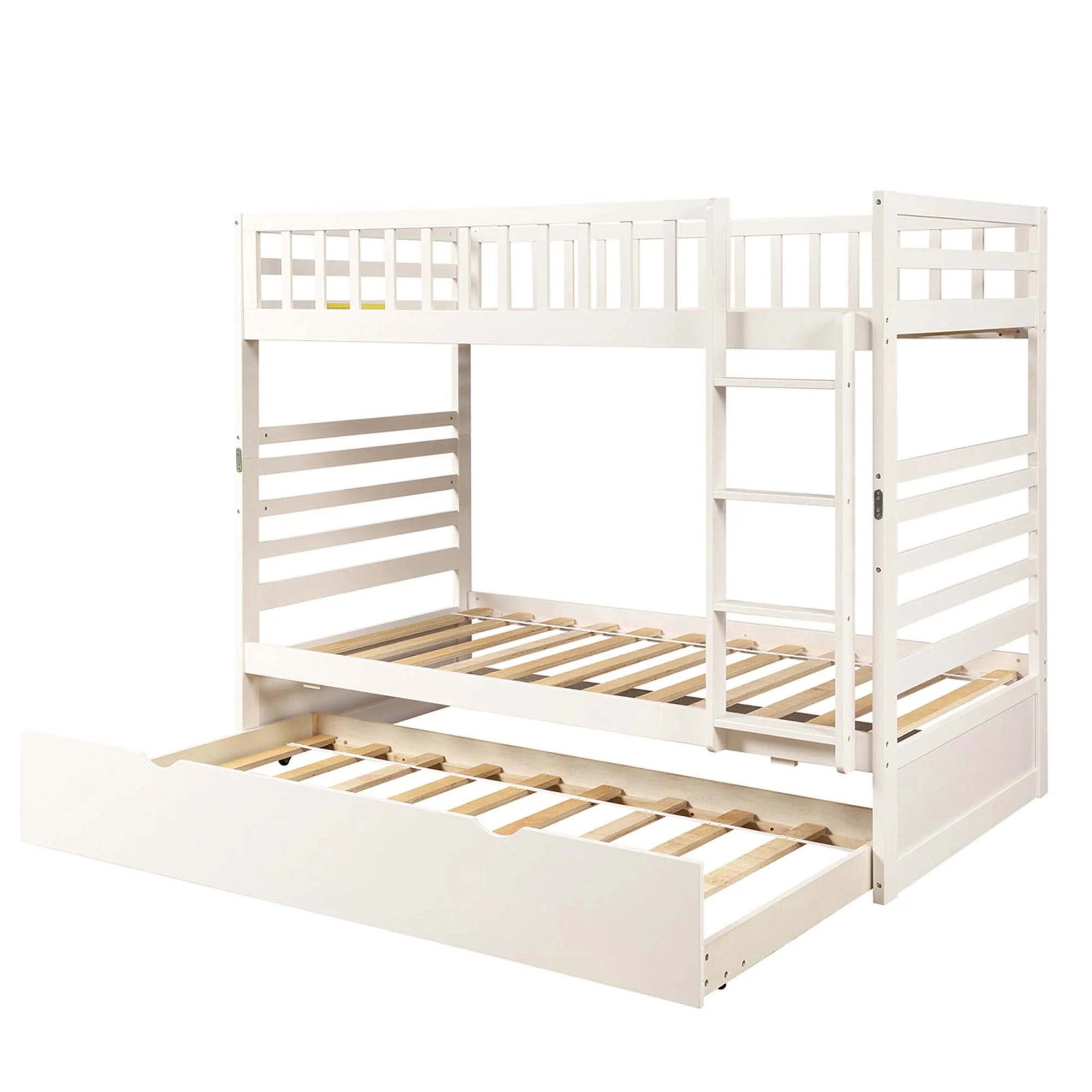 Momspeace Twin Bunk Bed with Safety Rail and Trundle for Kids Bedroom Soild Wood Furniture, White