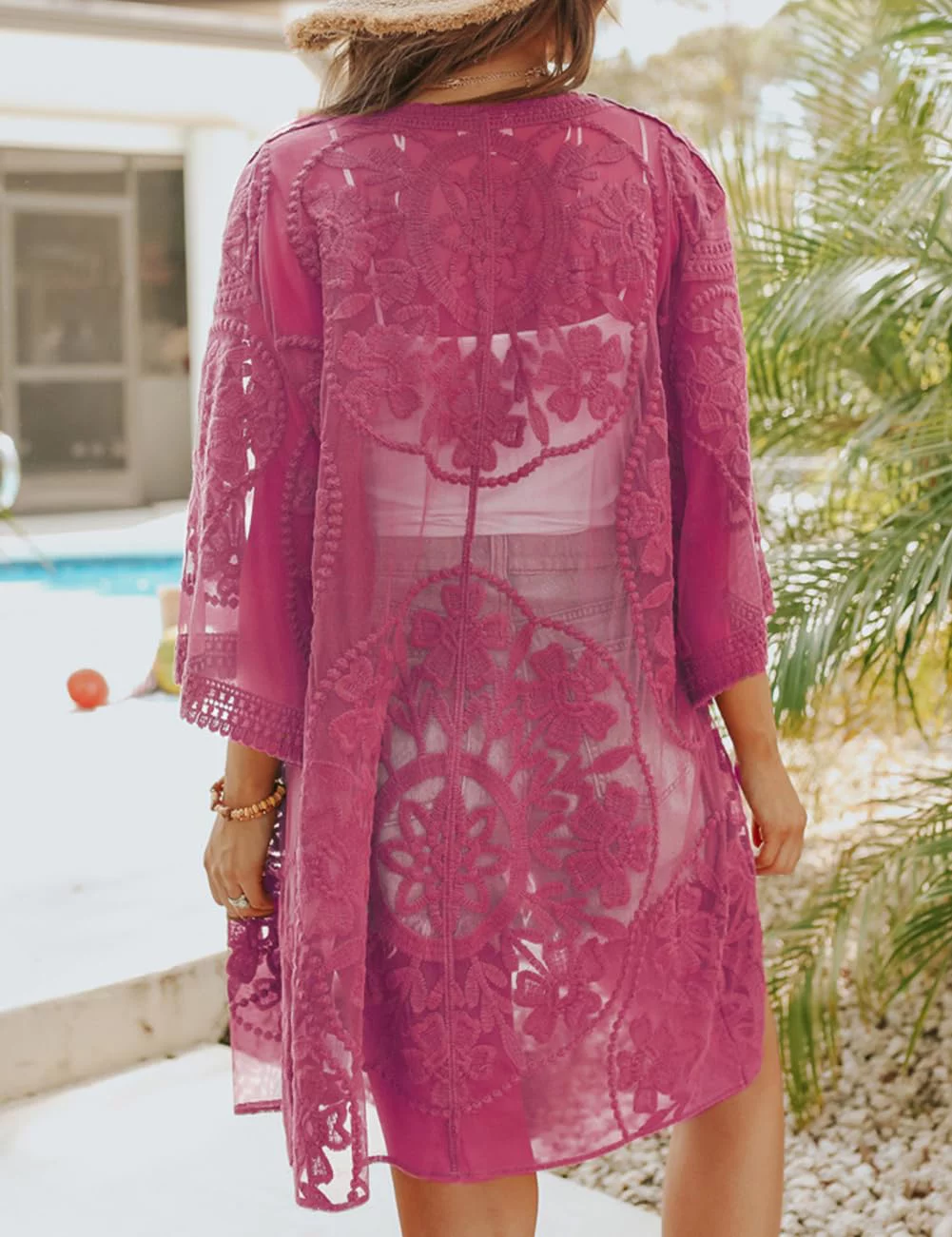 Bsubseach Sexy See Through Swimsuit Cover Up for Women Mesh Bikini Beach Kimono Cardigan