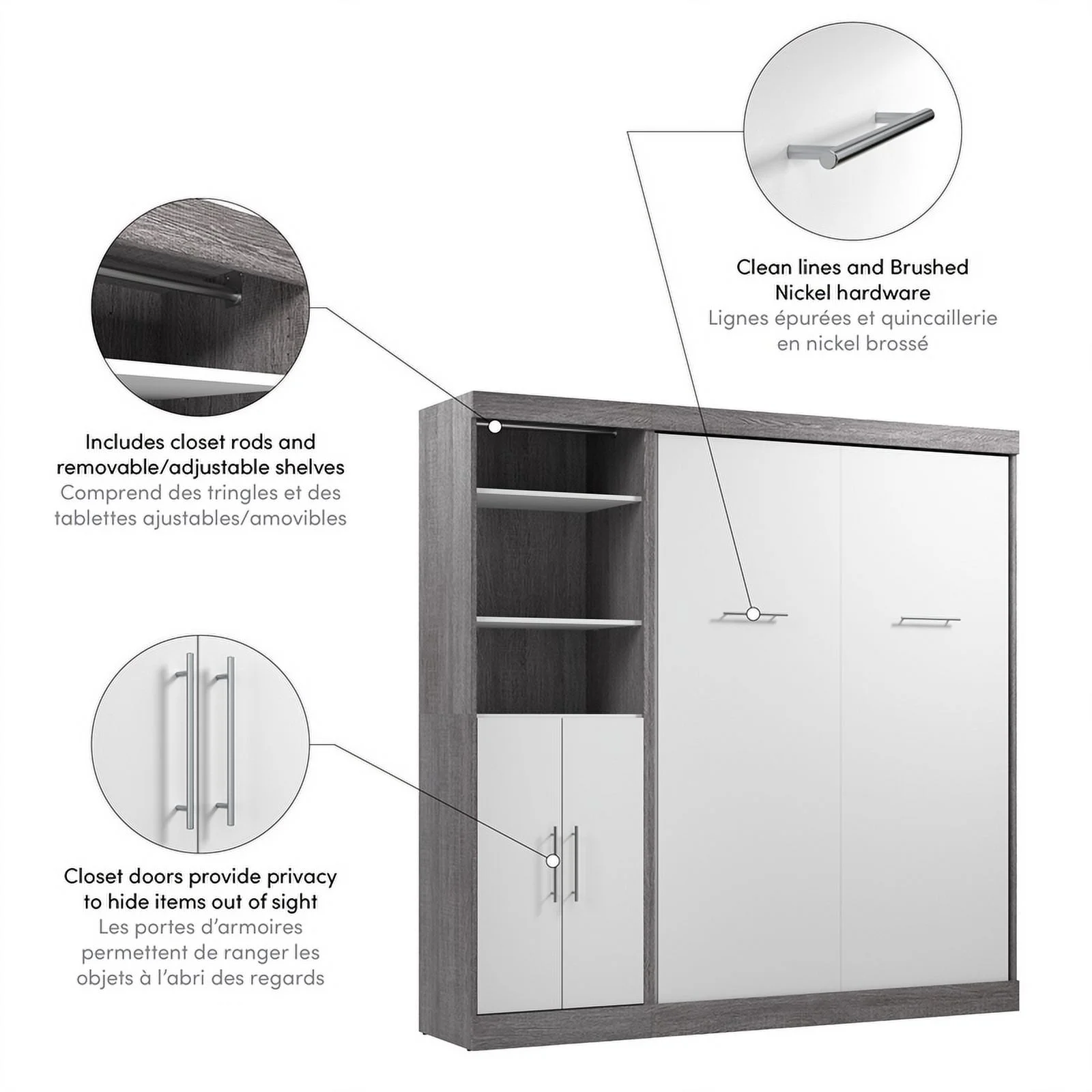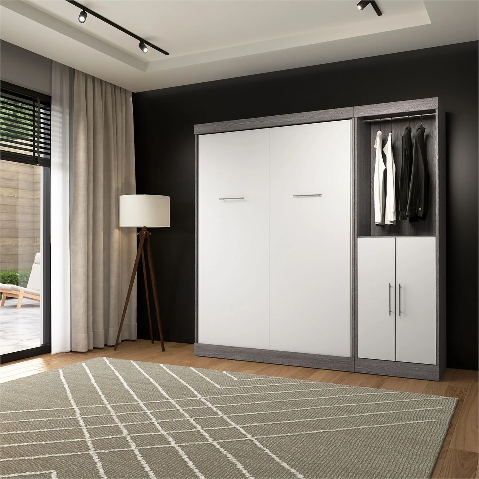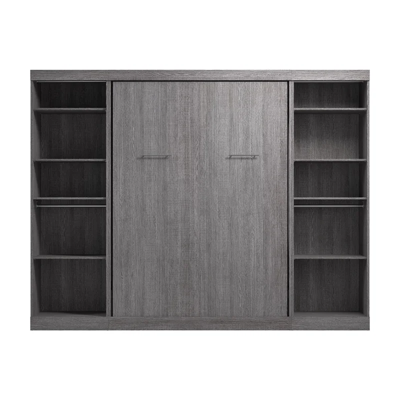 Bestar Nebula Wood Queen Murphy Bed with 2 Closet Organizers in Bark Gray