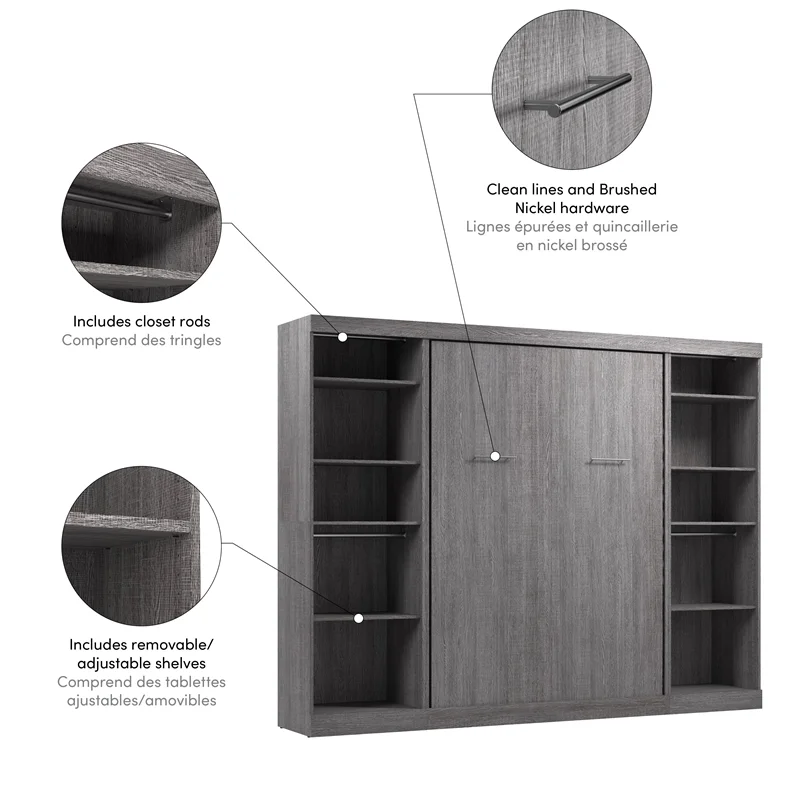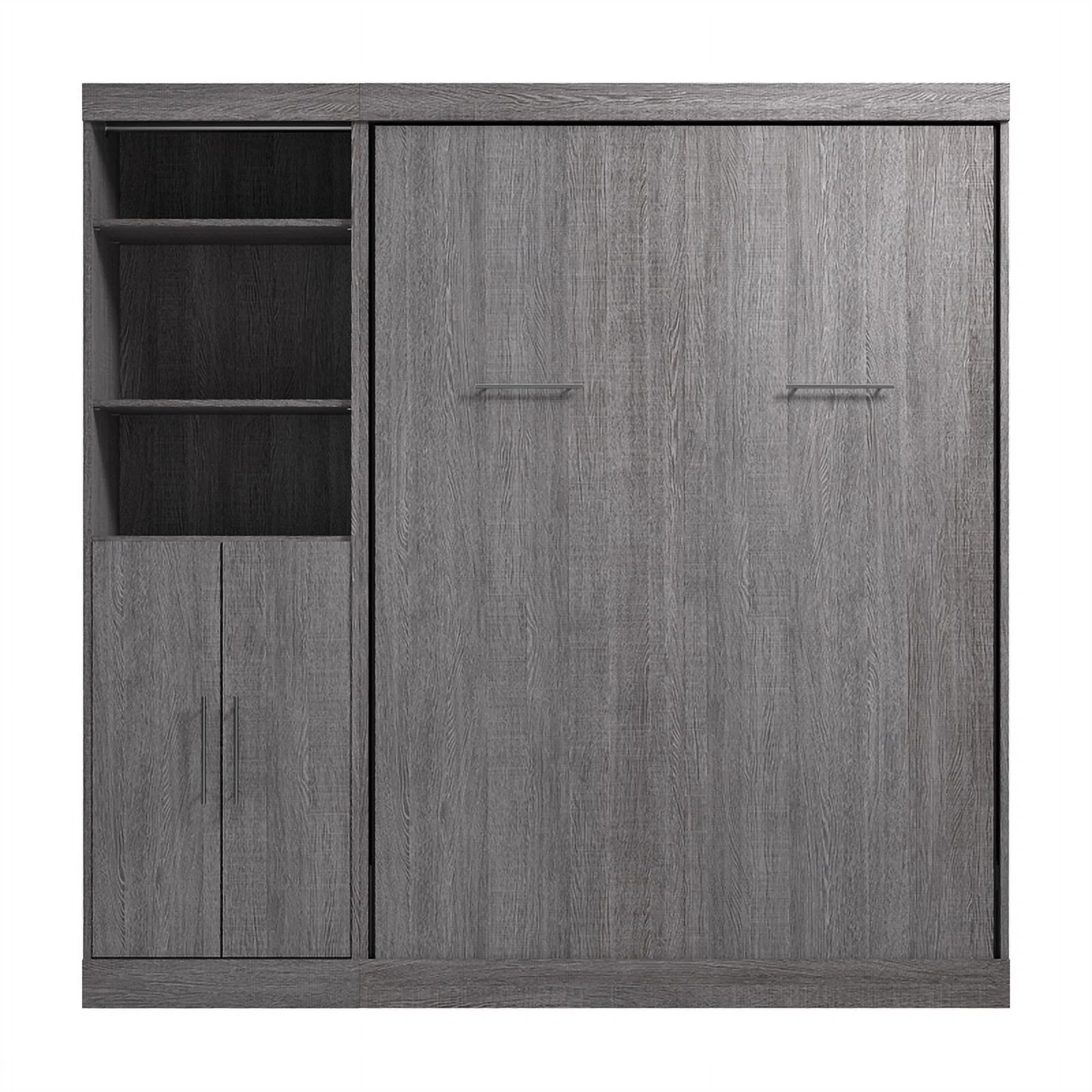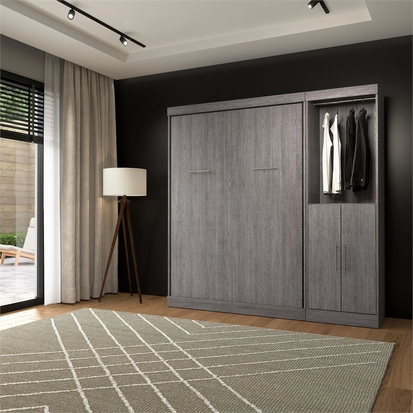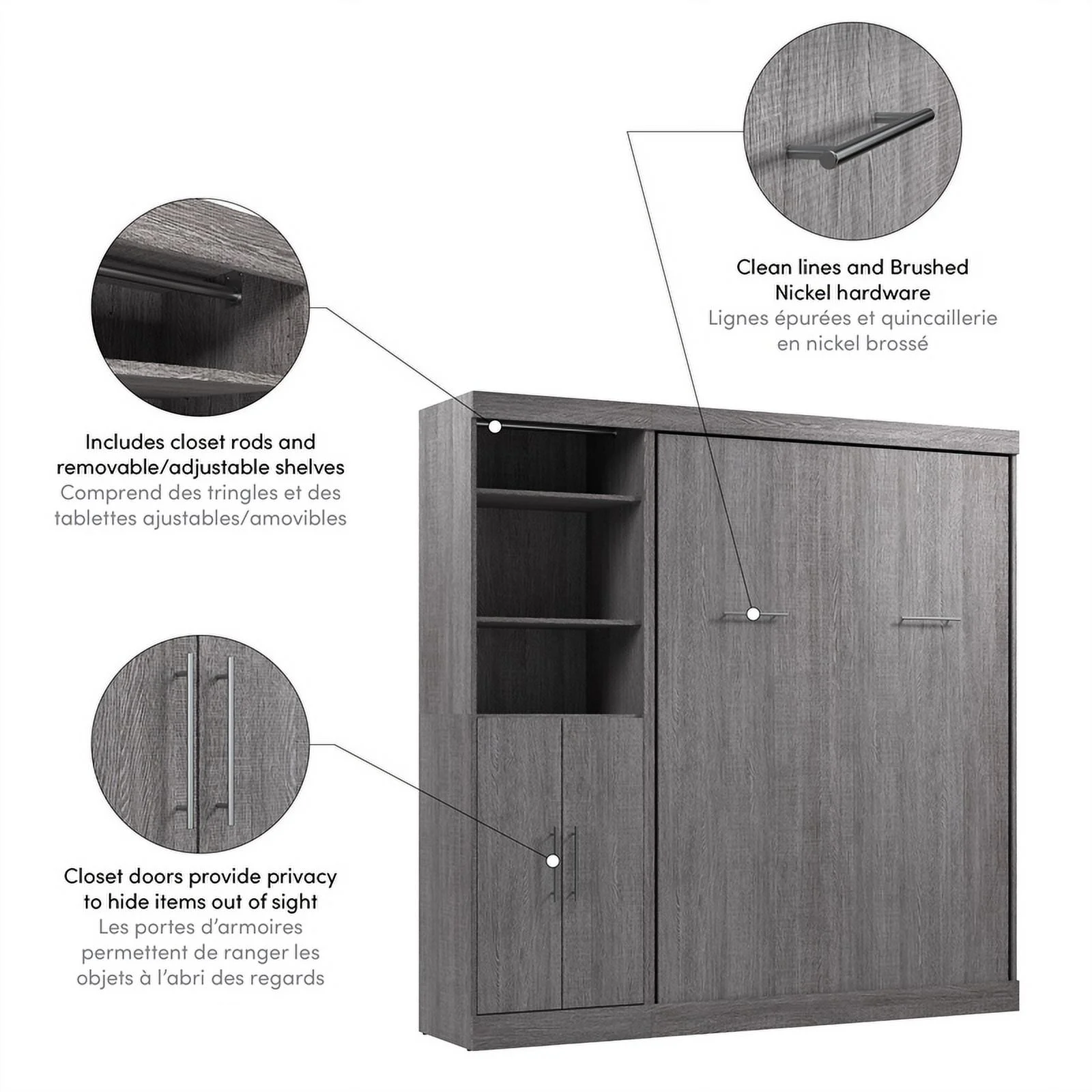 Bestar Nebula Wood Queen Murphy Bed with 2 Closet Organizers in Bark Gray