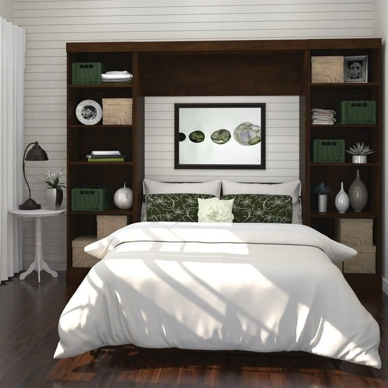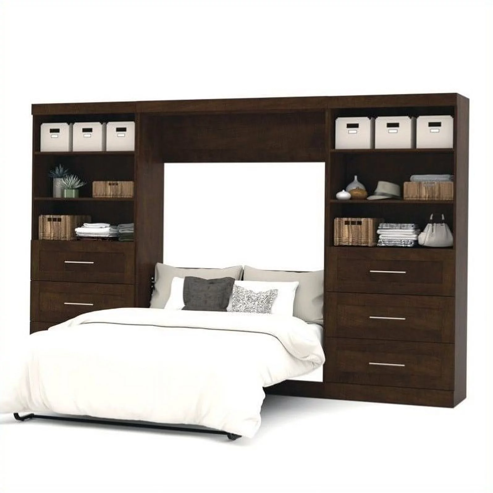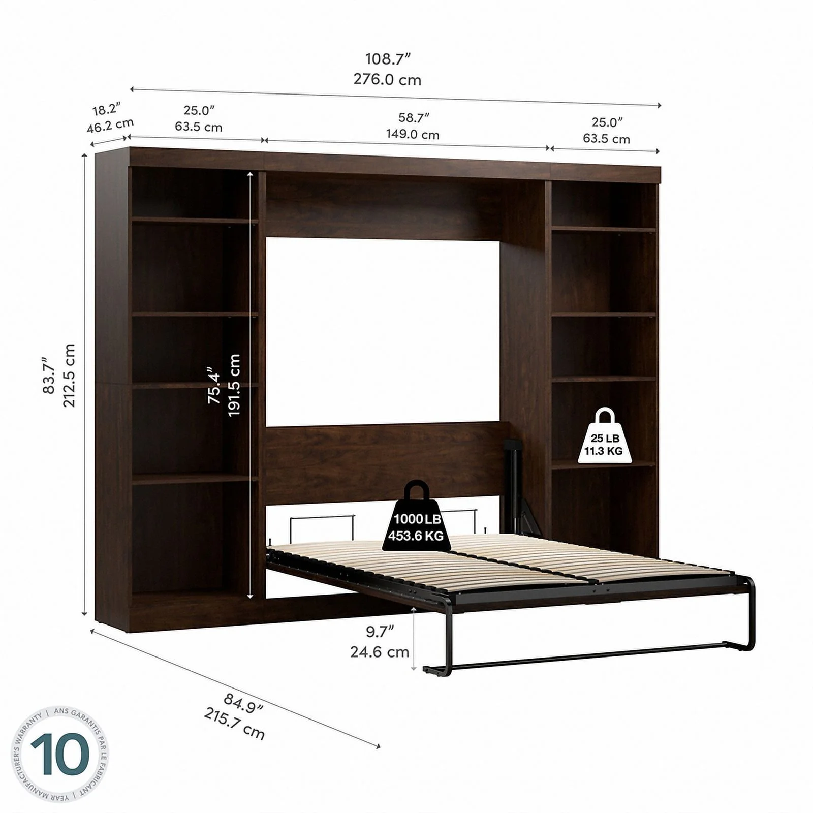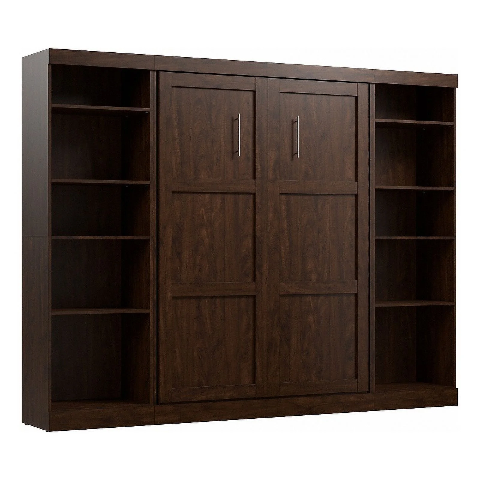 Pemberly Row Full Murphy Bed with 2 Shelving Units (109W) in Chocolate
