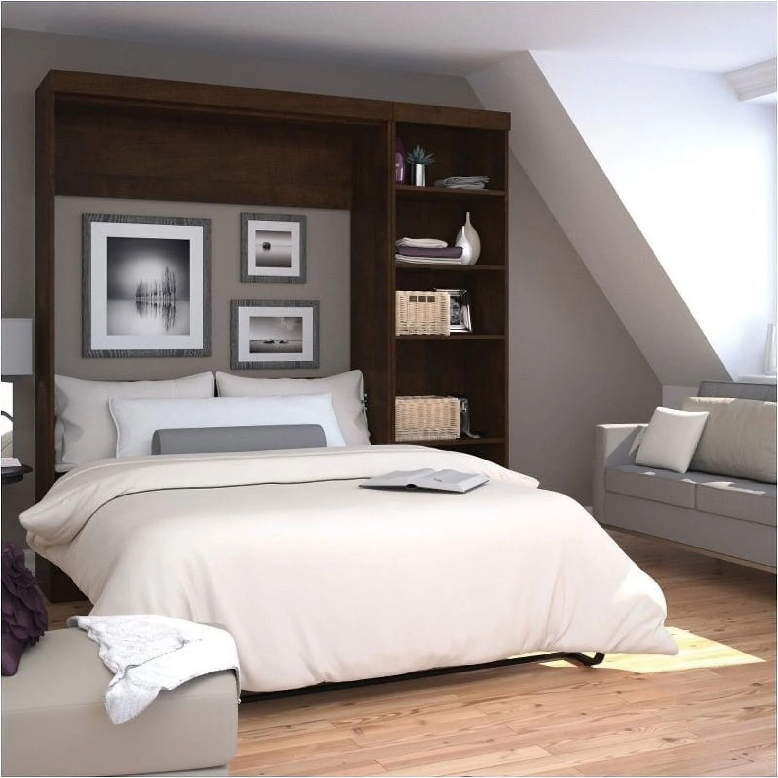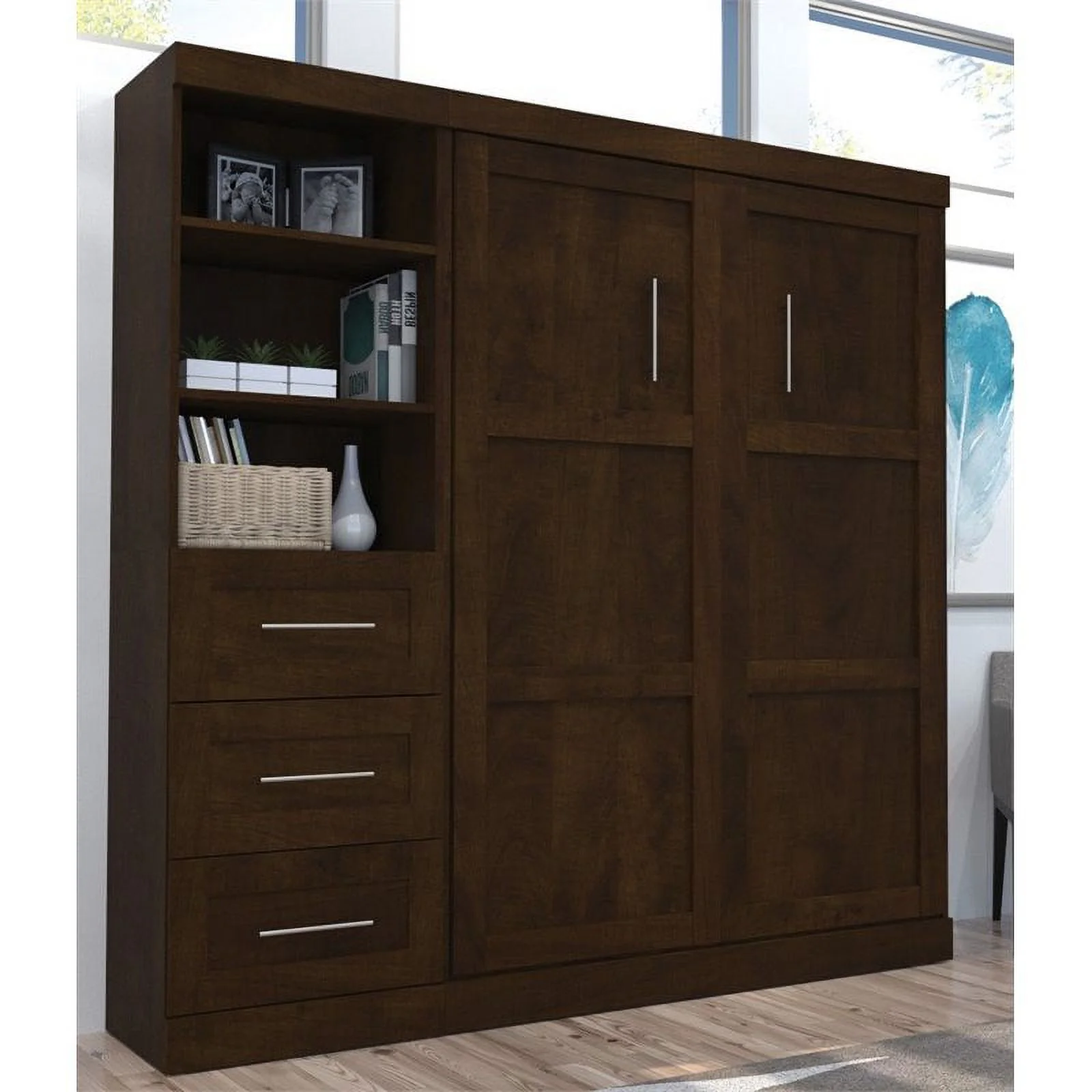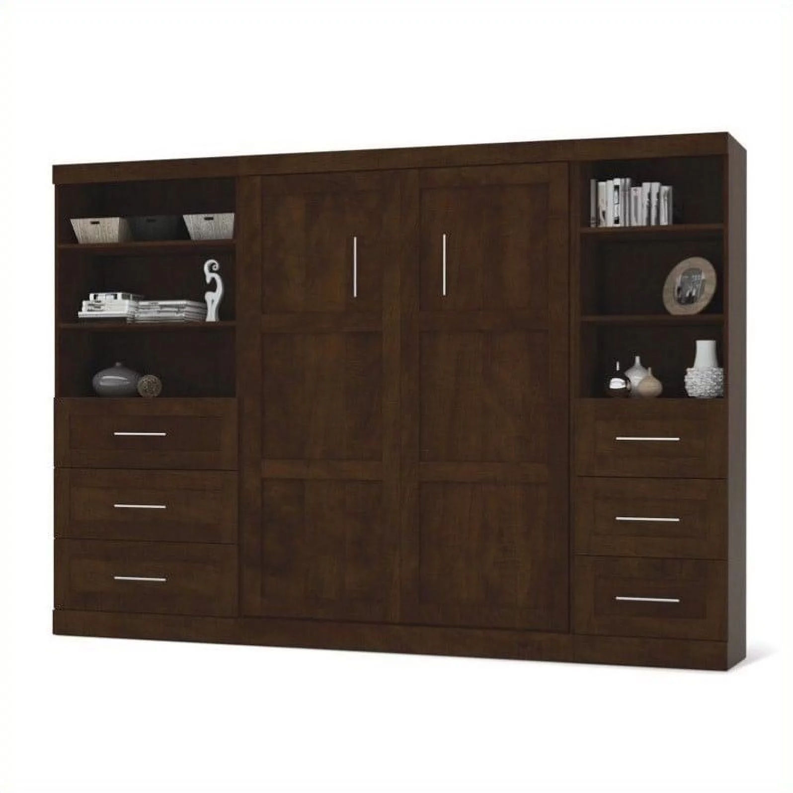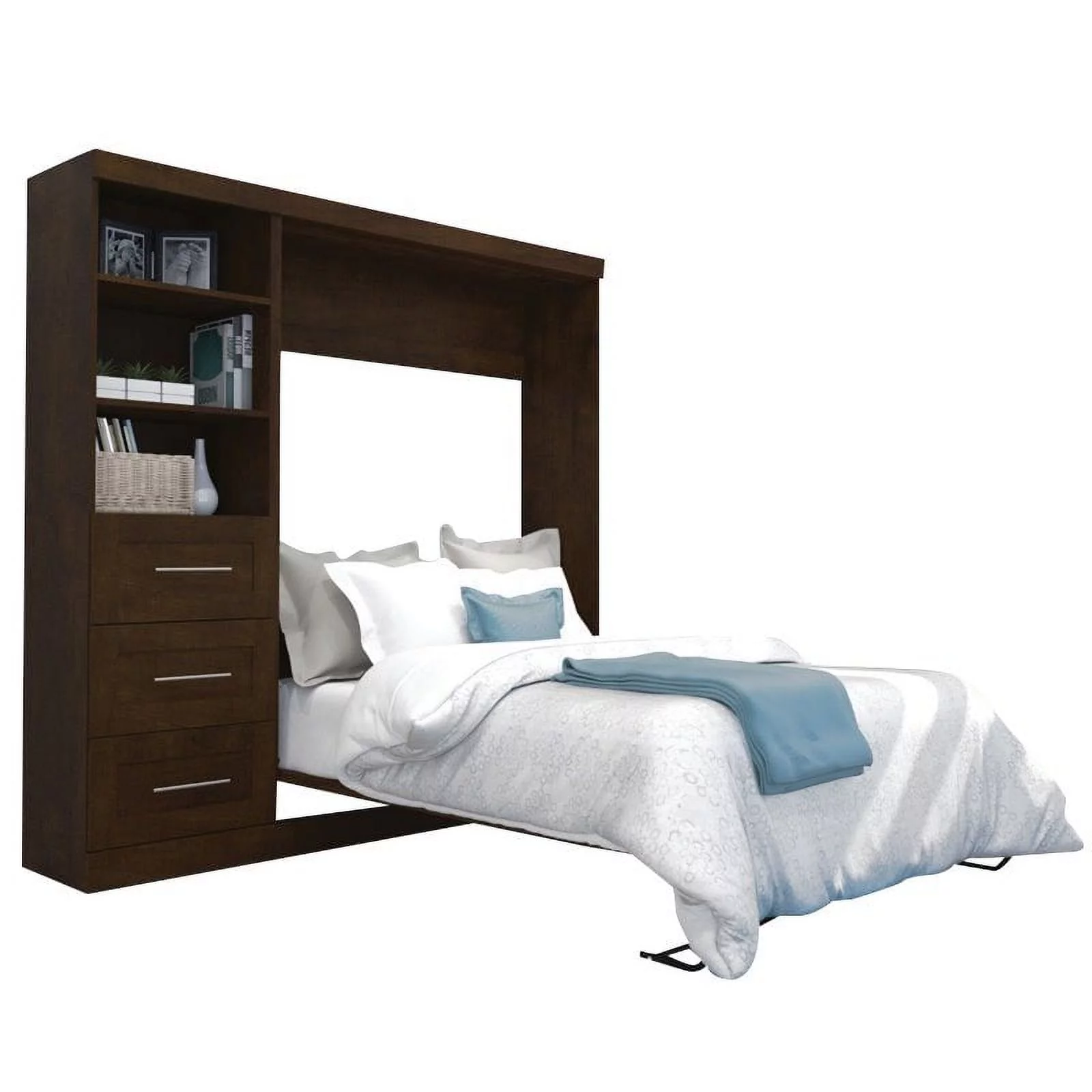 Pemberly Row Full Murphy Bed with 2 Shelving Units (109W) in Chocolate