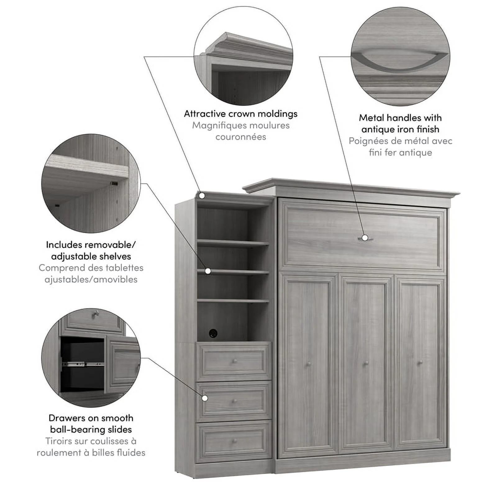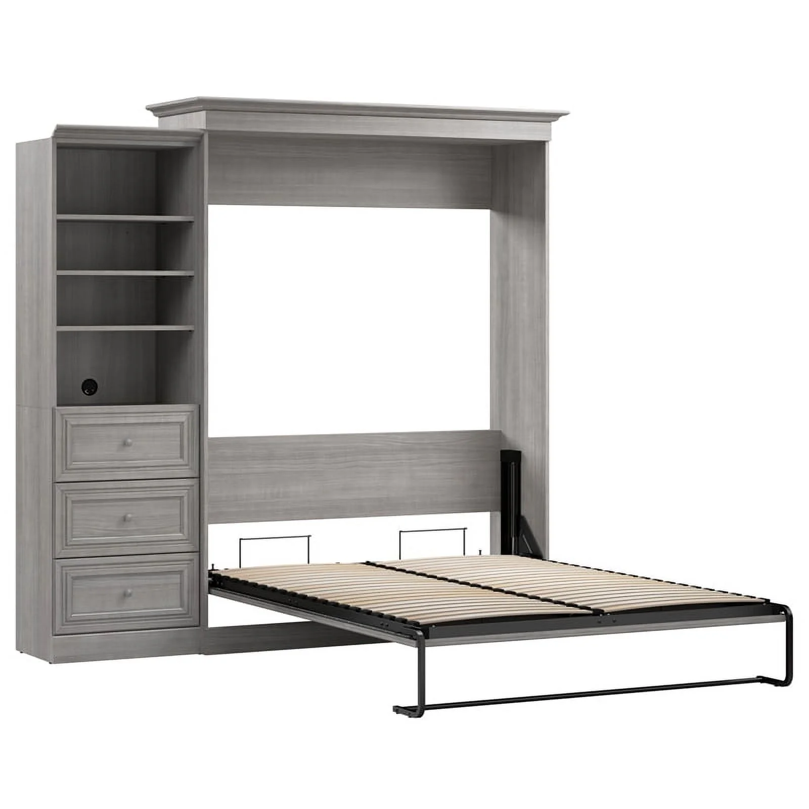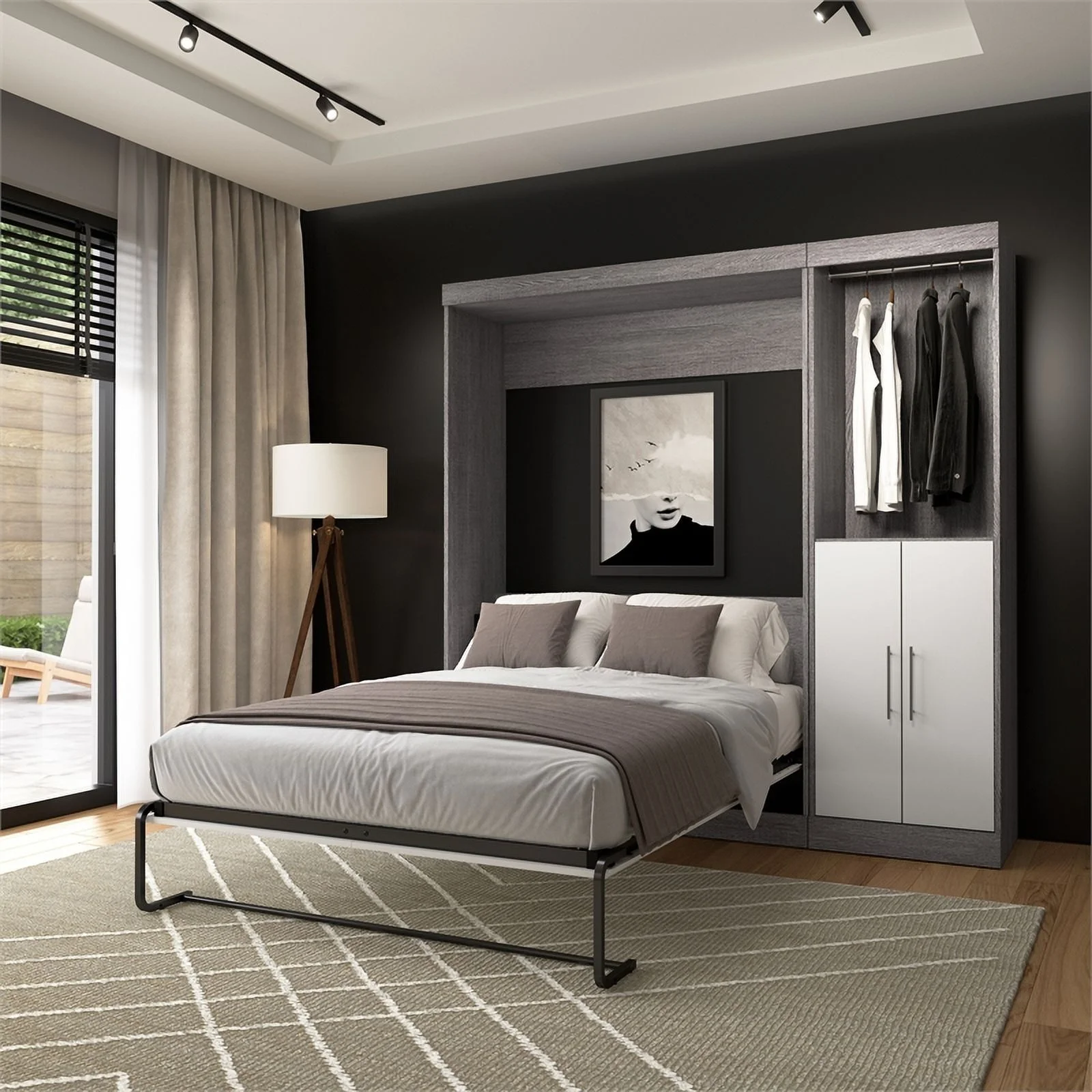 Bestar USA Claremont Wood Queen Murphy Bed with Closet Organizer in Gray