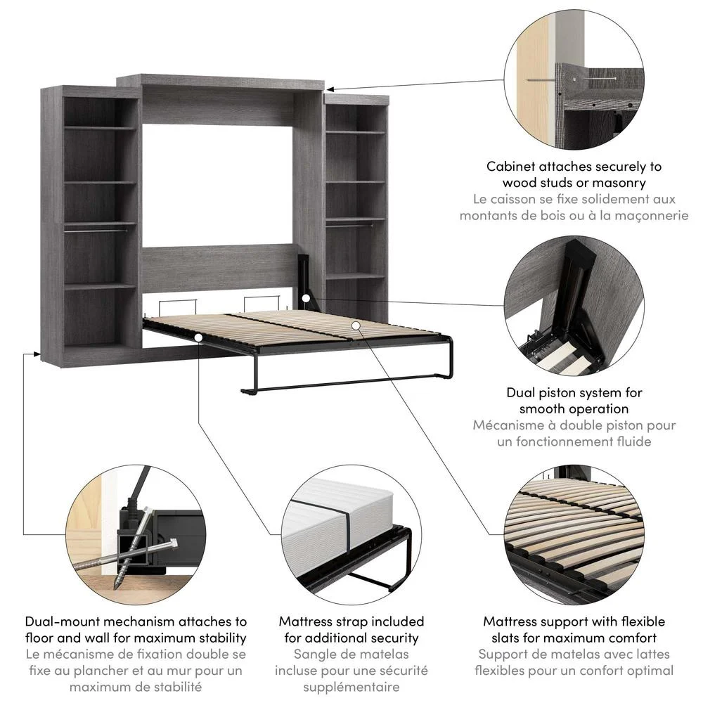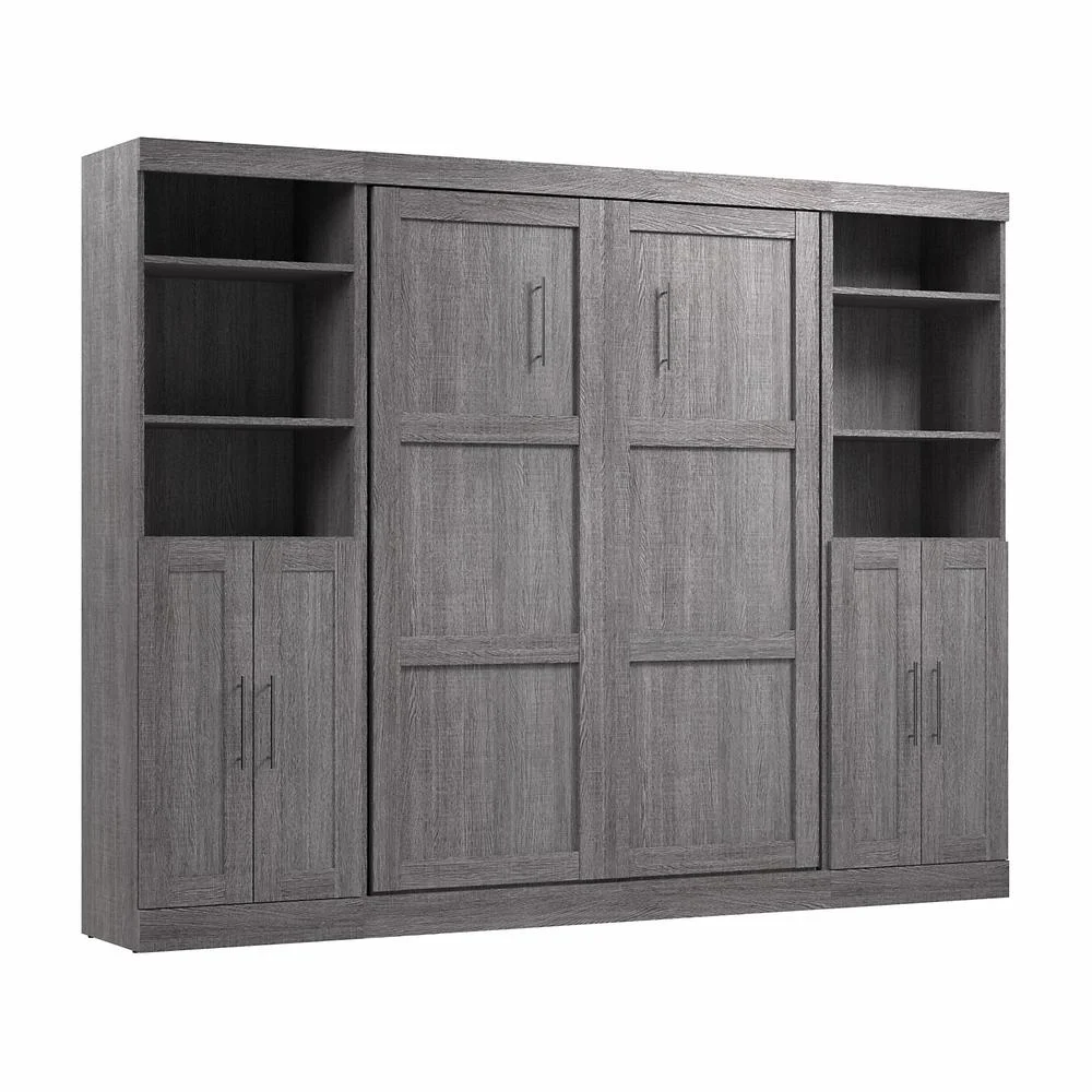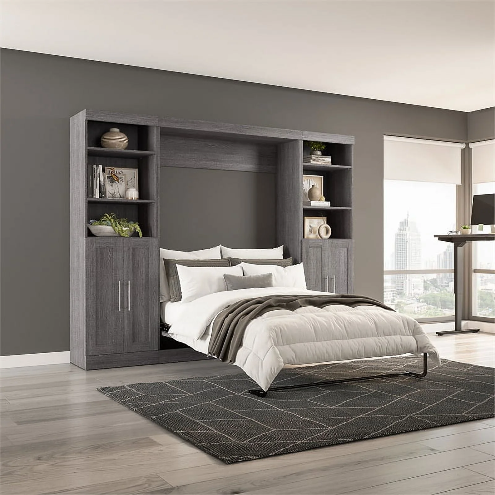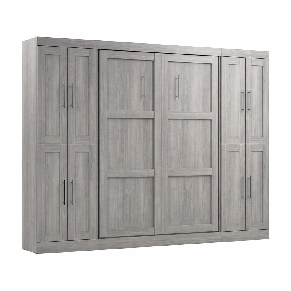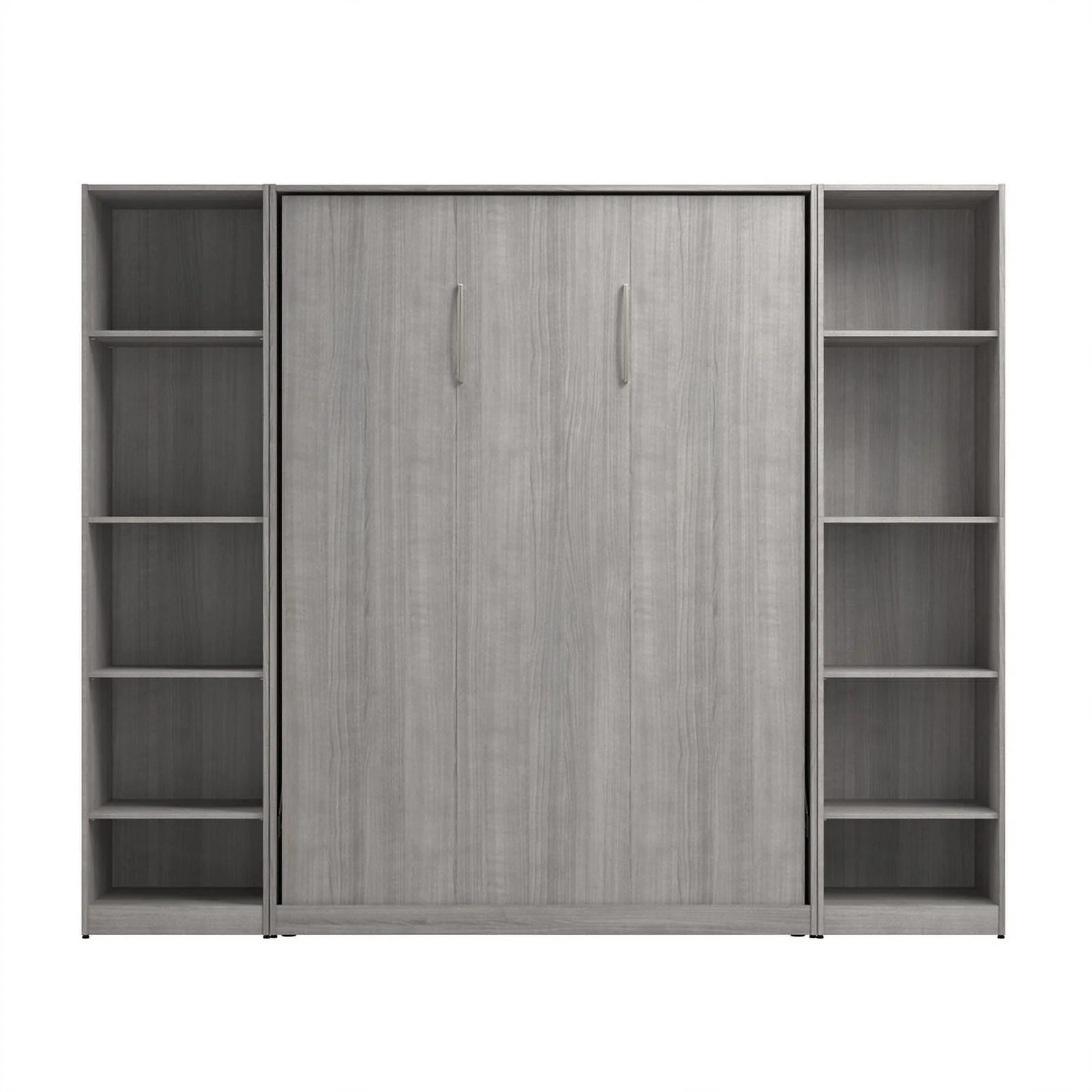 Bestar Pur Engineered Wood Full Murphy Bed with Storage Cabinets in Gray