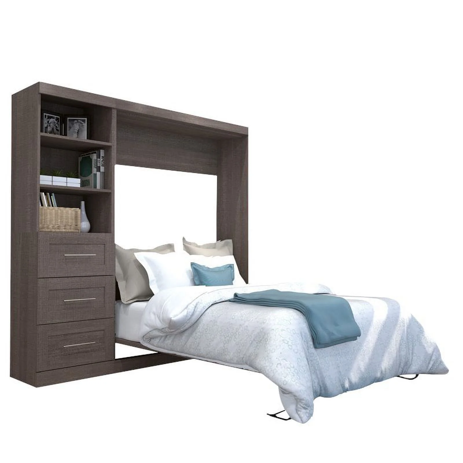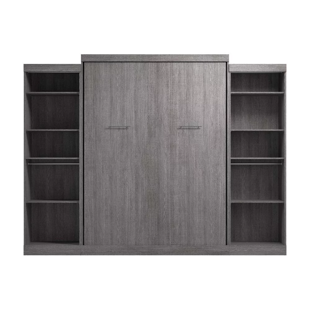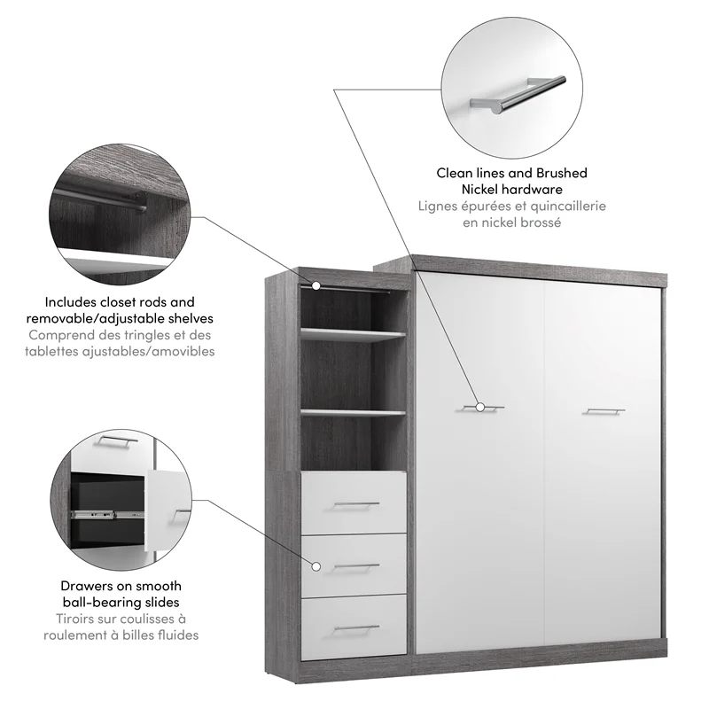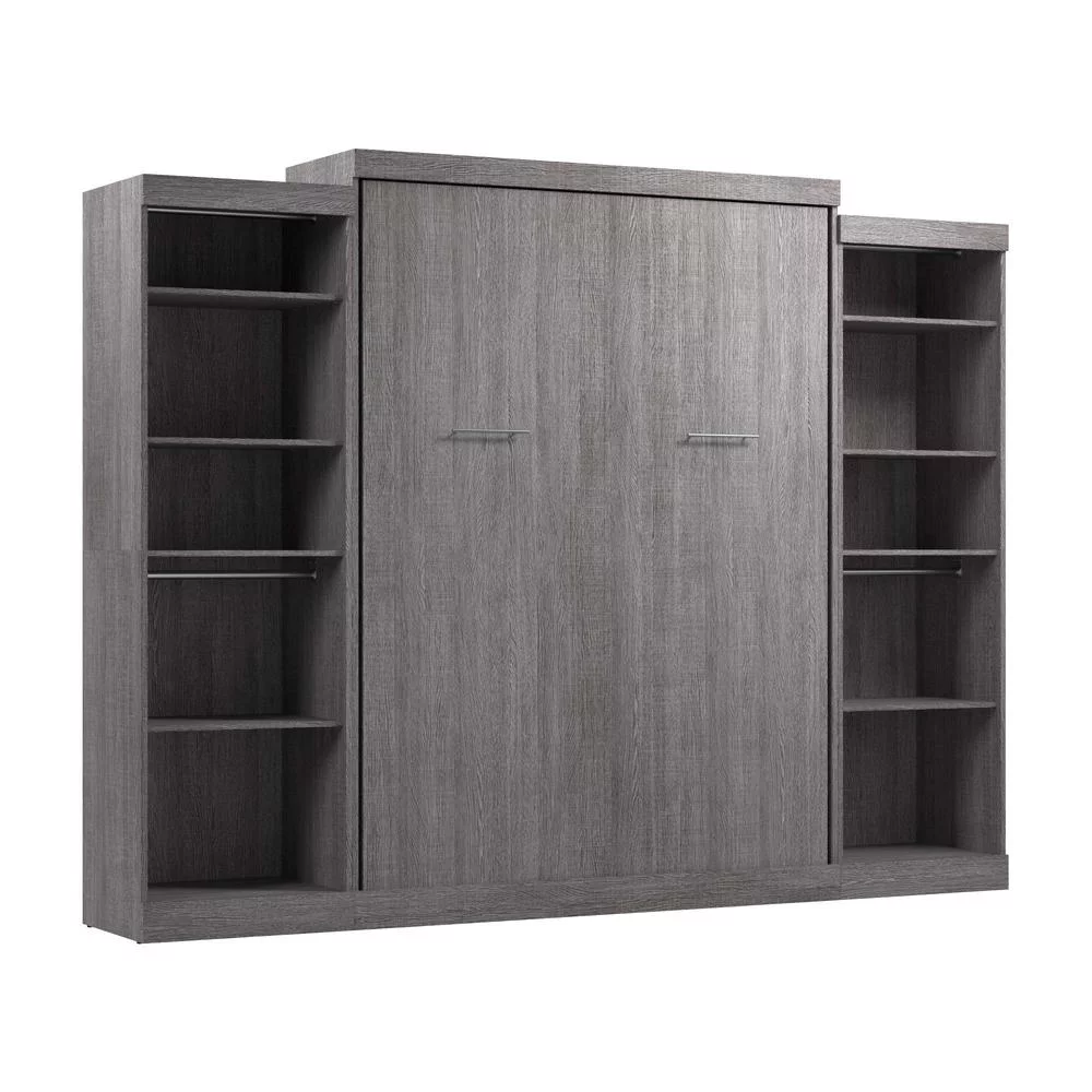 Bestar Nebula Wood Full Murphy Bed and 2 Closet Organizers in Bark Gray