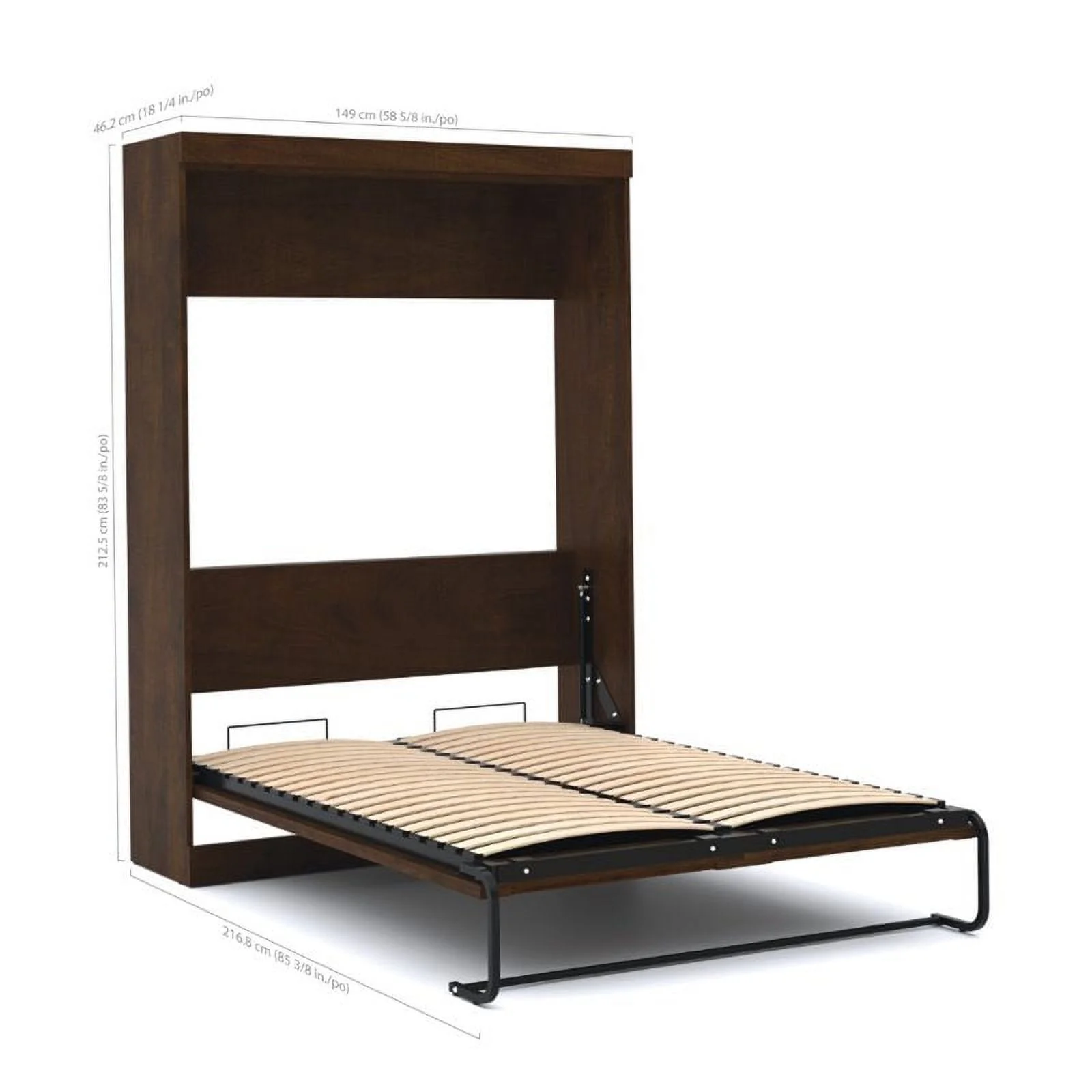 Atlin Designs 84" Modern Wood Full Wall Bed w/ 5-Shelf Storage Unit in Chocolate