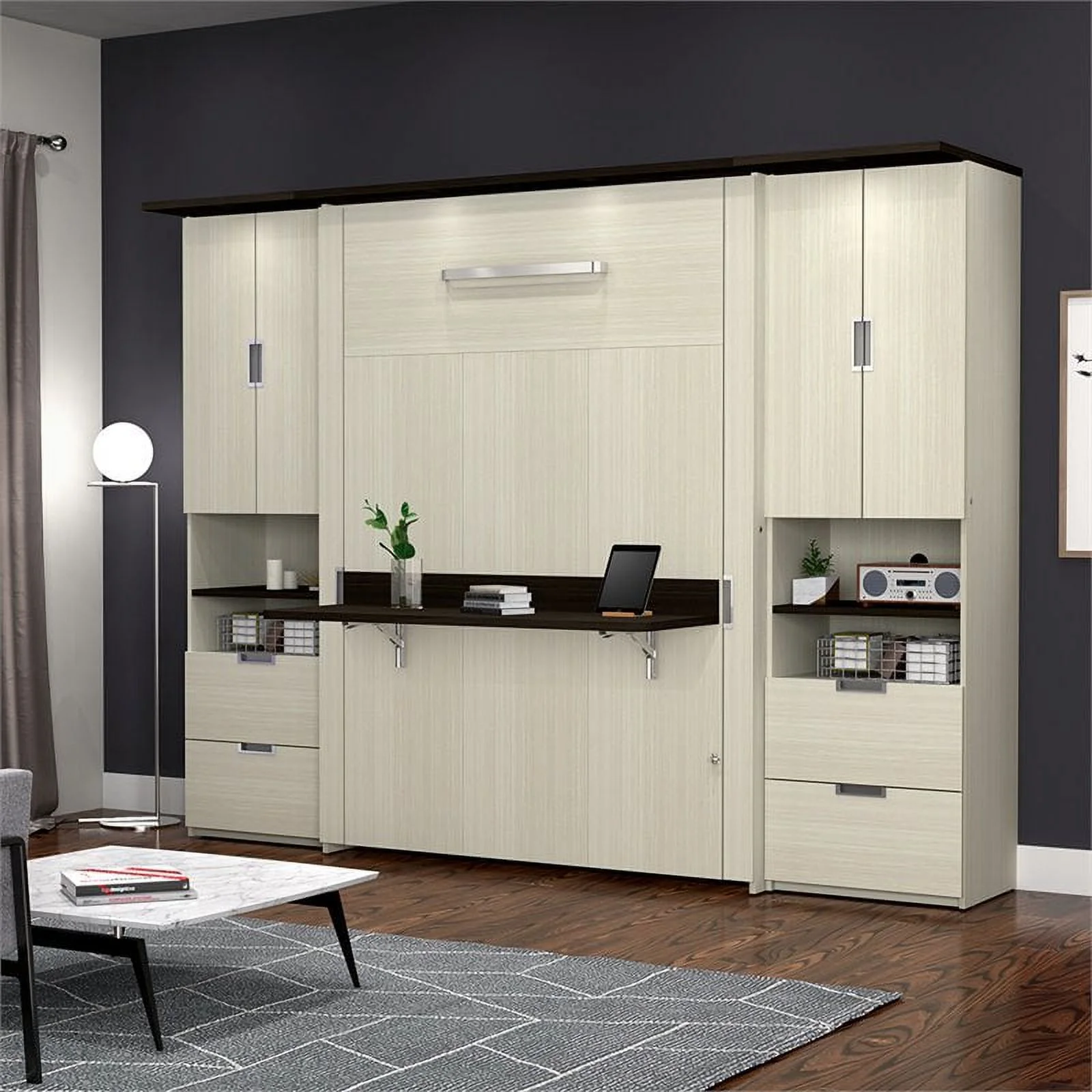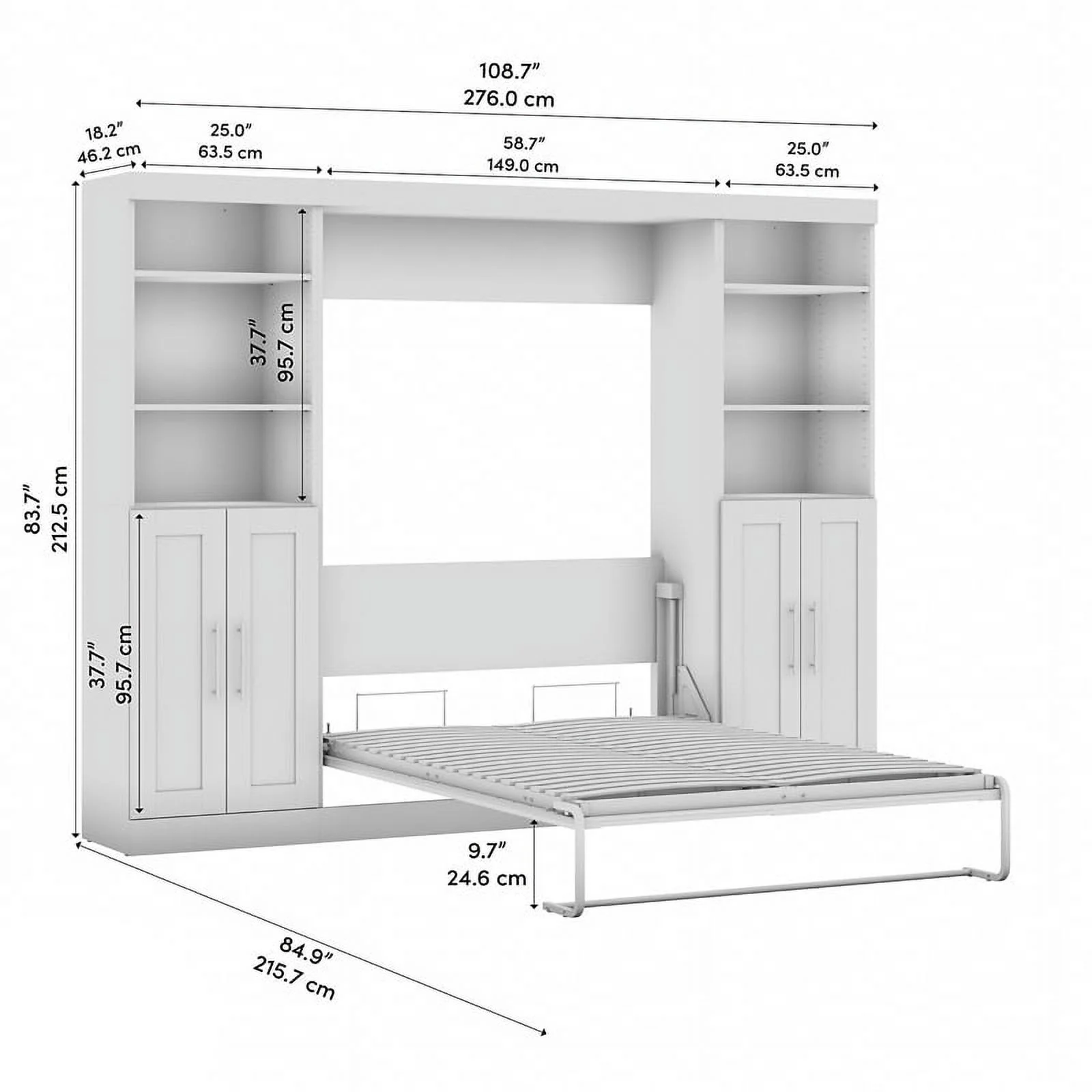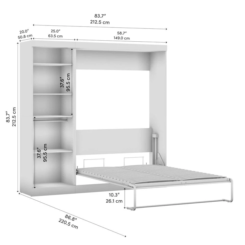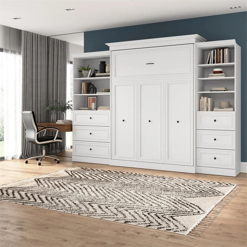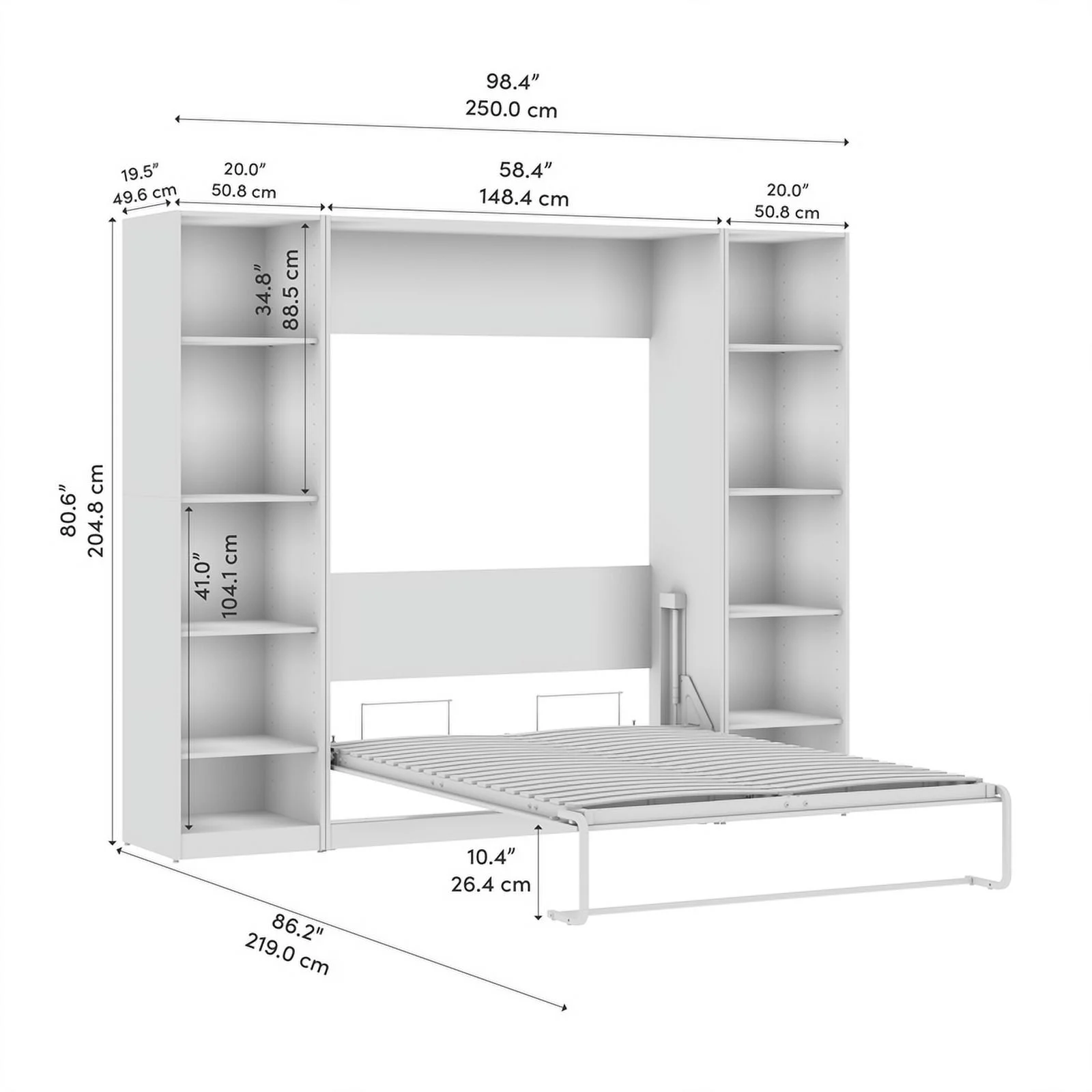 Bestar Versatile Engineered Wood Queen Murphy Bed and Organizers in White