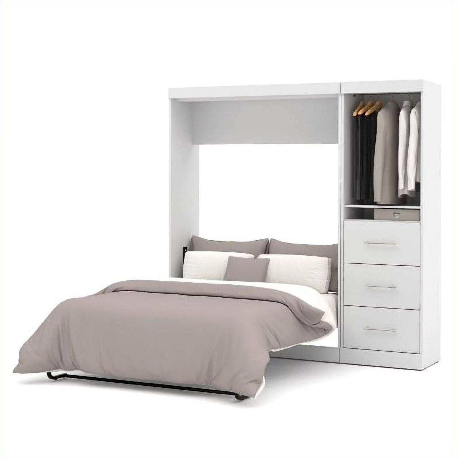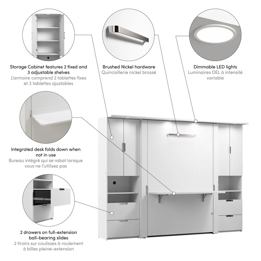 Bestar Nebula Engineered Wood Queen Murphy Bed and Organizer w/ Drawers in White