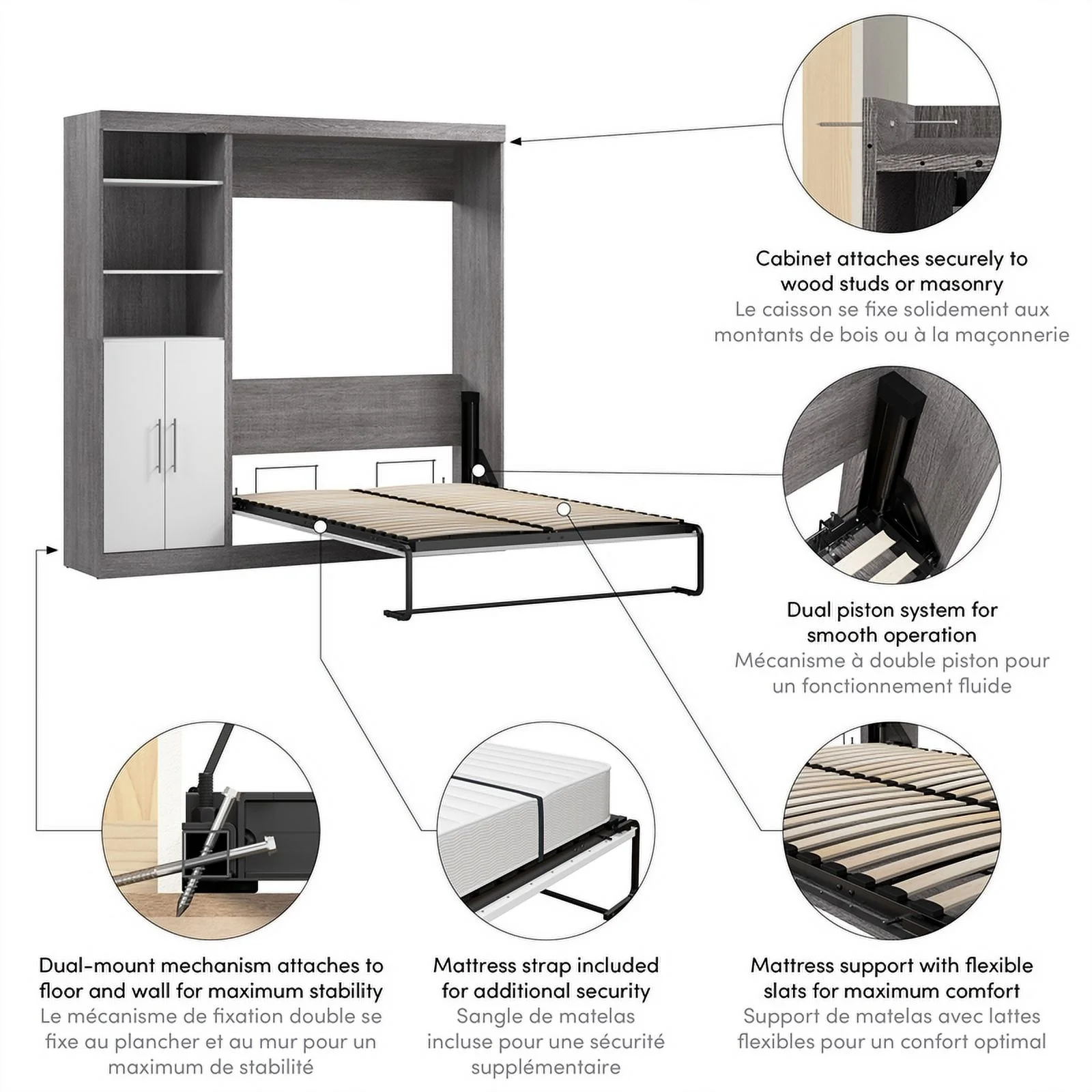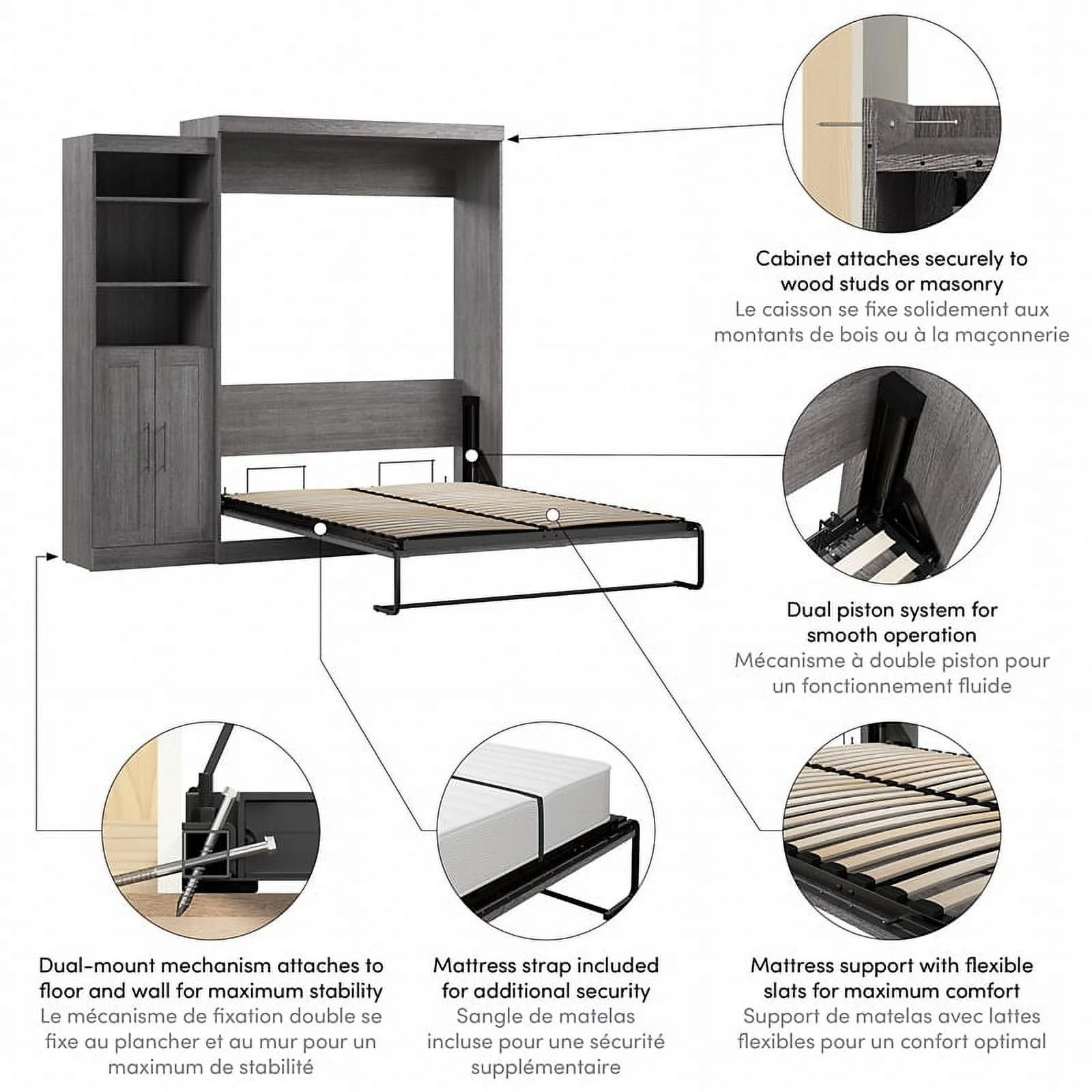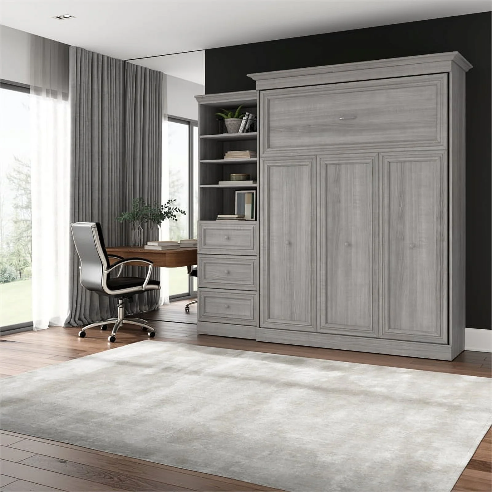 Bestar Versatile Engineered Wood Queen Murphy Bed and Organizer in Platinum Gray