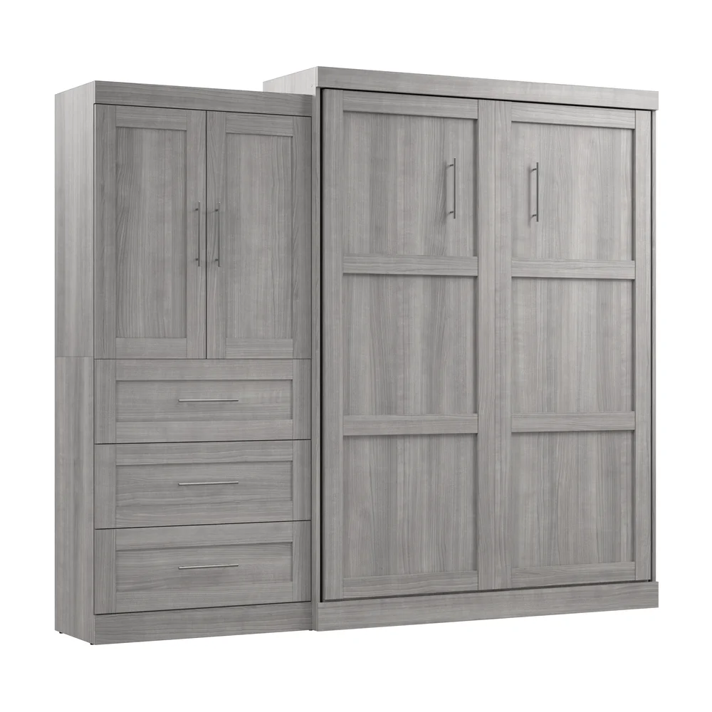 Bestar Pur Queen Murphy Bed and Storage Cabinet with Drawers (101W) in Platinum Gray