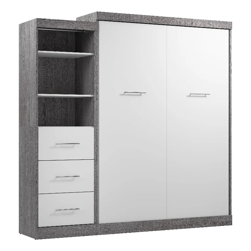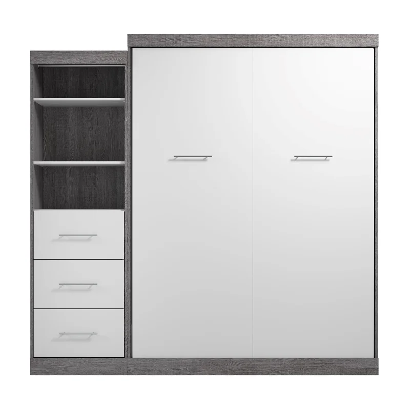 Bestar Nebula Wood Queen Murphy Bed and Organizer w/ Drawers in Bark Gray/White