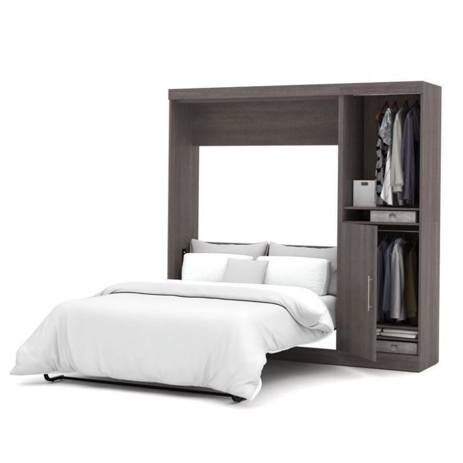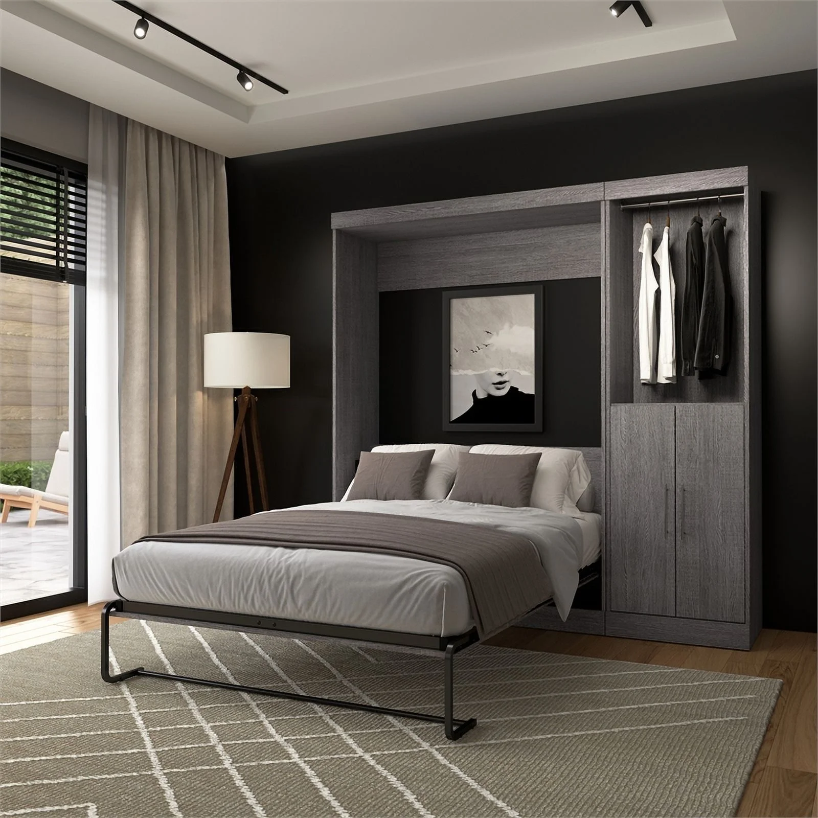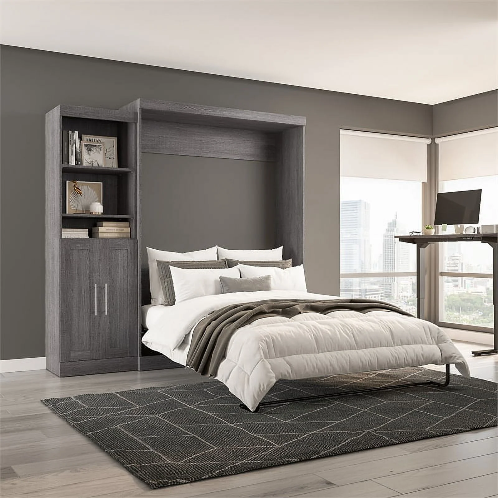 Bestar Pur Engineered Wood Queen Murphy Bed and Closet Organizer in Bark Gray