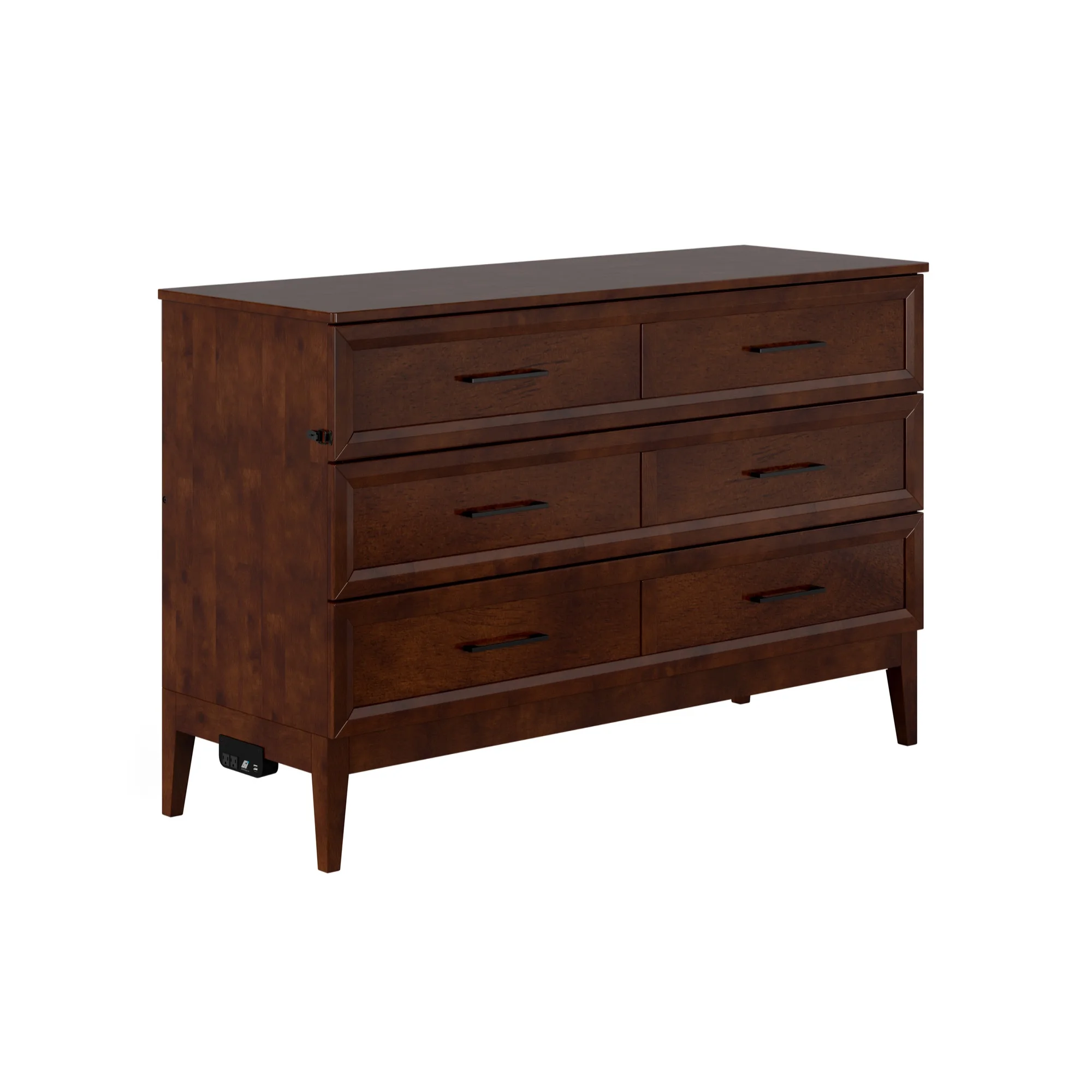 Santa Fe Queen Murphy Bed Chest with Mattress & Built-in Charger in Walnut