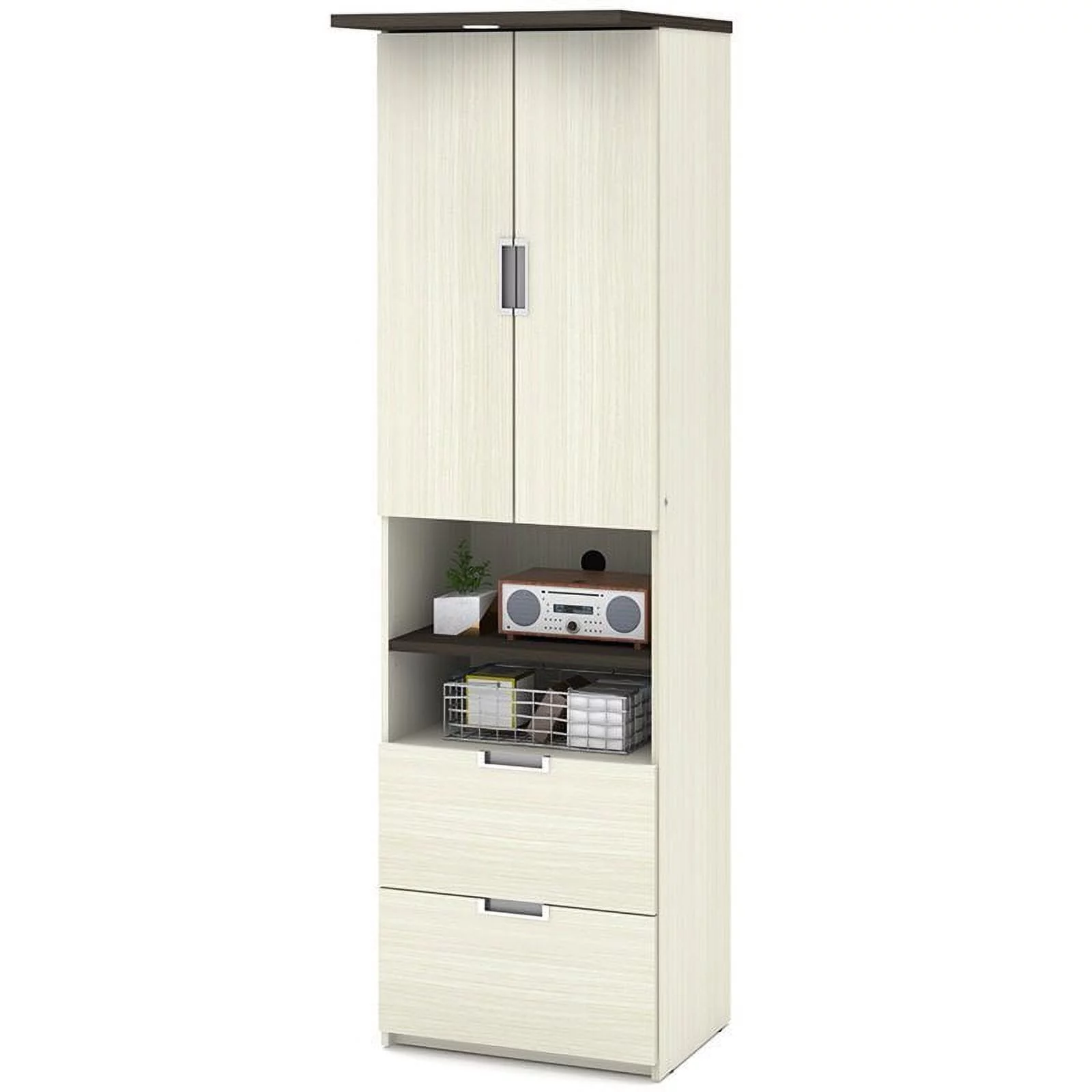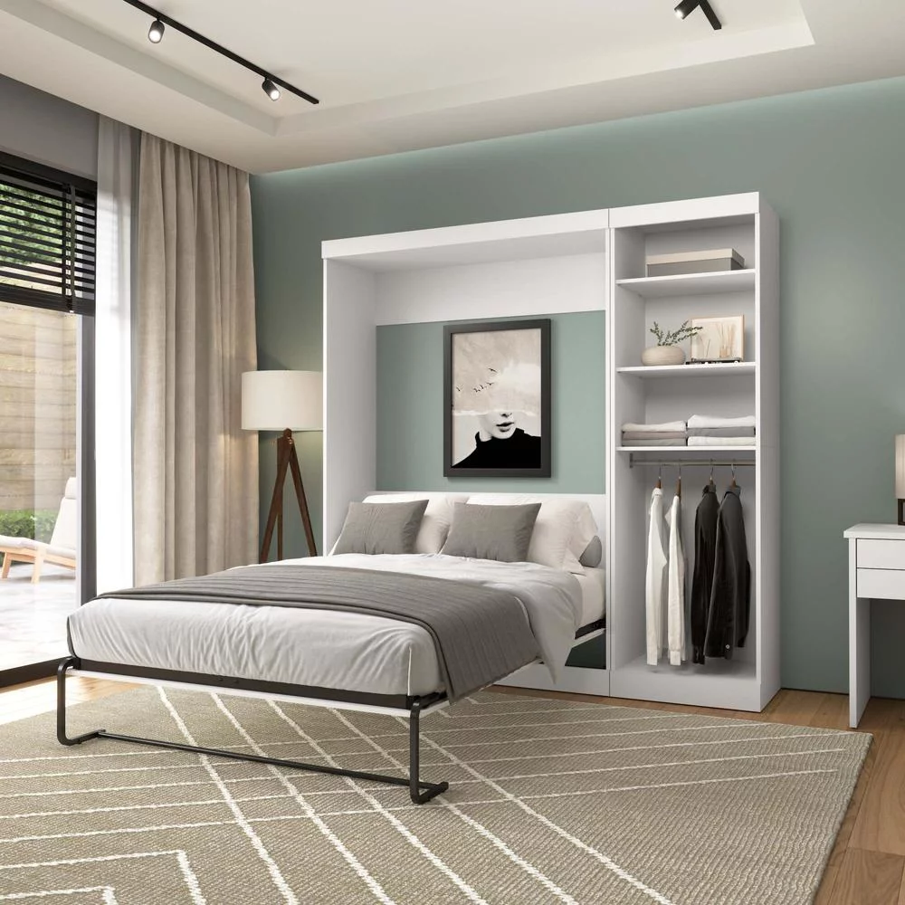 Bestar Nebula Engineered Wood Full Murphy Bed with Closet Organizer in White