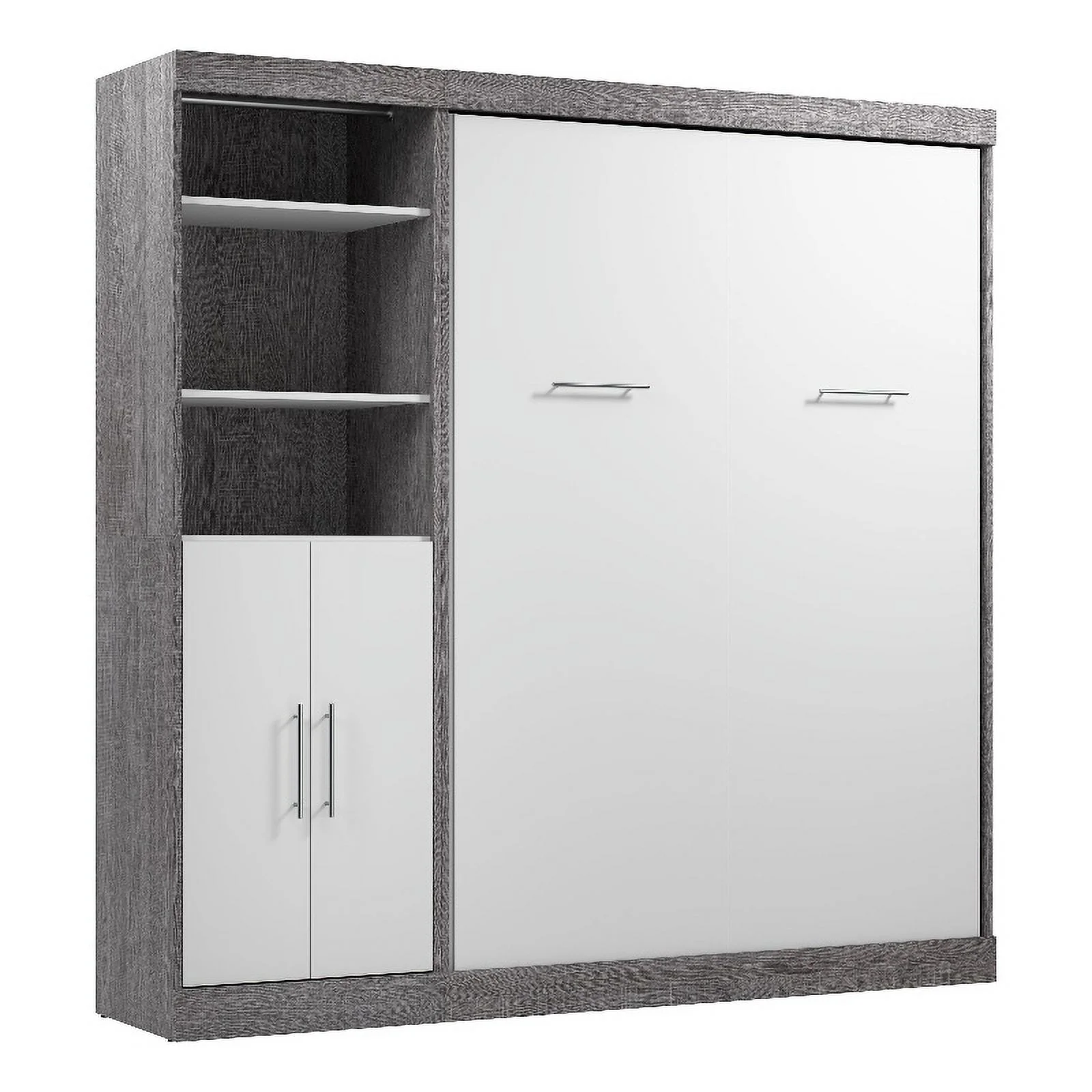 Bestar USA Claremont Wood Full Murphy Bed with Closet Organizers in Gray