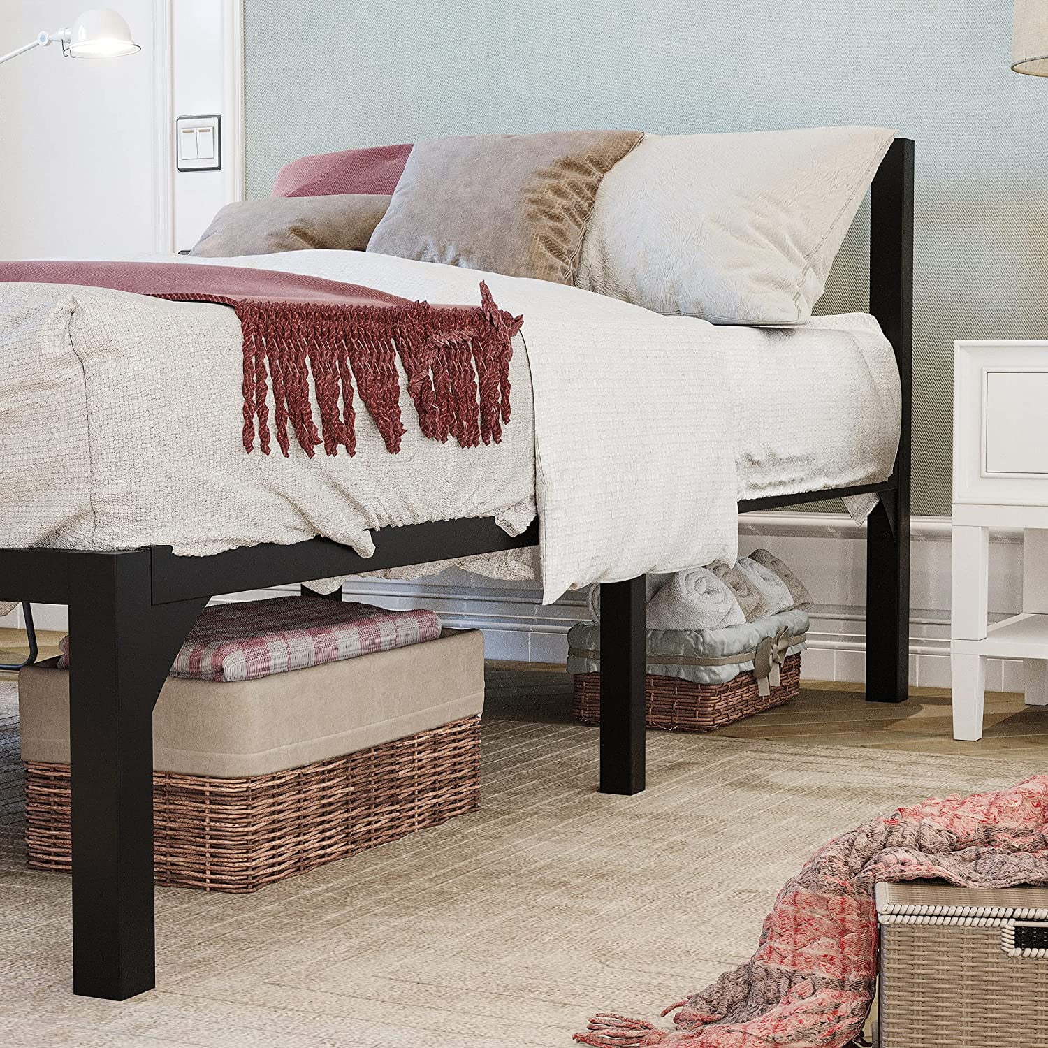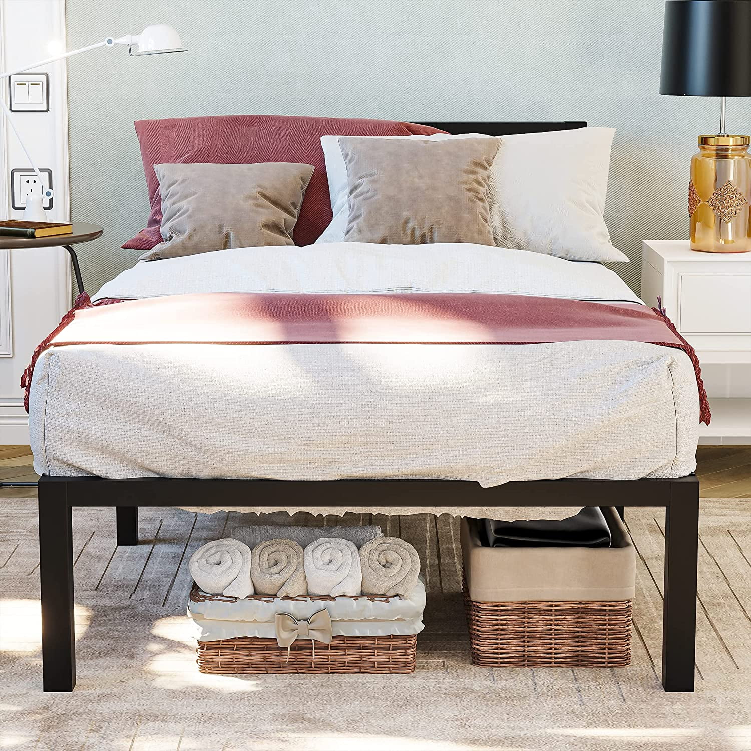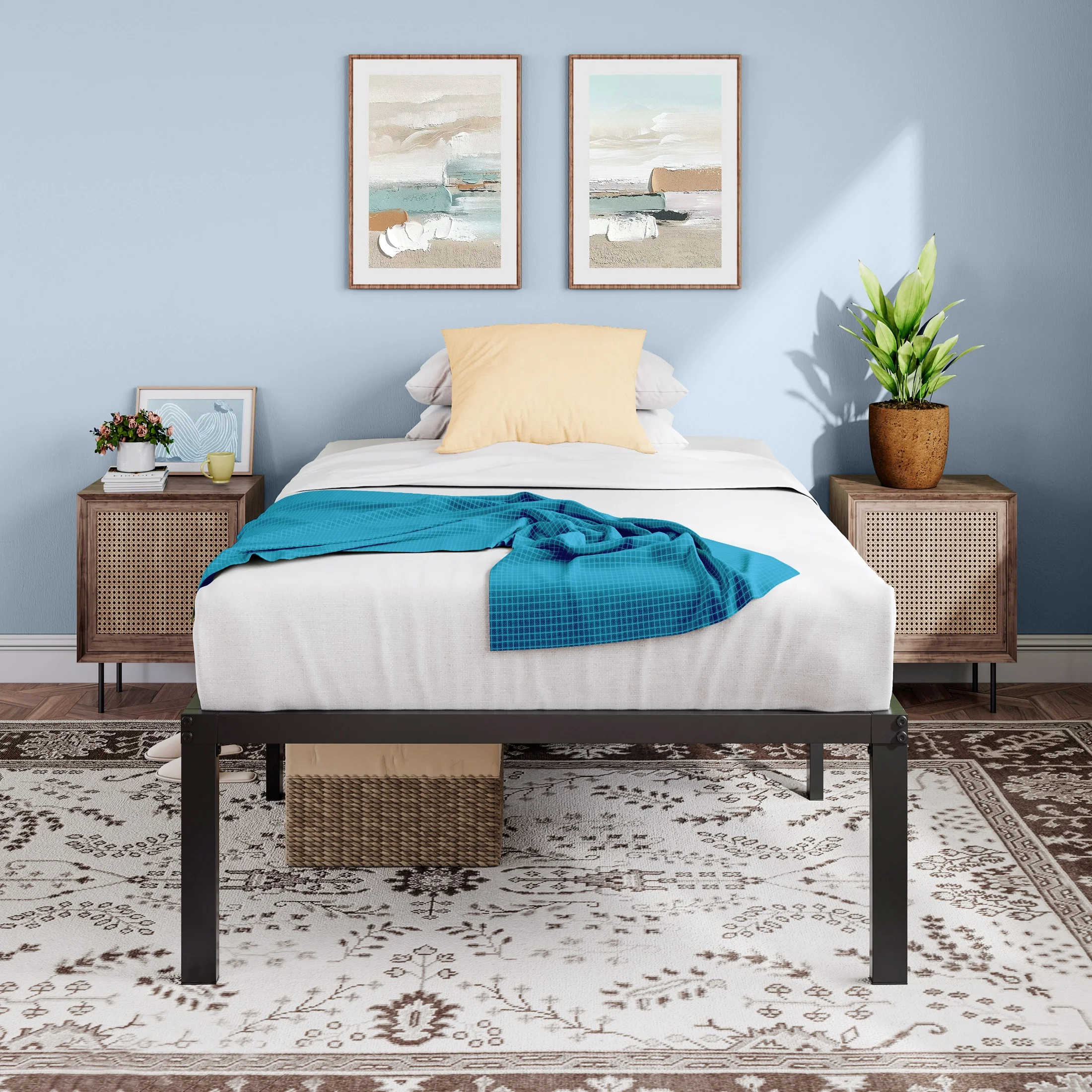 Allewie Black Twin Size 14 Inch Metal Platform Bed Frame, Non-Headboard, Mattress Foundation with Metal Slat Support