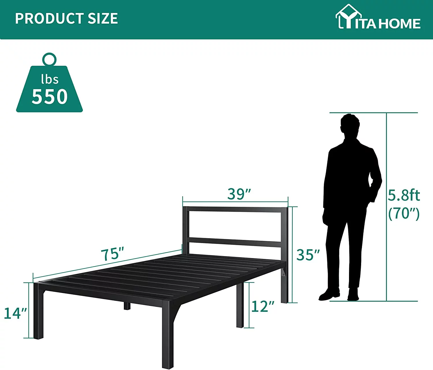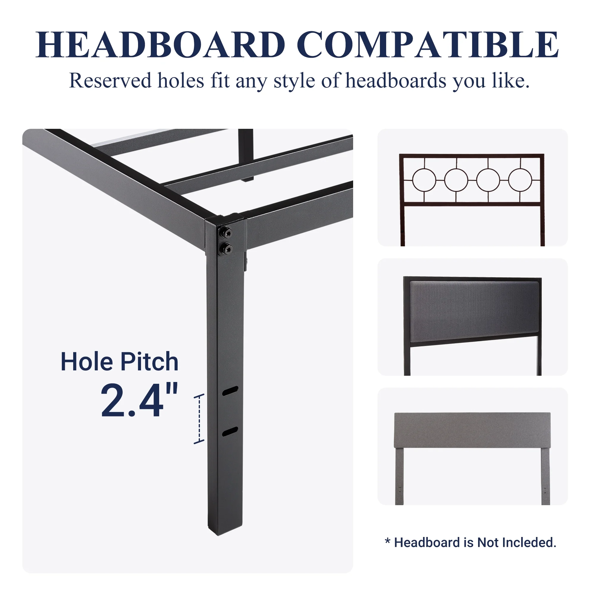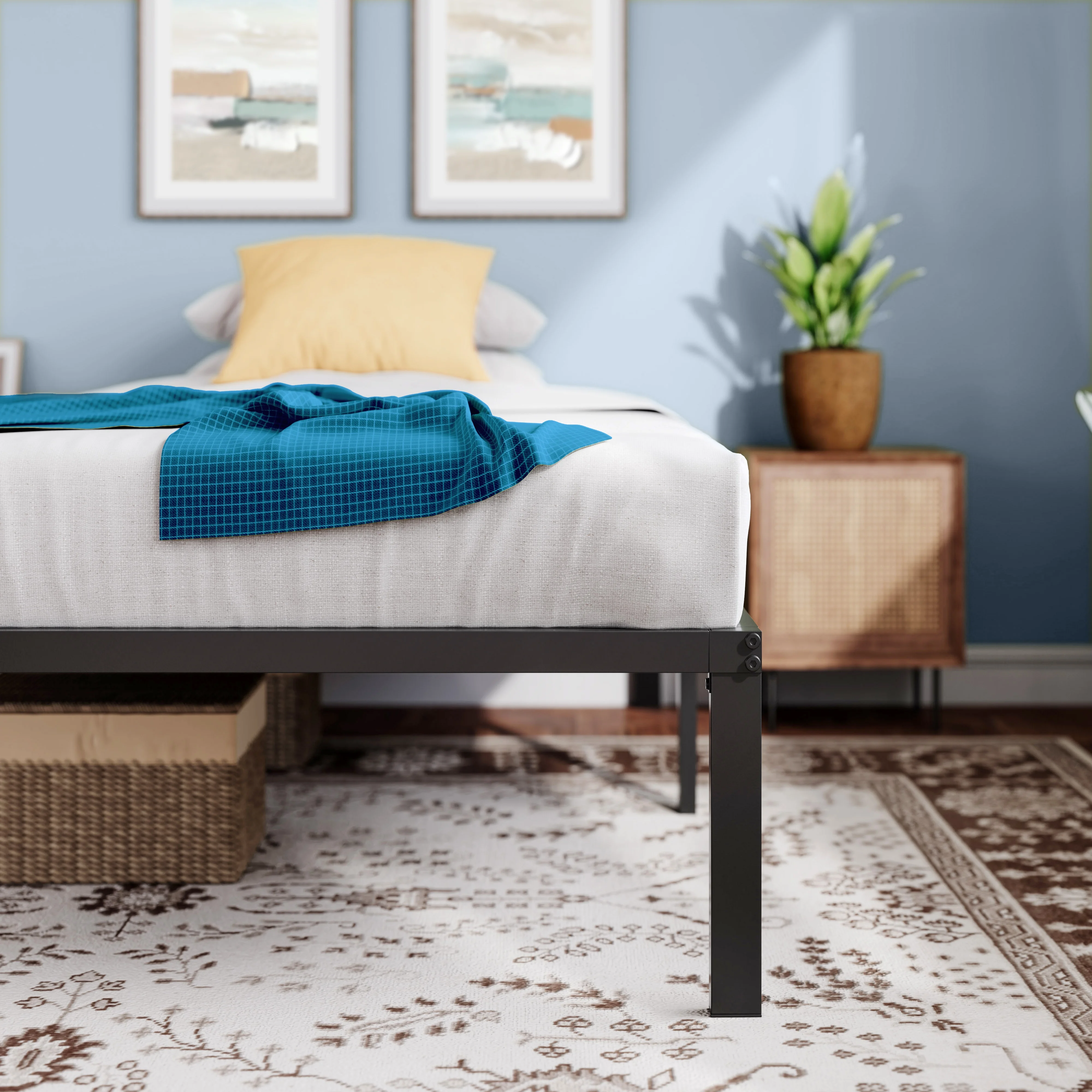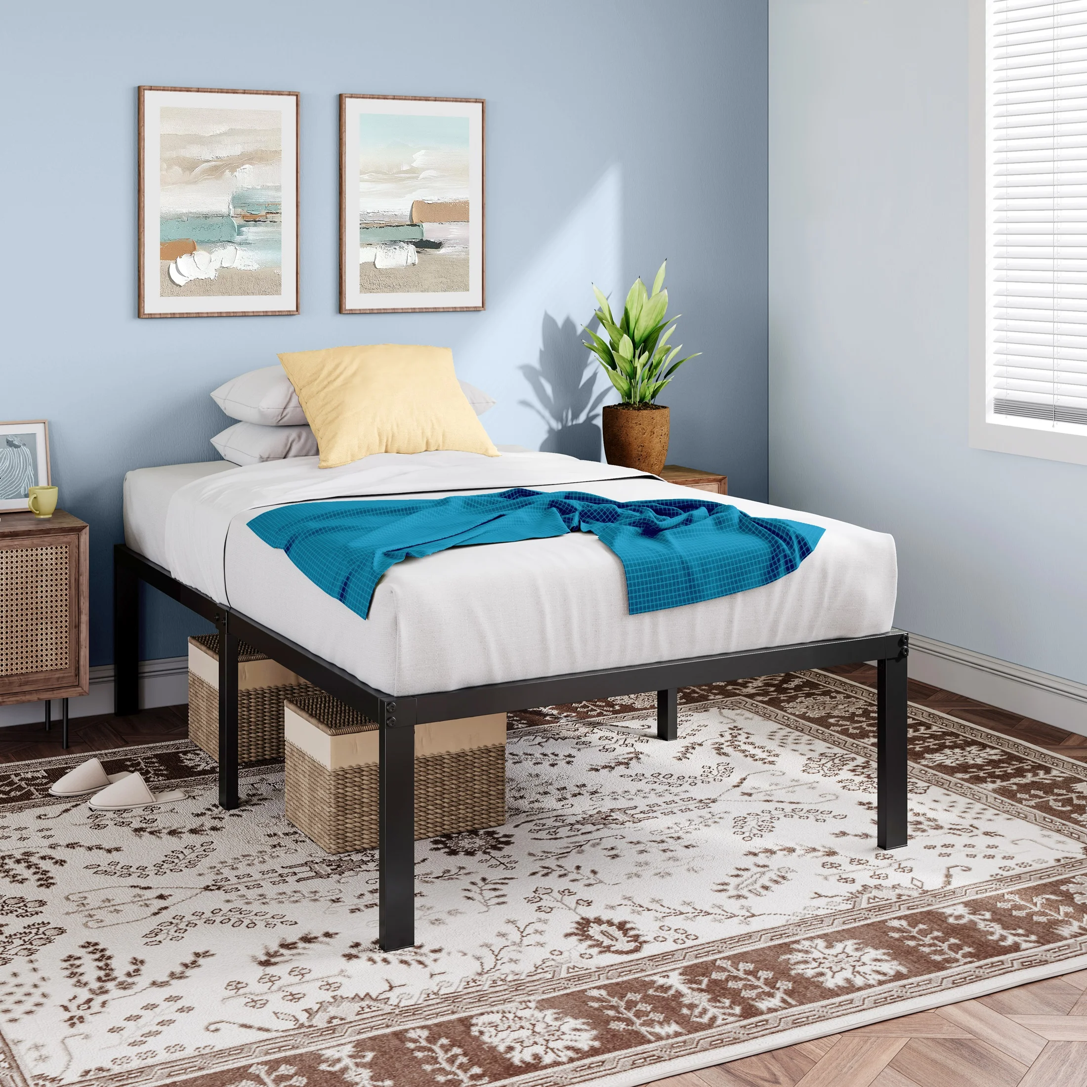 Allewie Black Twin Size 14 Inch Metal Platform Bed Frame, Non-Headboard, Mattress Foundation with Metal Slat Support