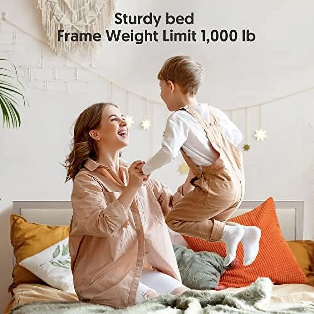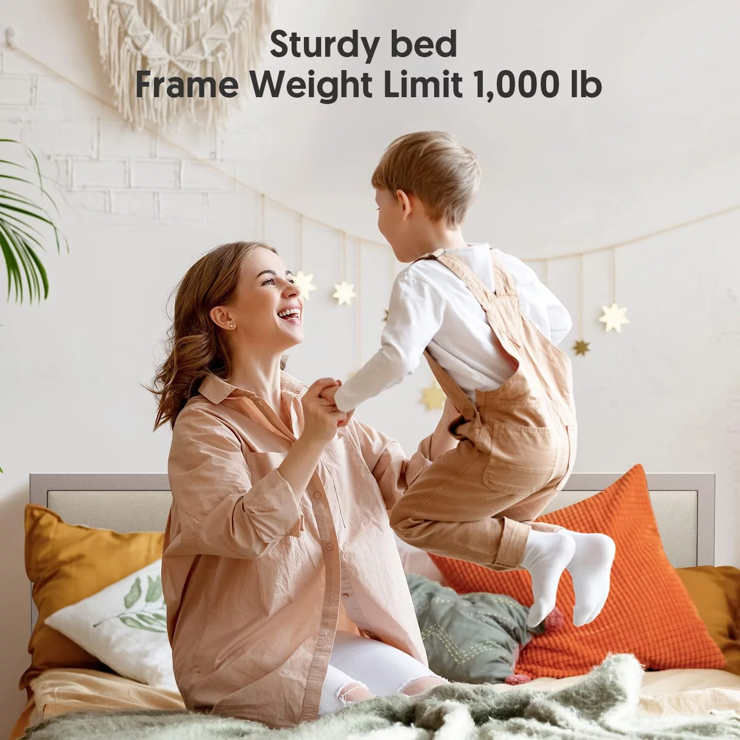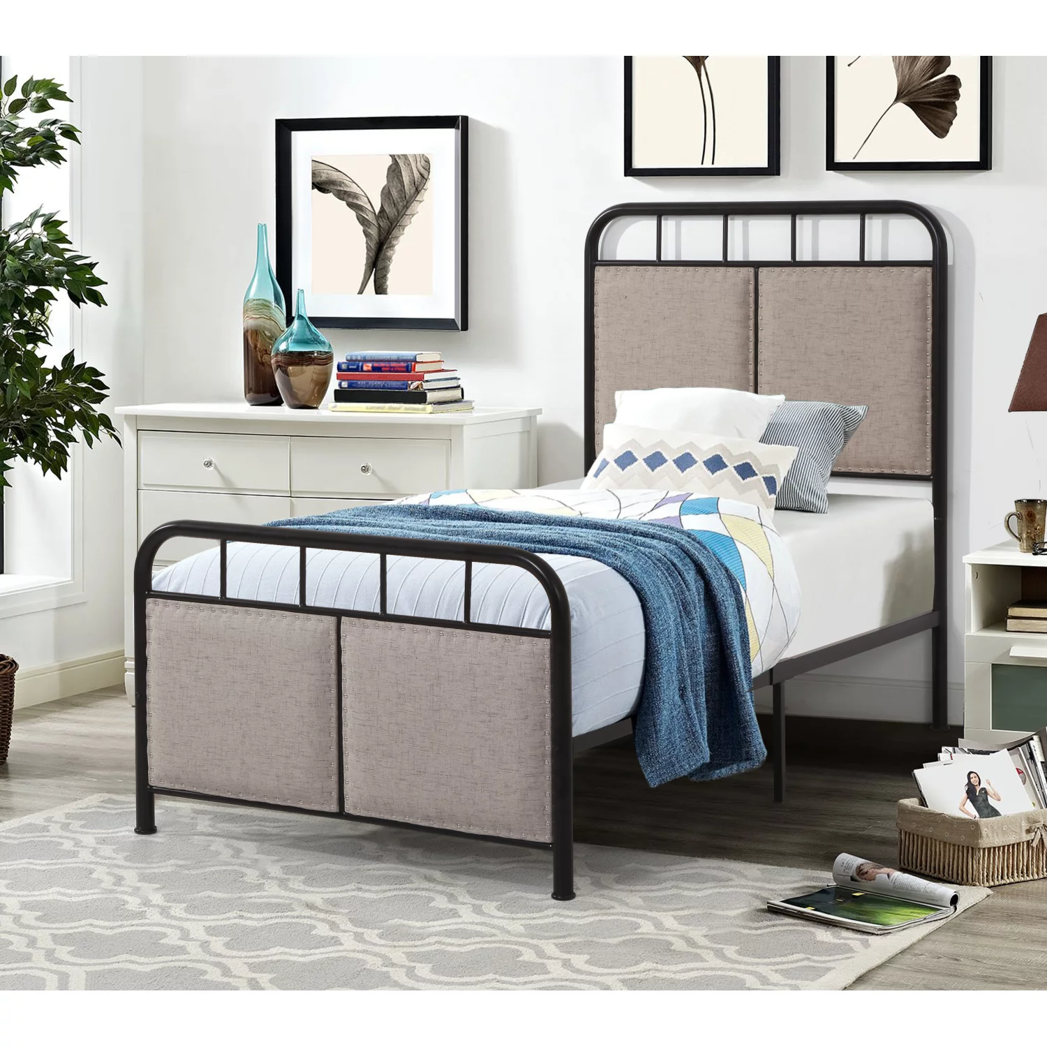 Twin Size Linen Upholstered Platform Metal Bed Frame with fabric Headboard and Footboard