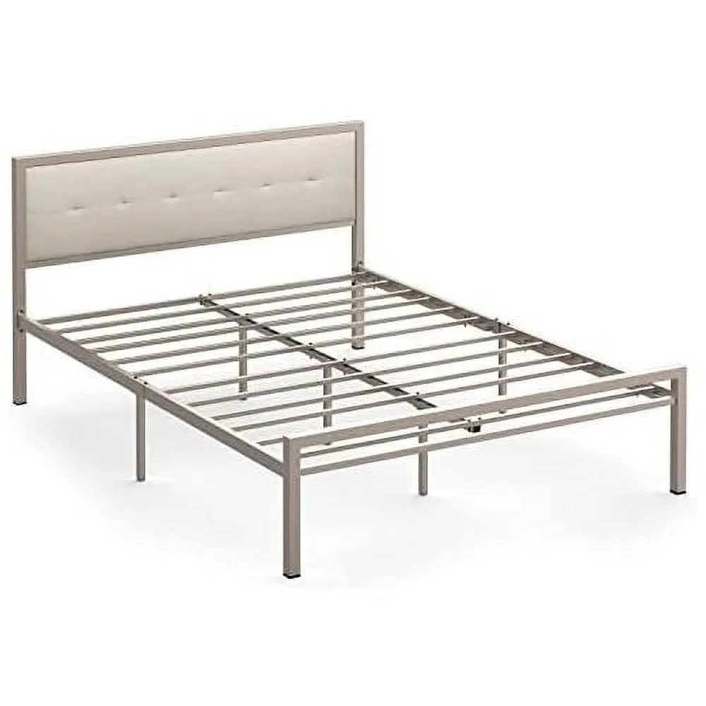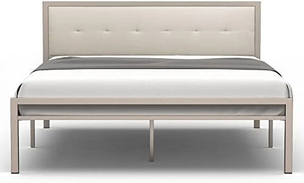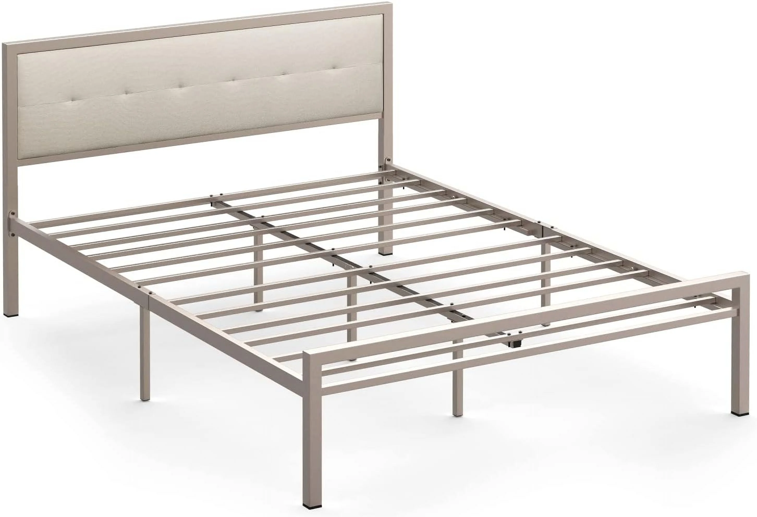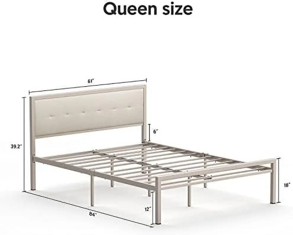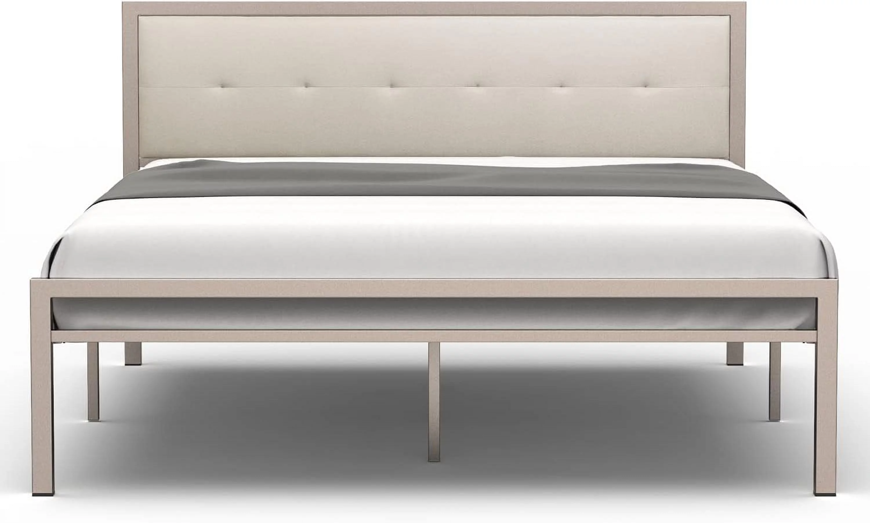 Queen Size Bed Frame Steady Steel Platform With Fabric Headboard/Footboard (Champagne Color Frame)