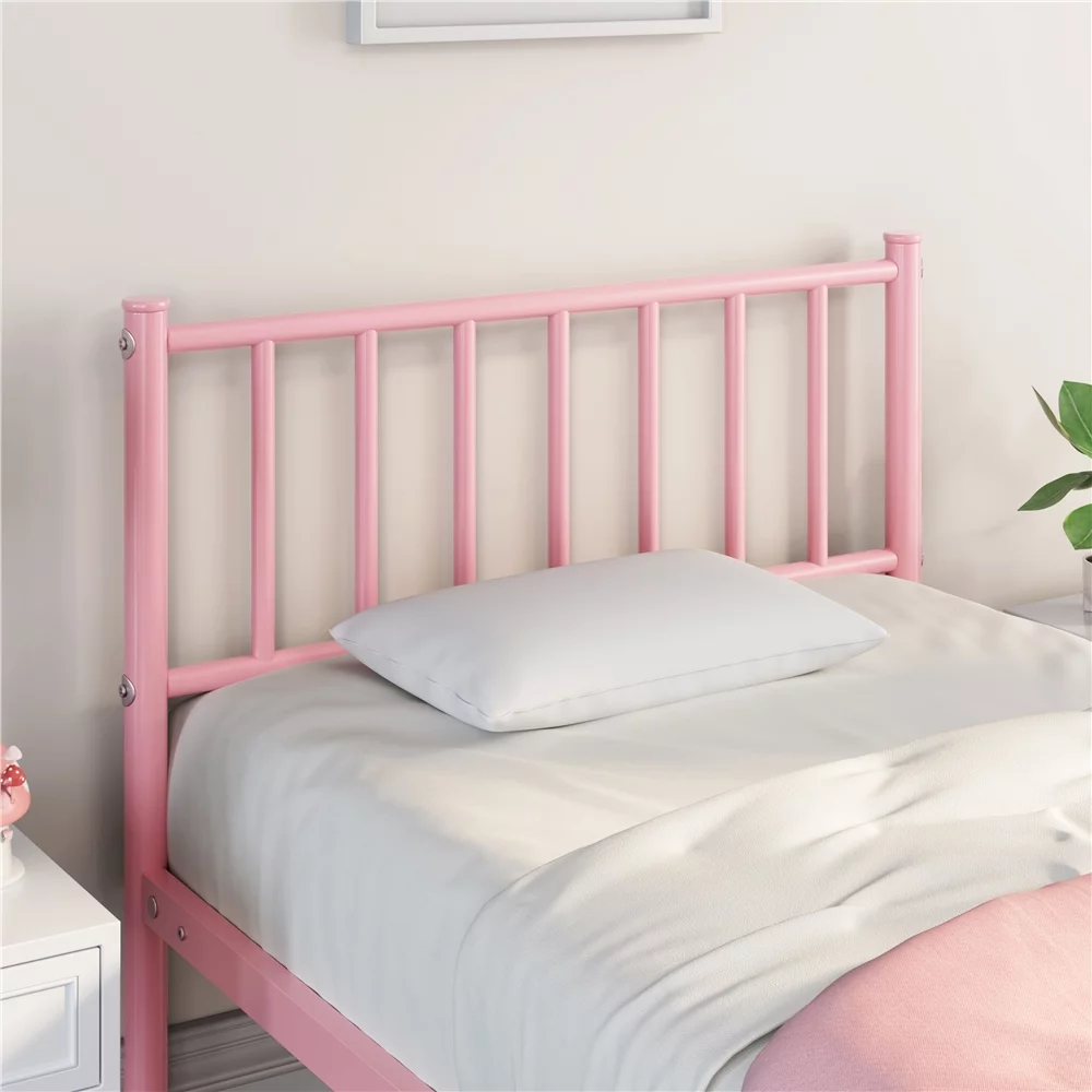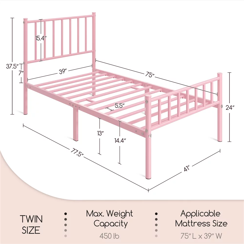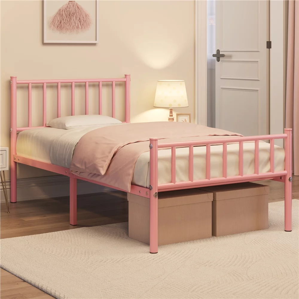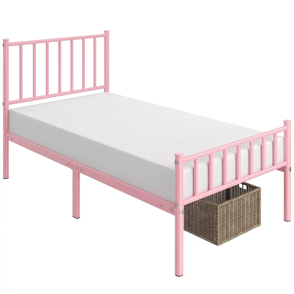 Easyfashion Justin Metal Platform Bed with Spindle Headboard and Footboard, Twin, Pink