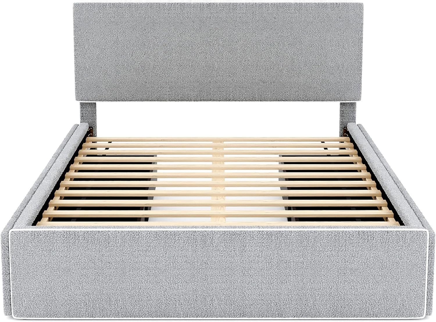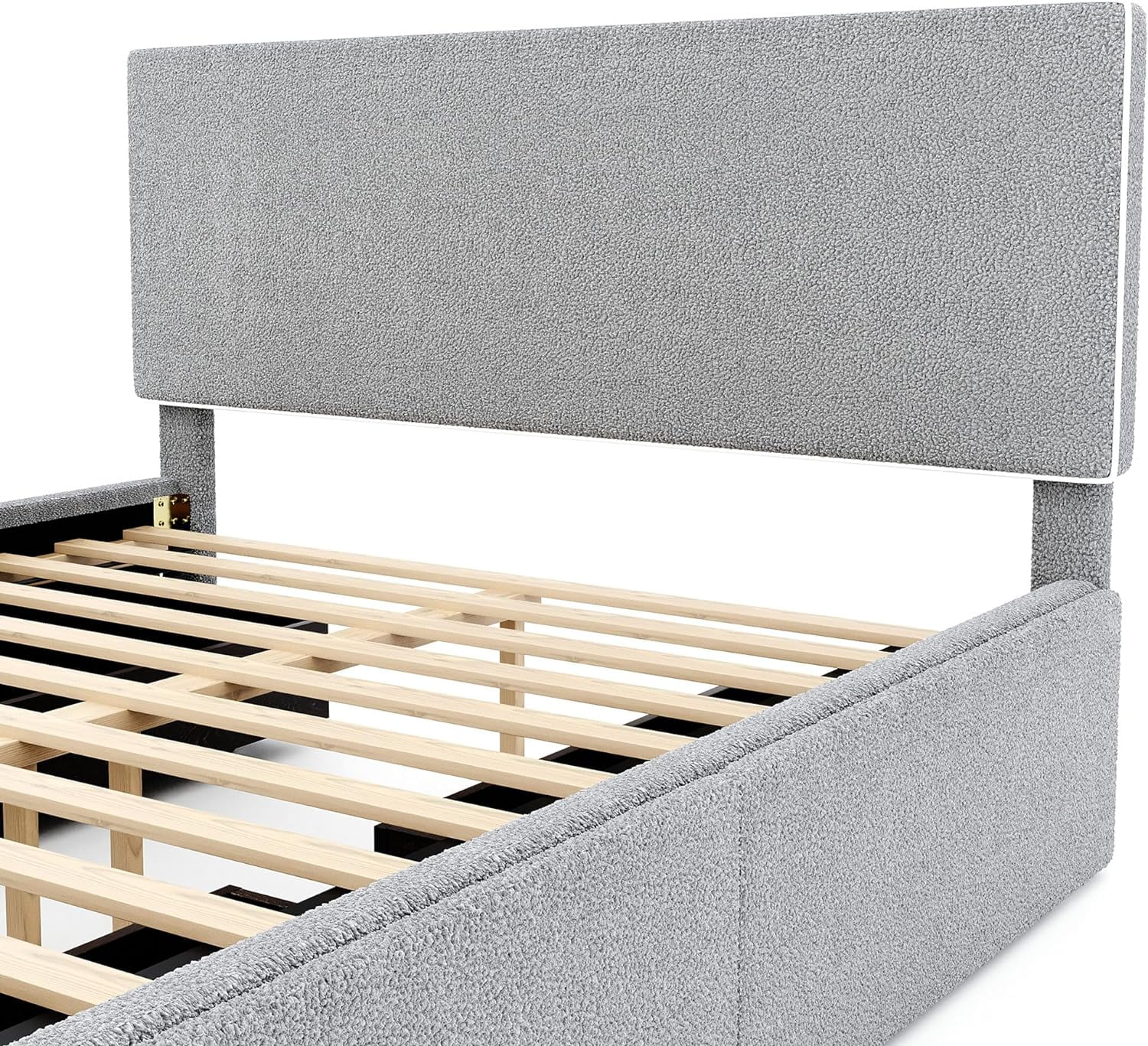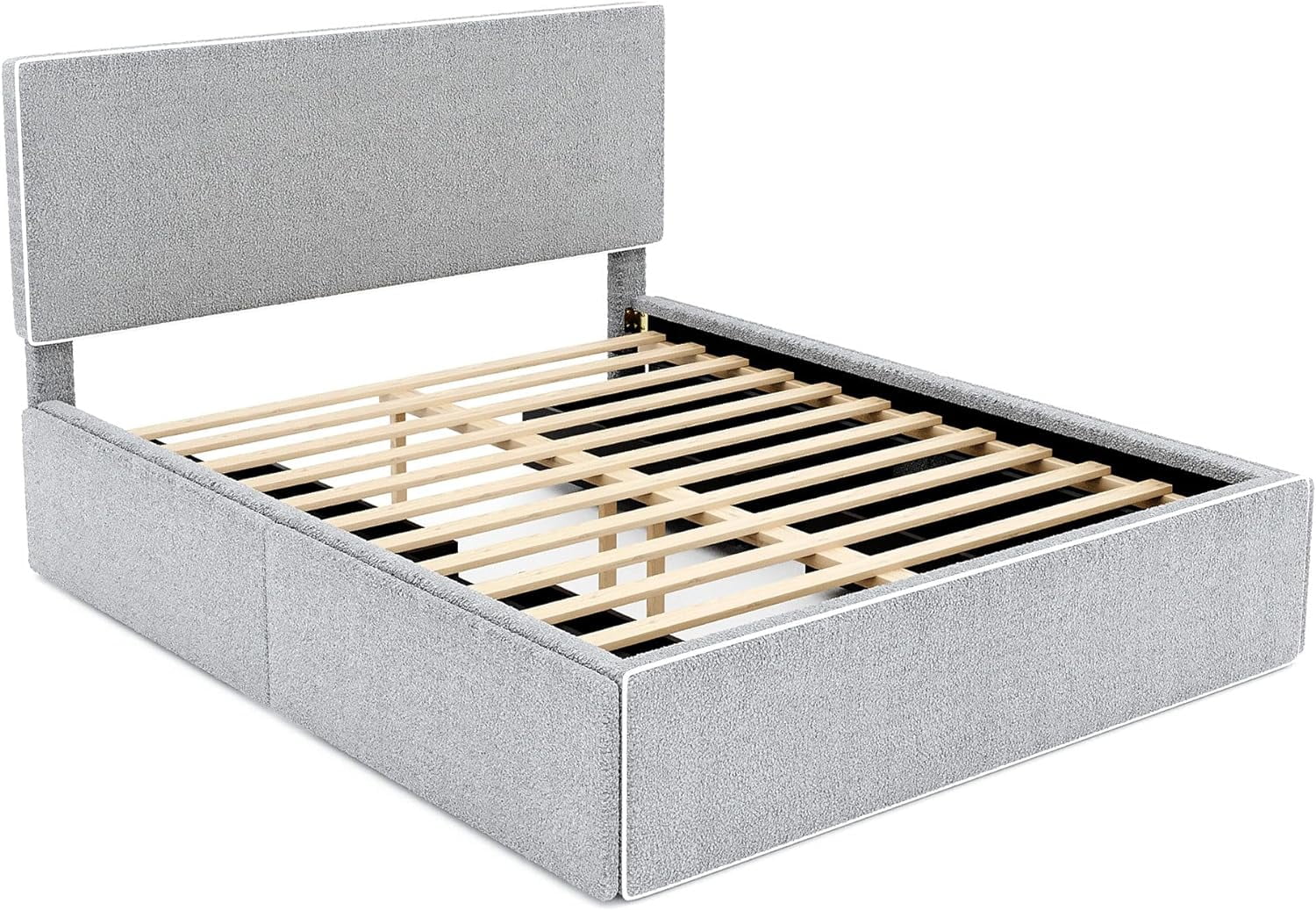 Andoer Queen Size Upholstered Platform Bed with Headboard and Footboard,No Box Spring Needed, Fabric,Gray