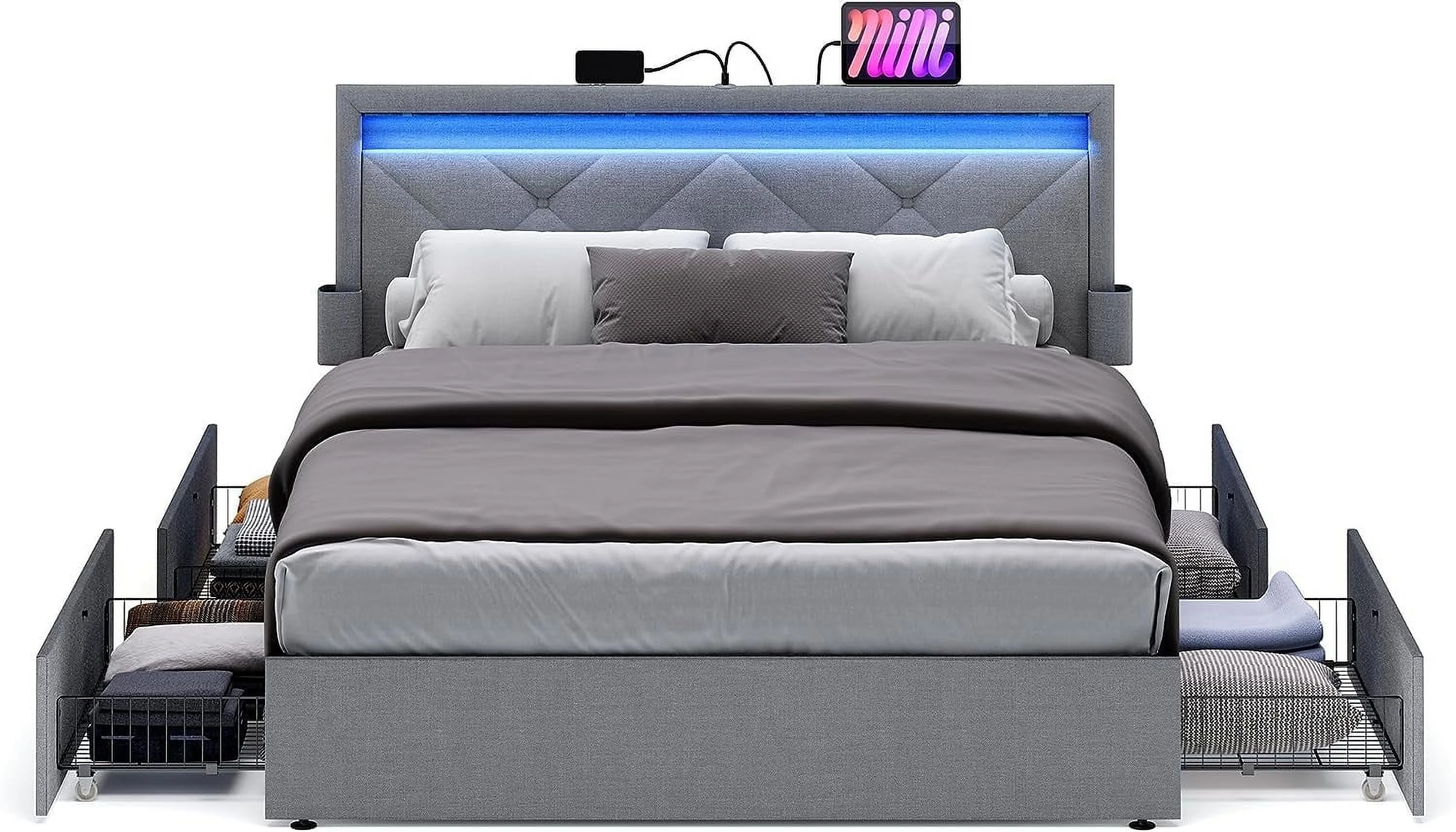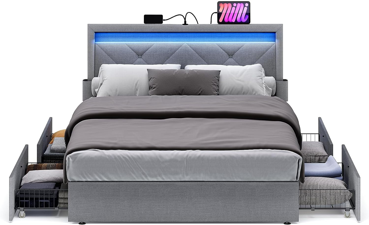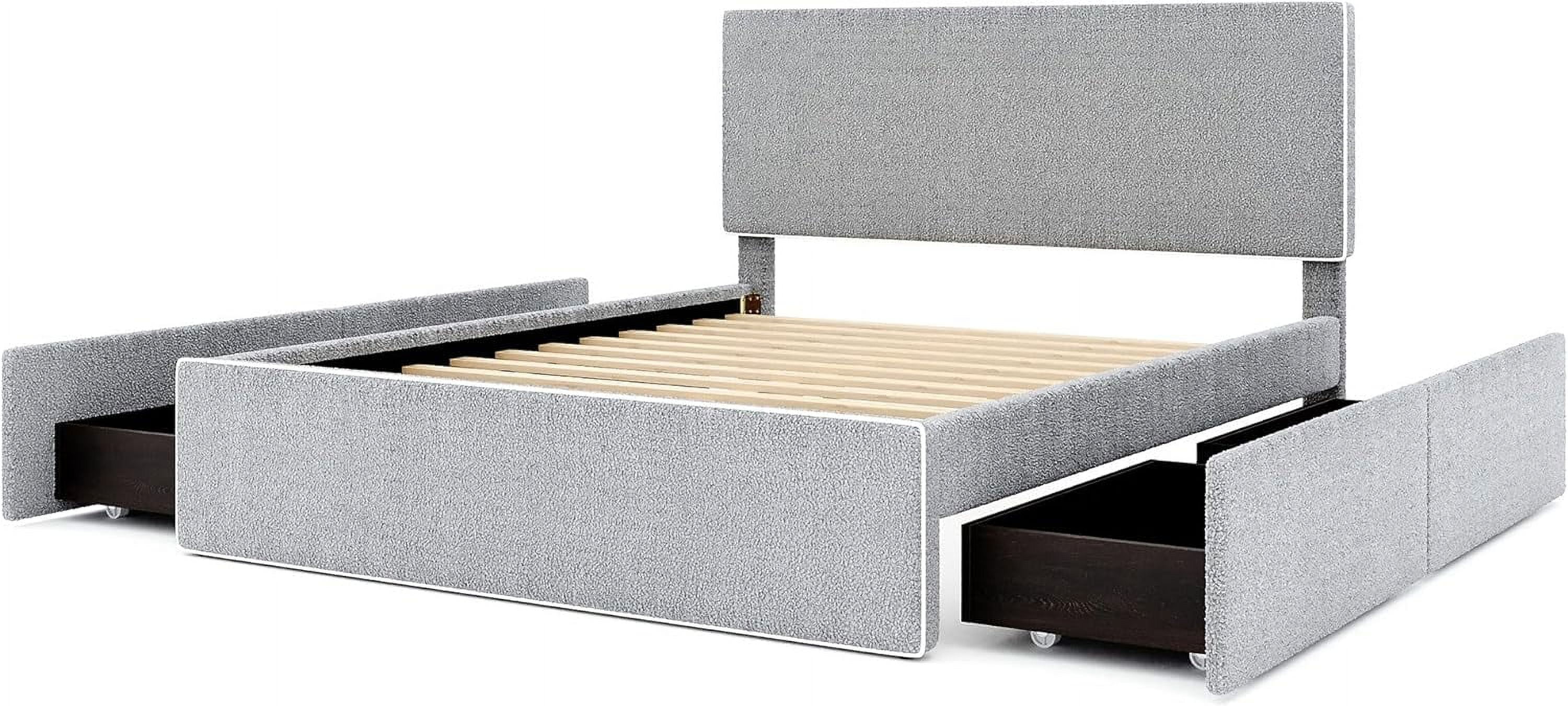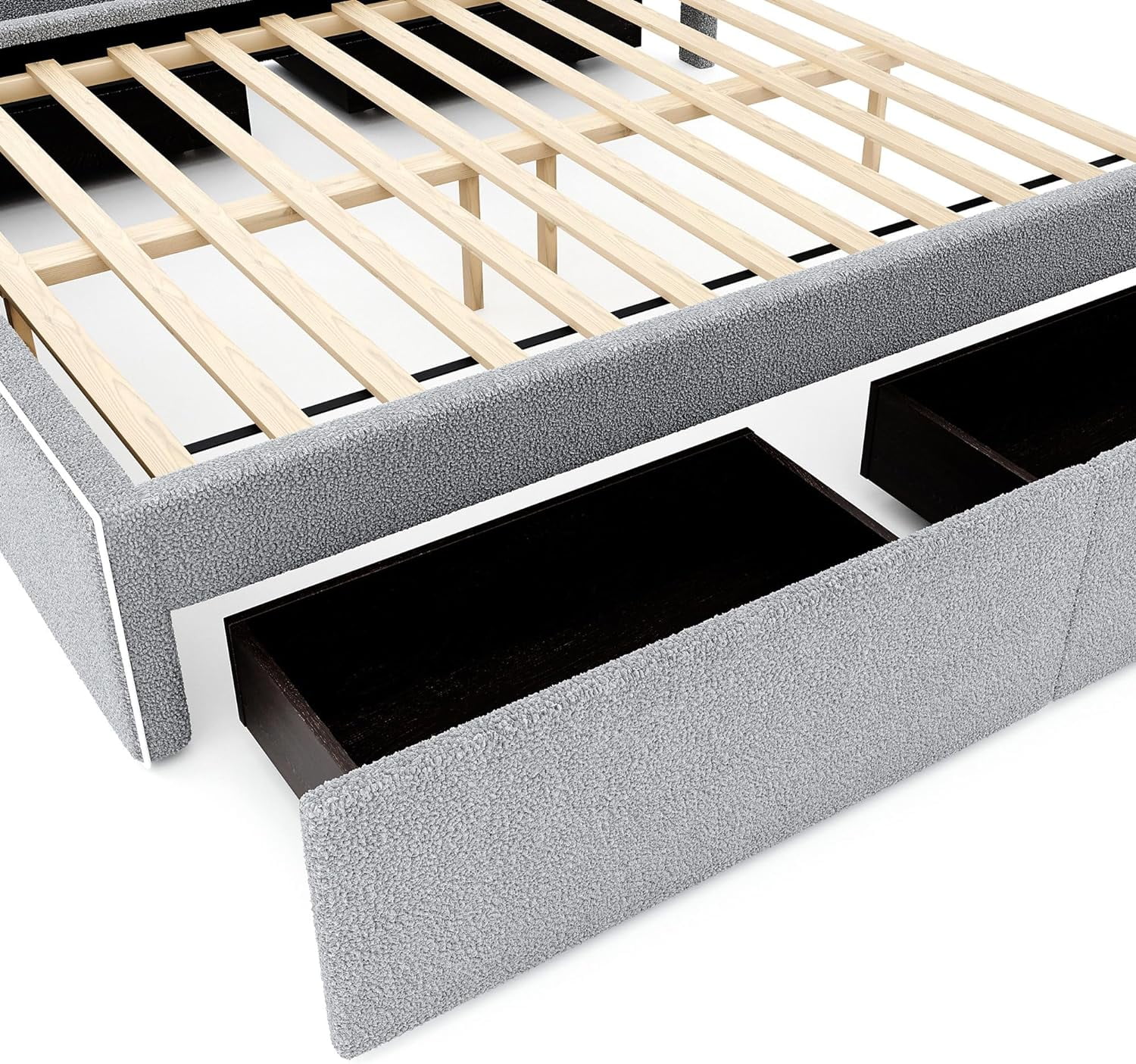 Andoer Queen Size Upholstered Platform Bed with Headboard and Footboard,No Box Spring Needed, Fabric,Gray