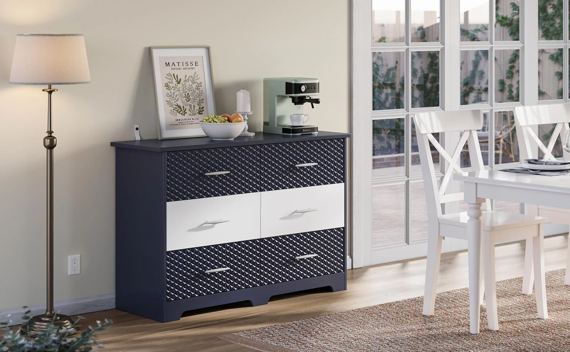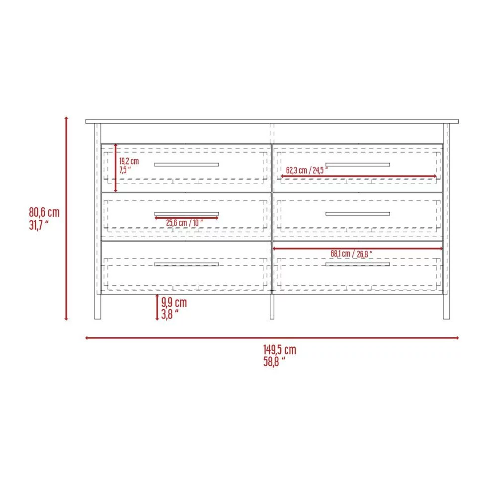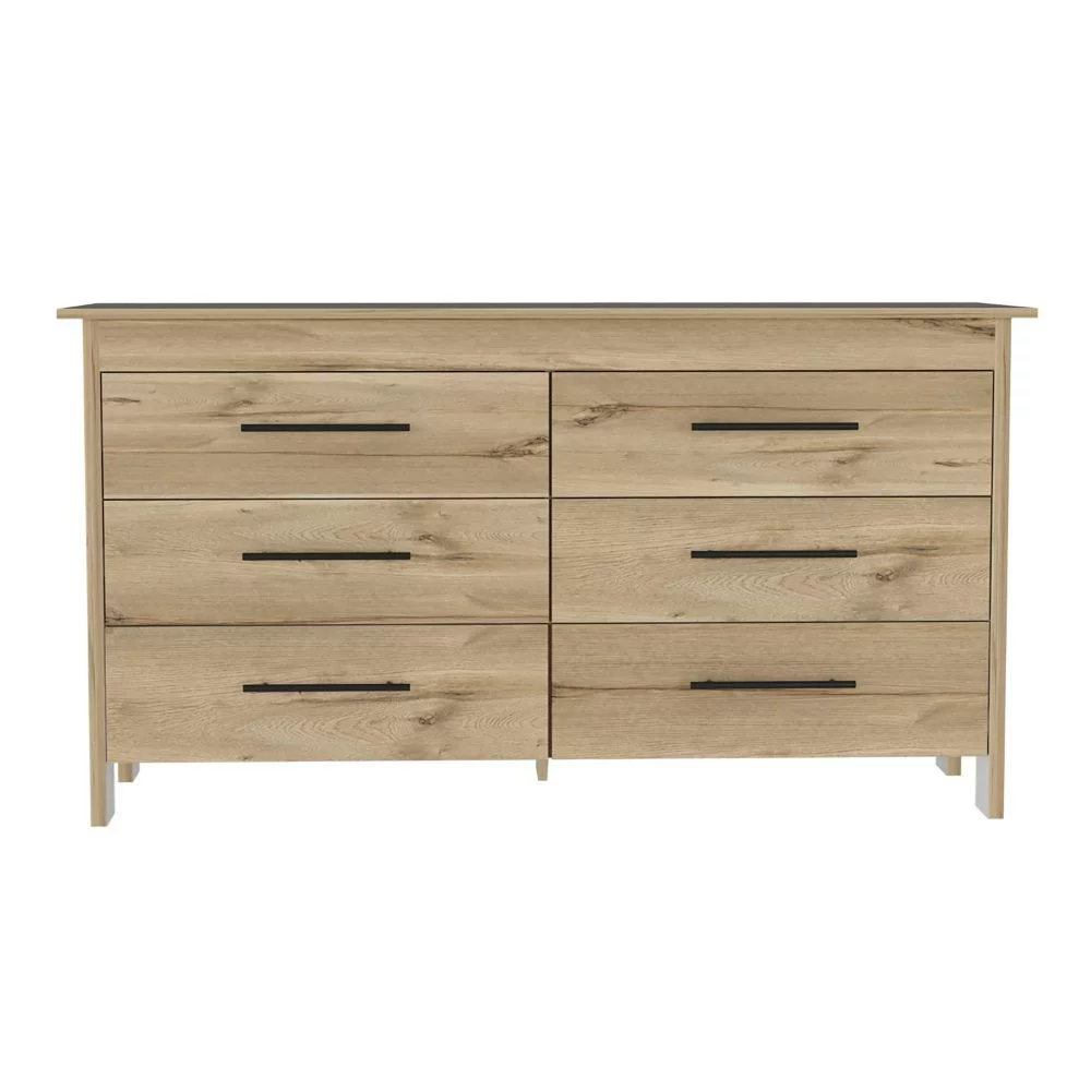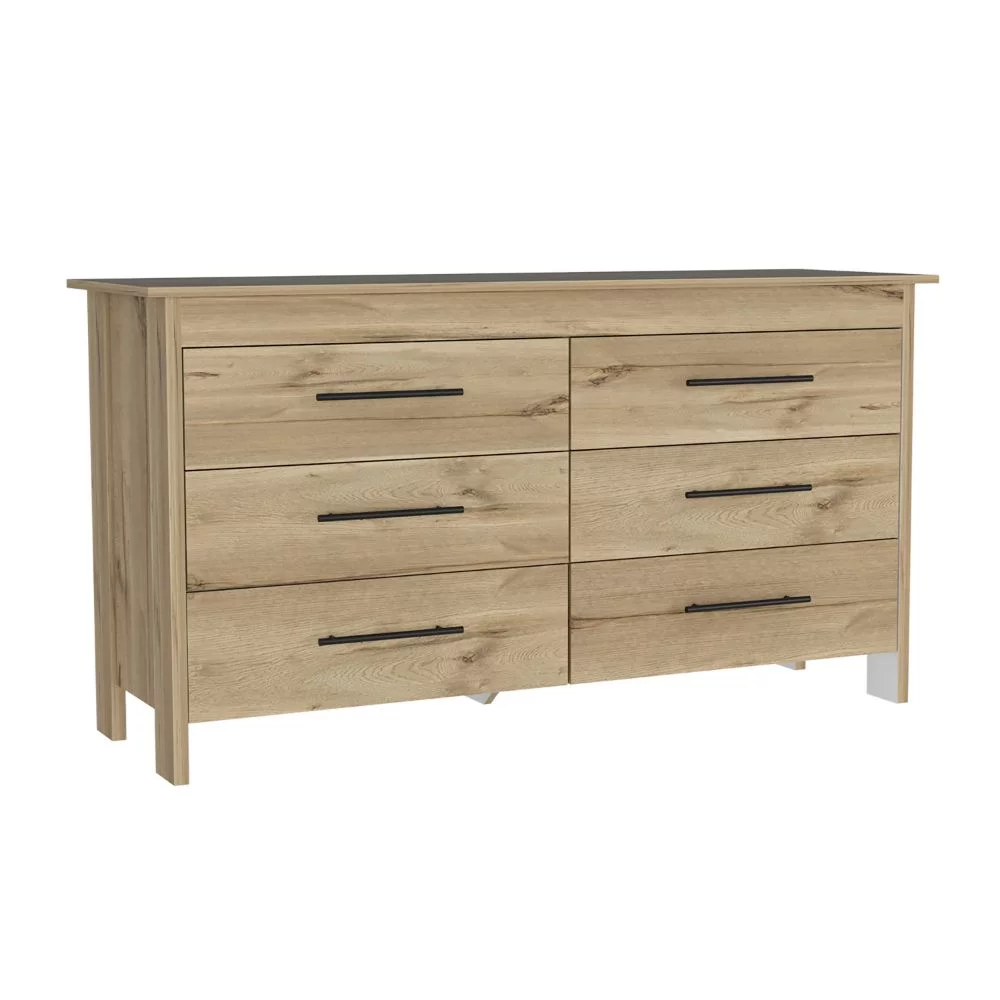 Treevol Furniture, 6 Drawer Double Dresser Wezz, Four Legs, Superior Top, Light Oak / White Finish