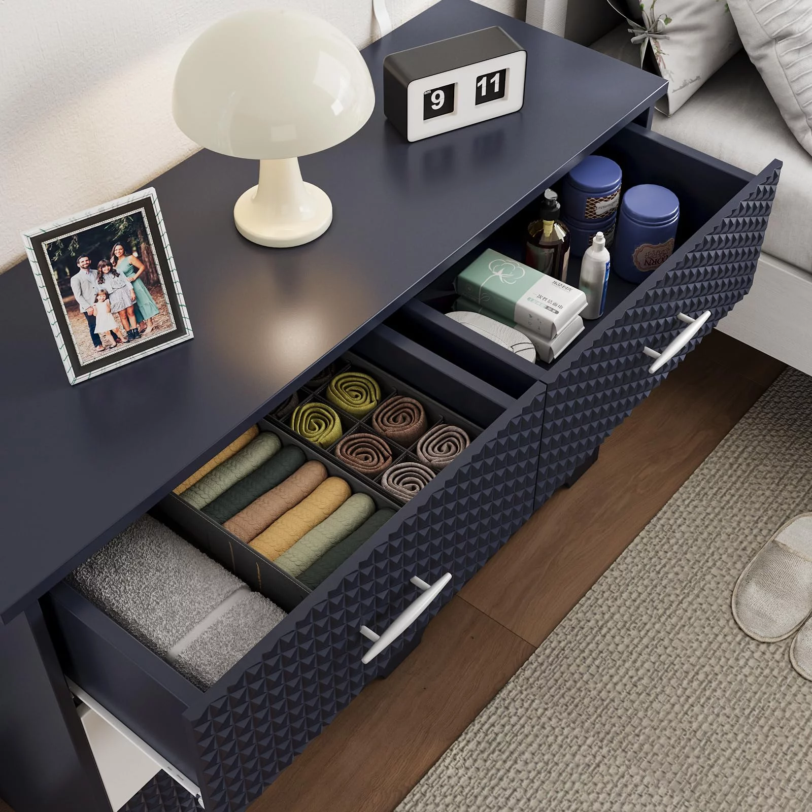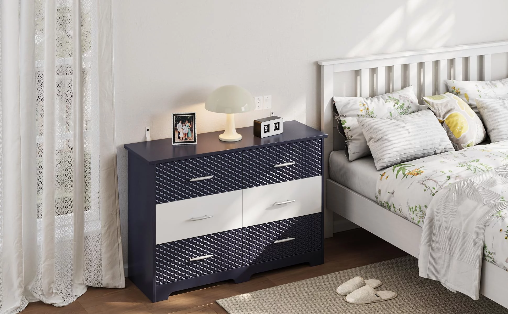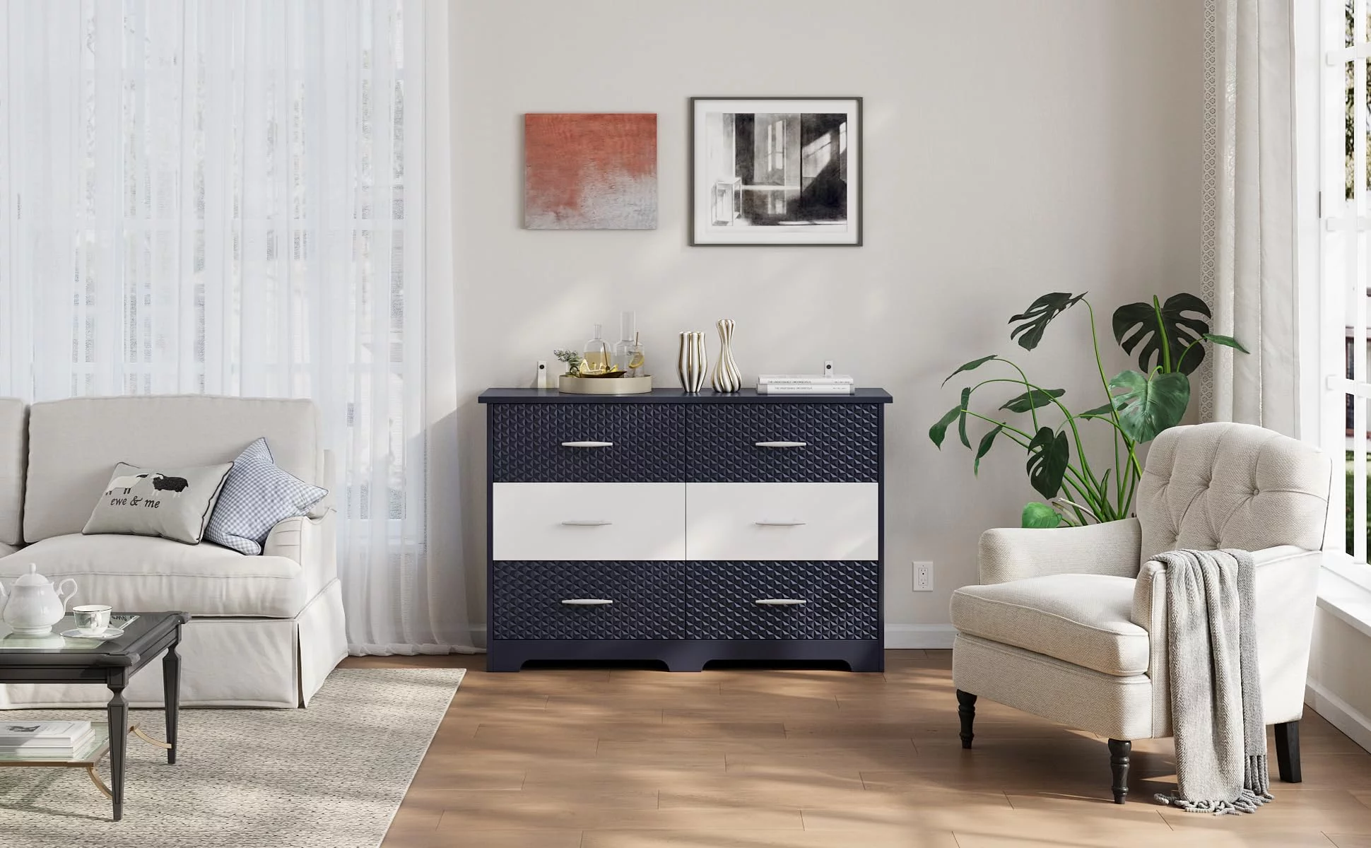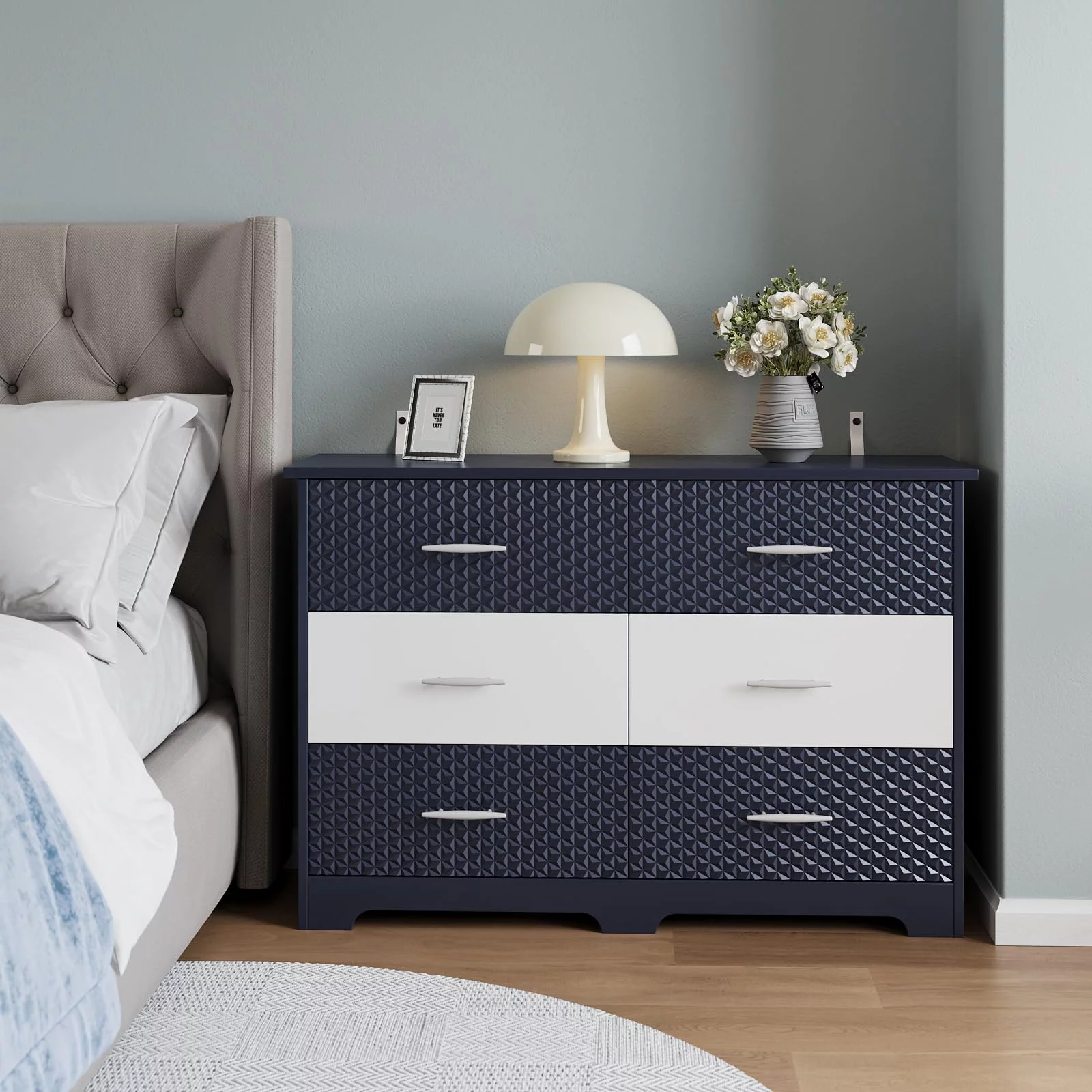 Treevol Furniture, 6 Drawer Double Dresser Wezz, Four Legs, Superior Top, Light Oak / White Finish