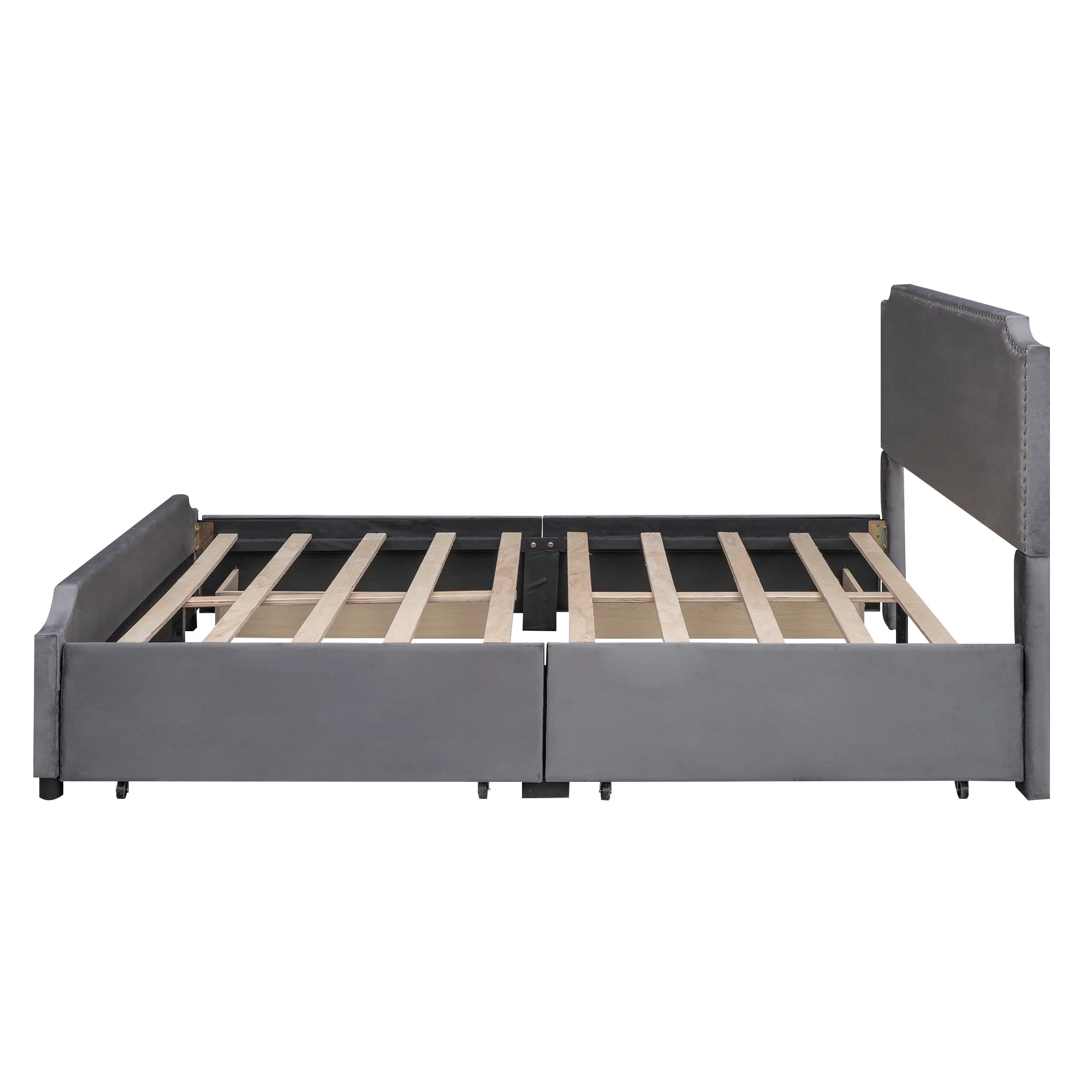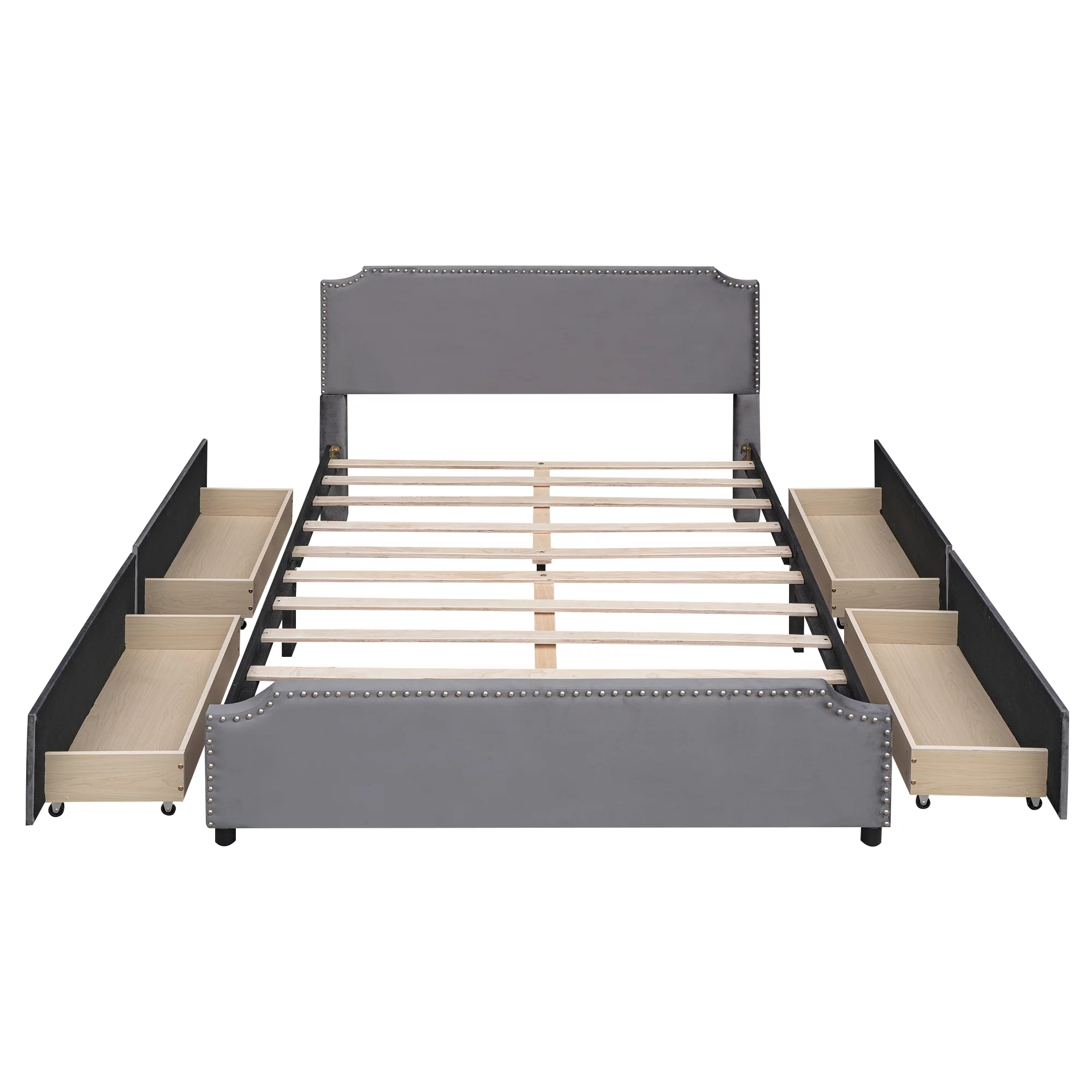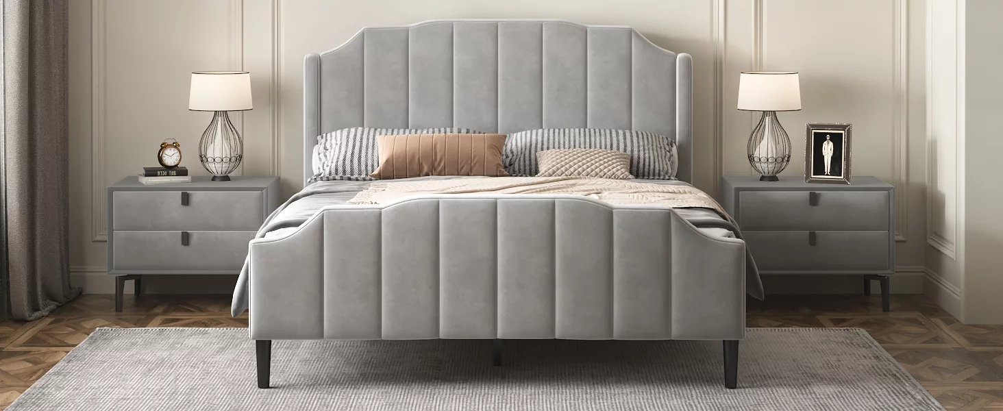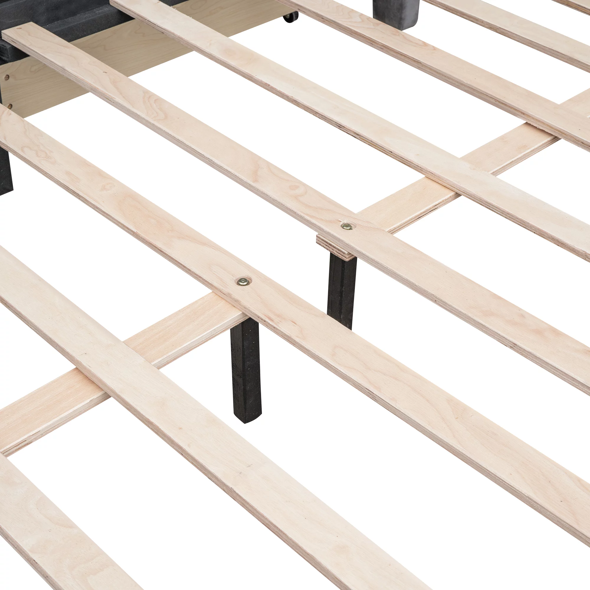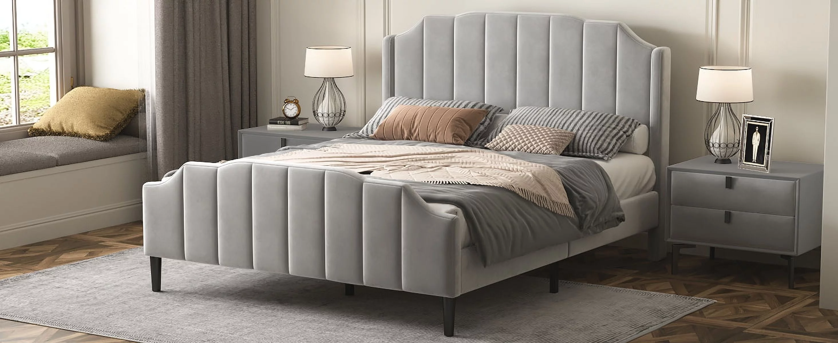 Queen Size Upholstered Platform Bed With Velvet Fabric Headboard And Footboard,No Box Spring Needed,Gray