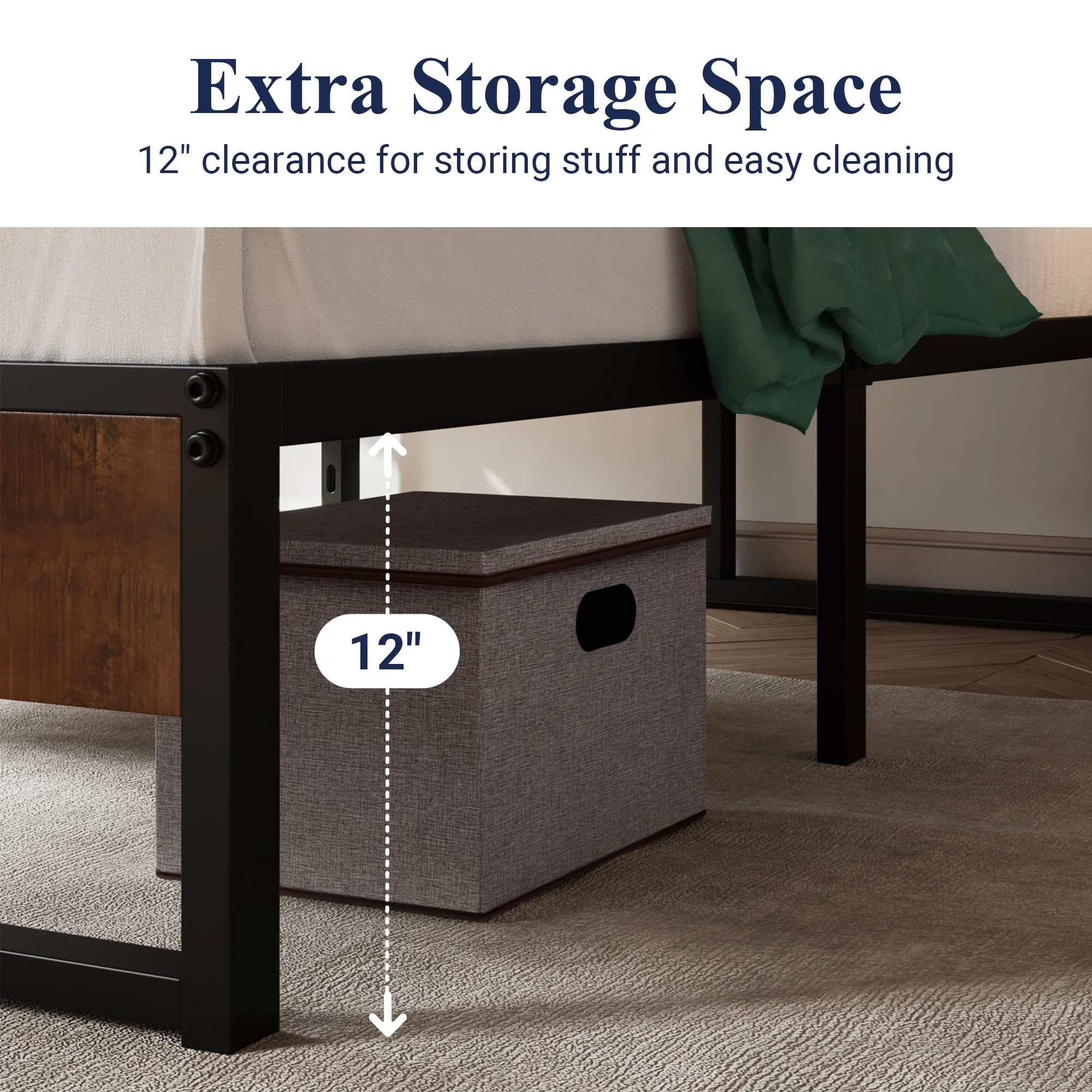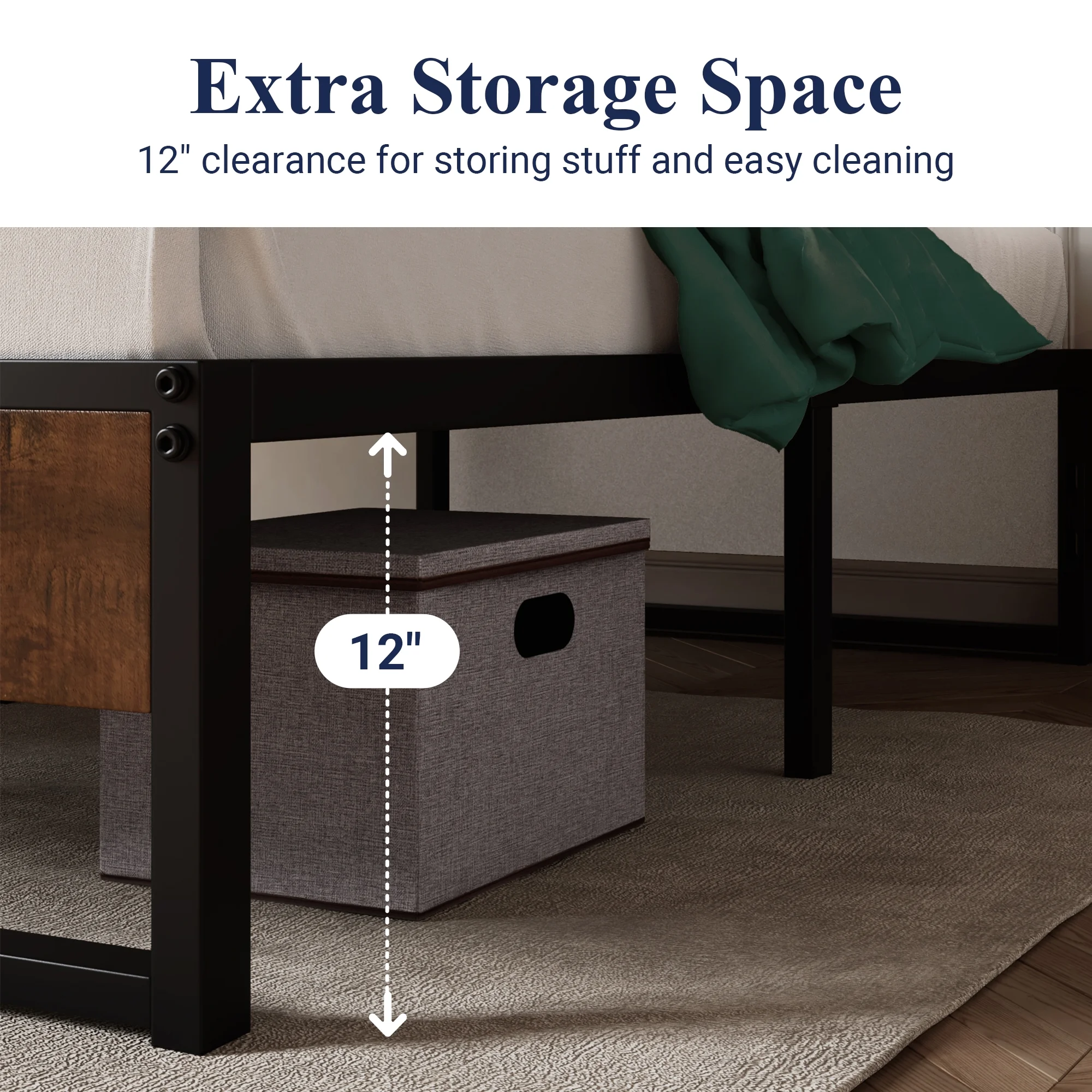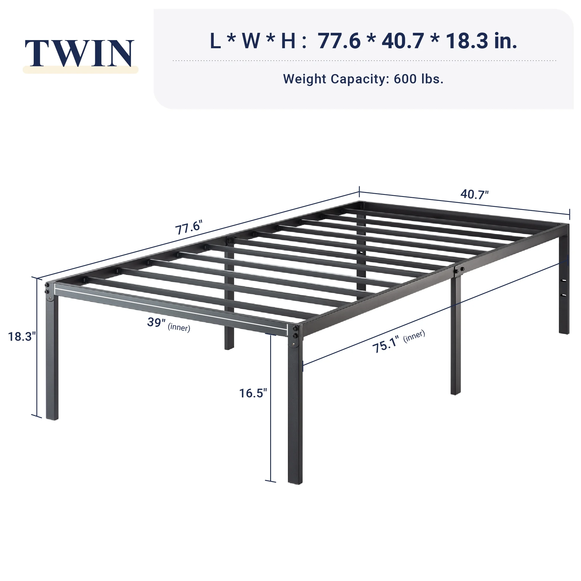 Allewie Heavy Duty Twin Size Metal Platform Bed Frame with 18.3" Large Under Bed Storage Space, Black