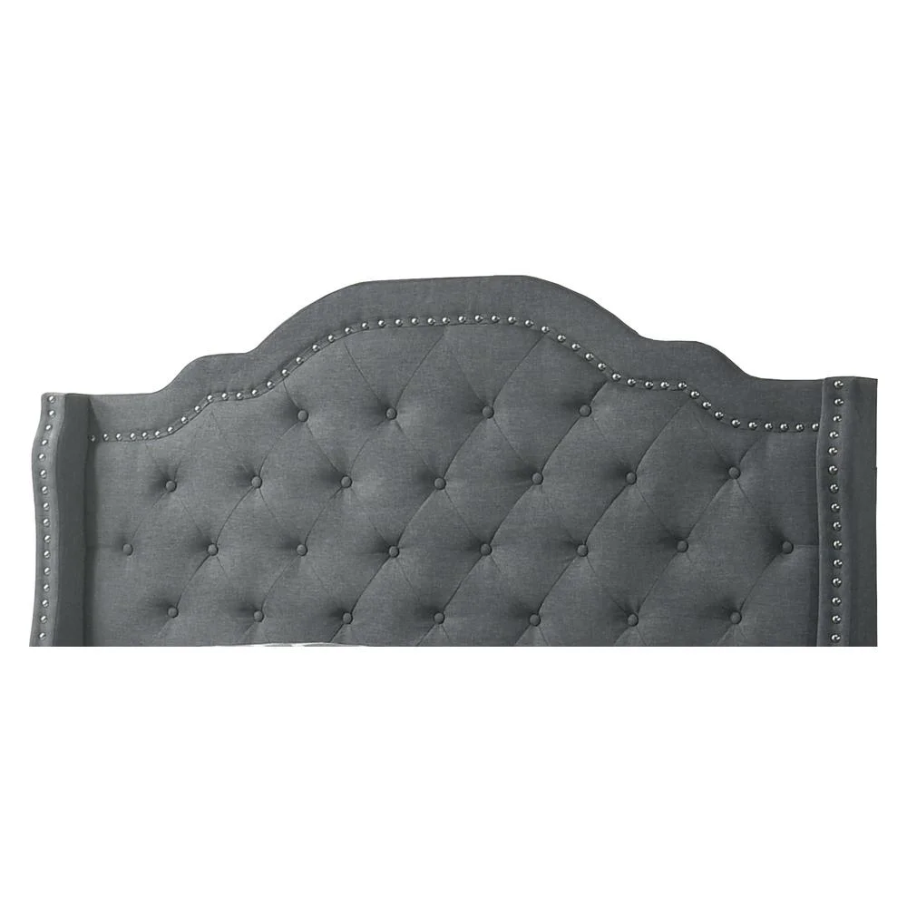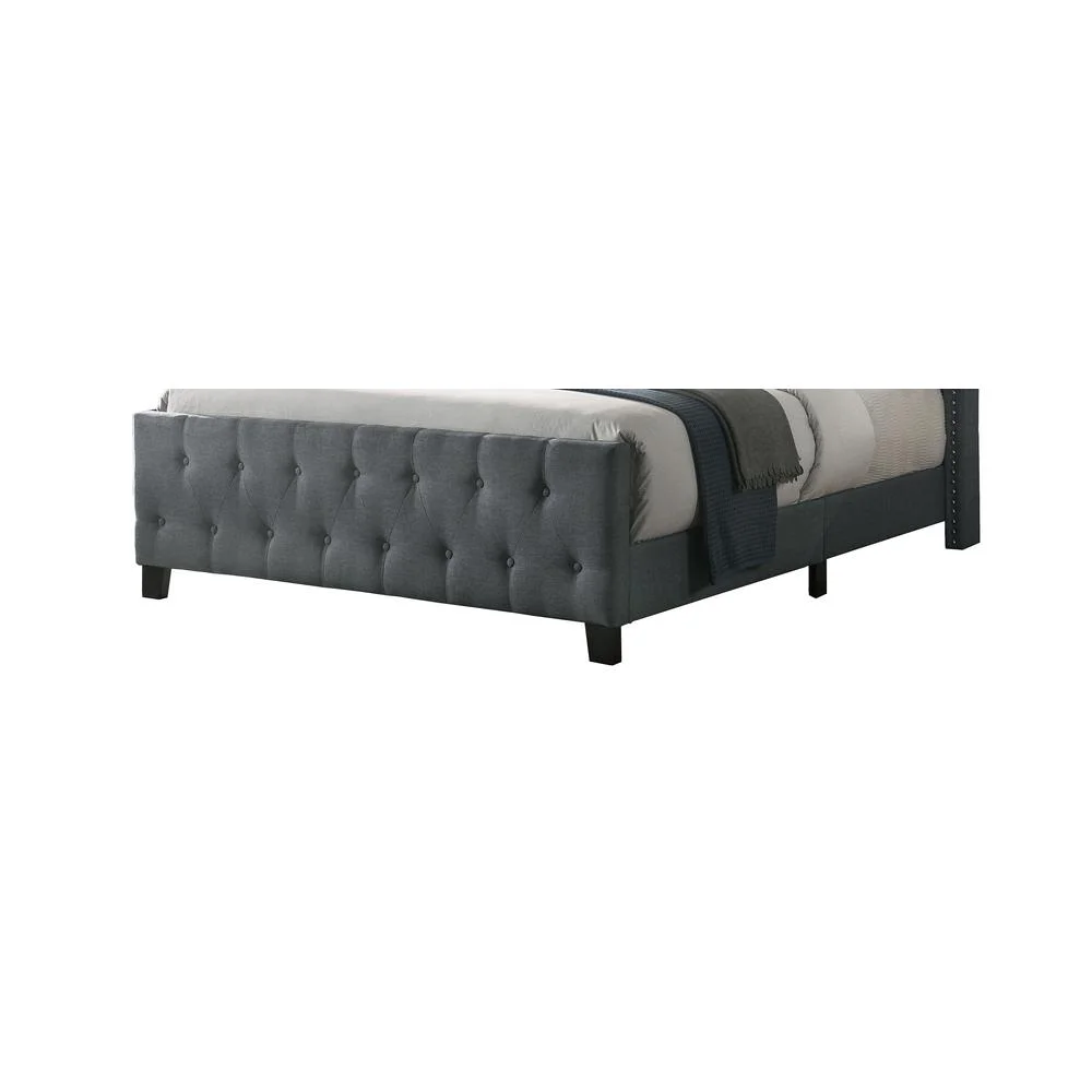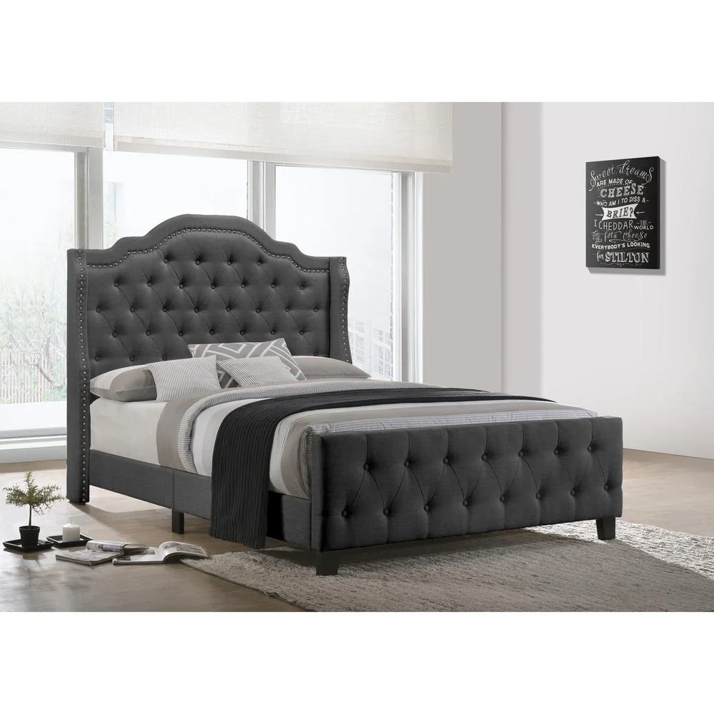 Dark Gray Linen Fabric Panel Bed with Tufted Headboard and Footboard in Full