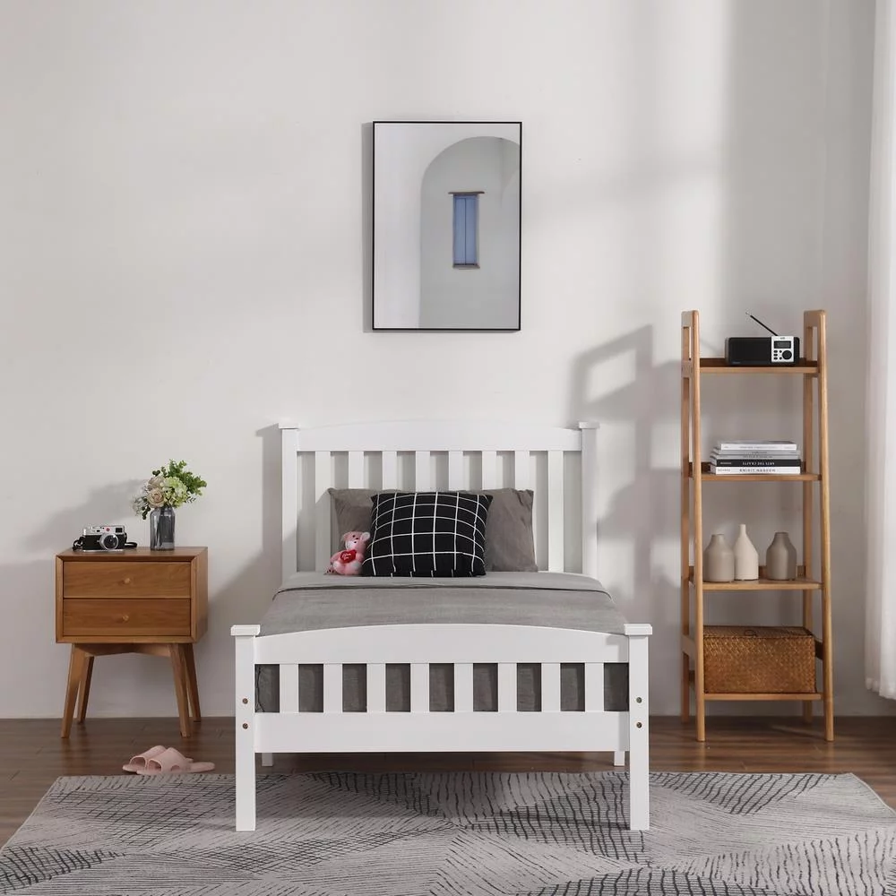 AFI Tahoe 14" Twin Wood Platform Bed with Slatted Headboard and Footboard, White