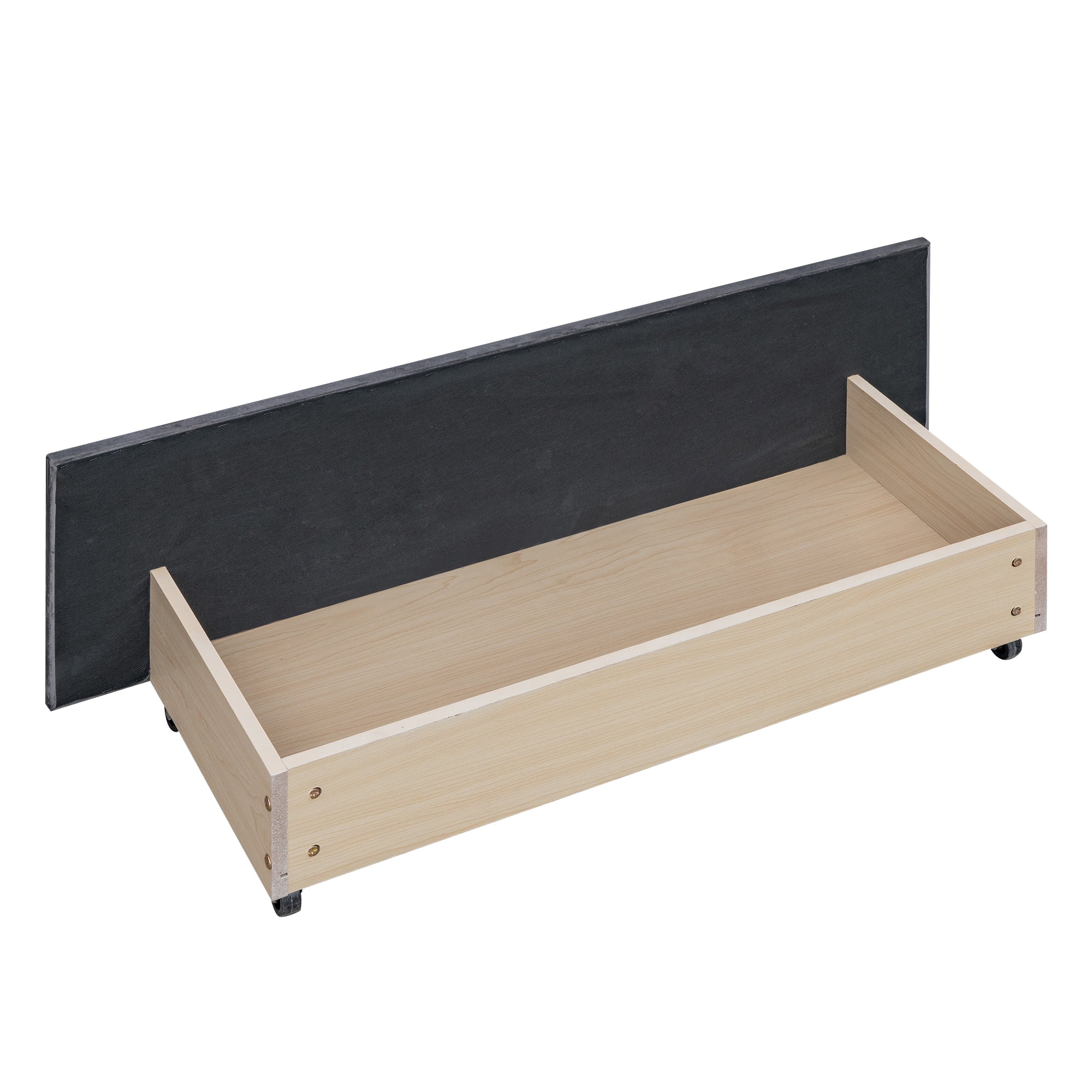 Light Gray Burlap Fabric Tufted Headboard Storage Footboard Full Size Bed 1pc Bedroom Furniture Particle Board