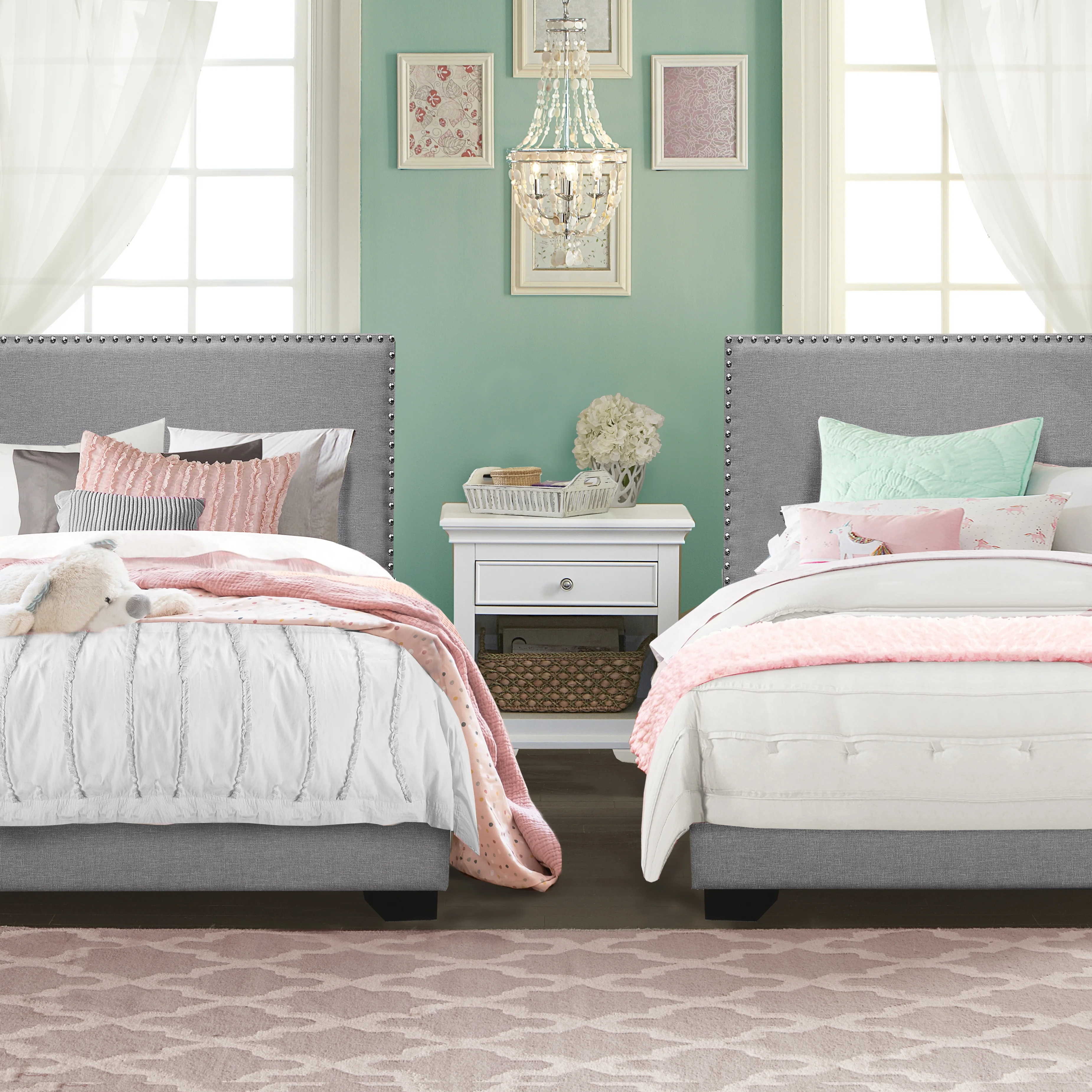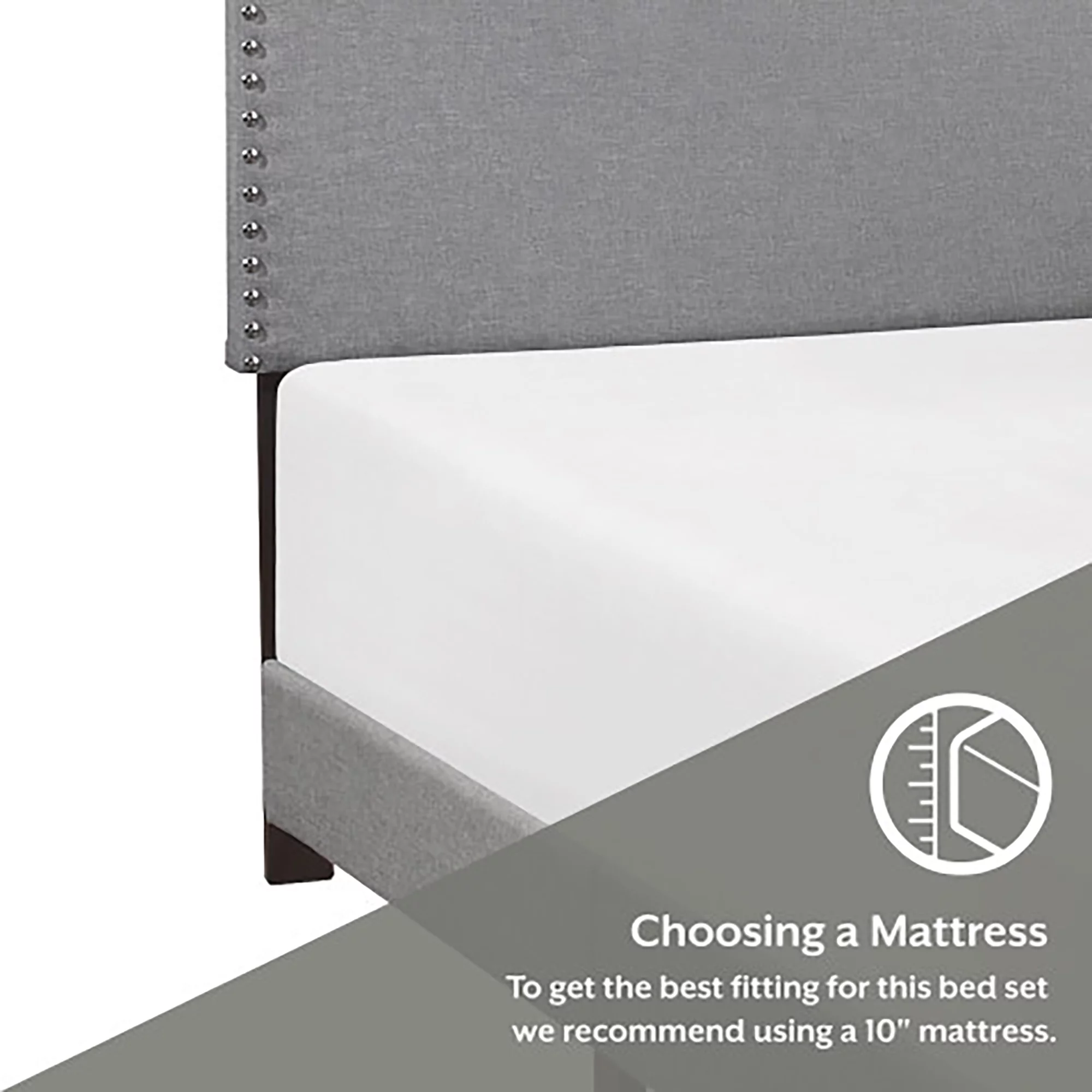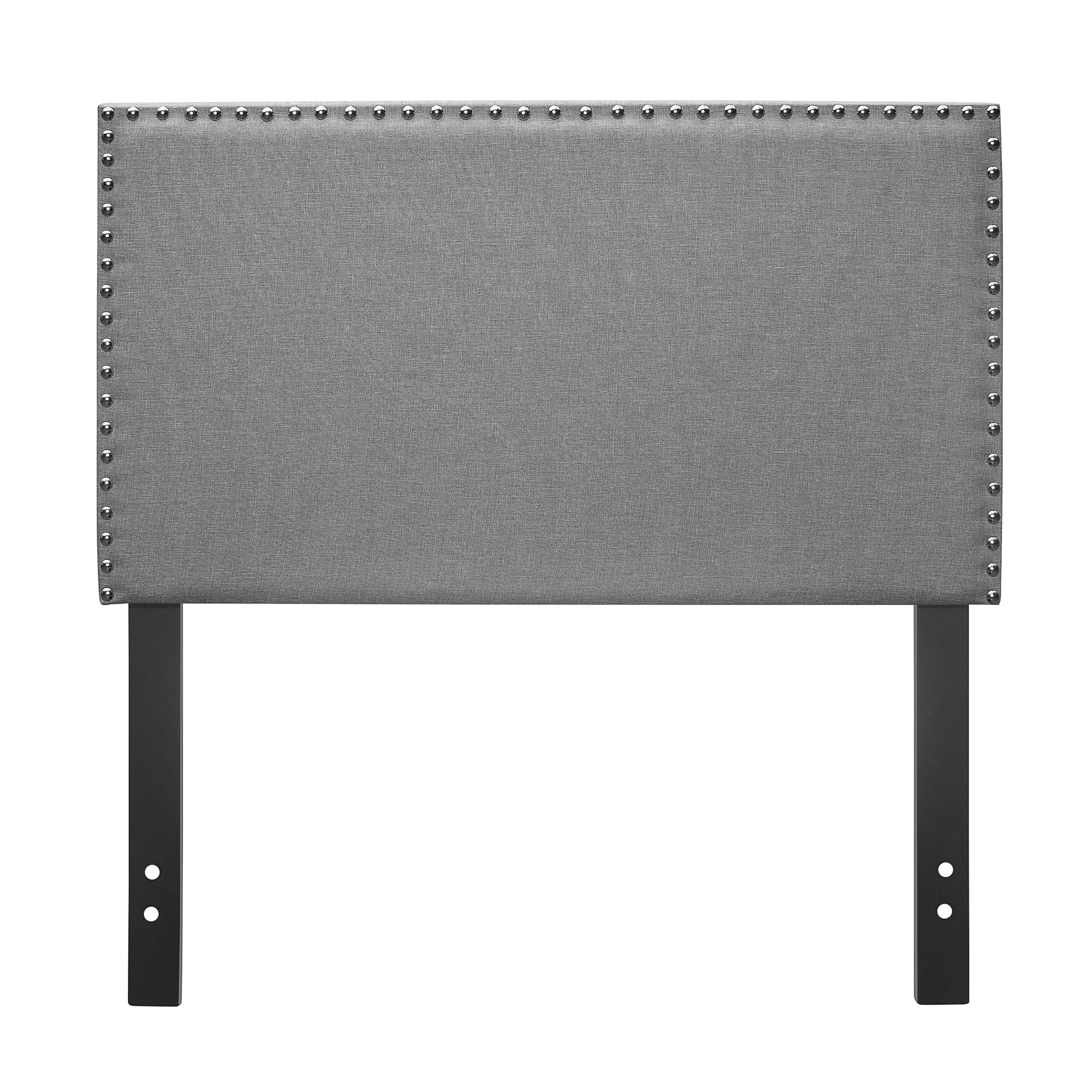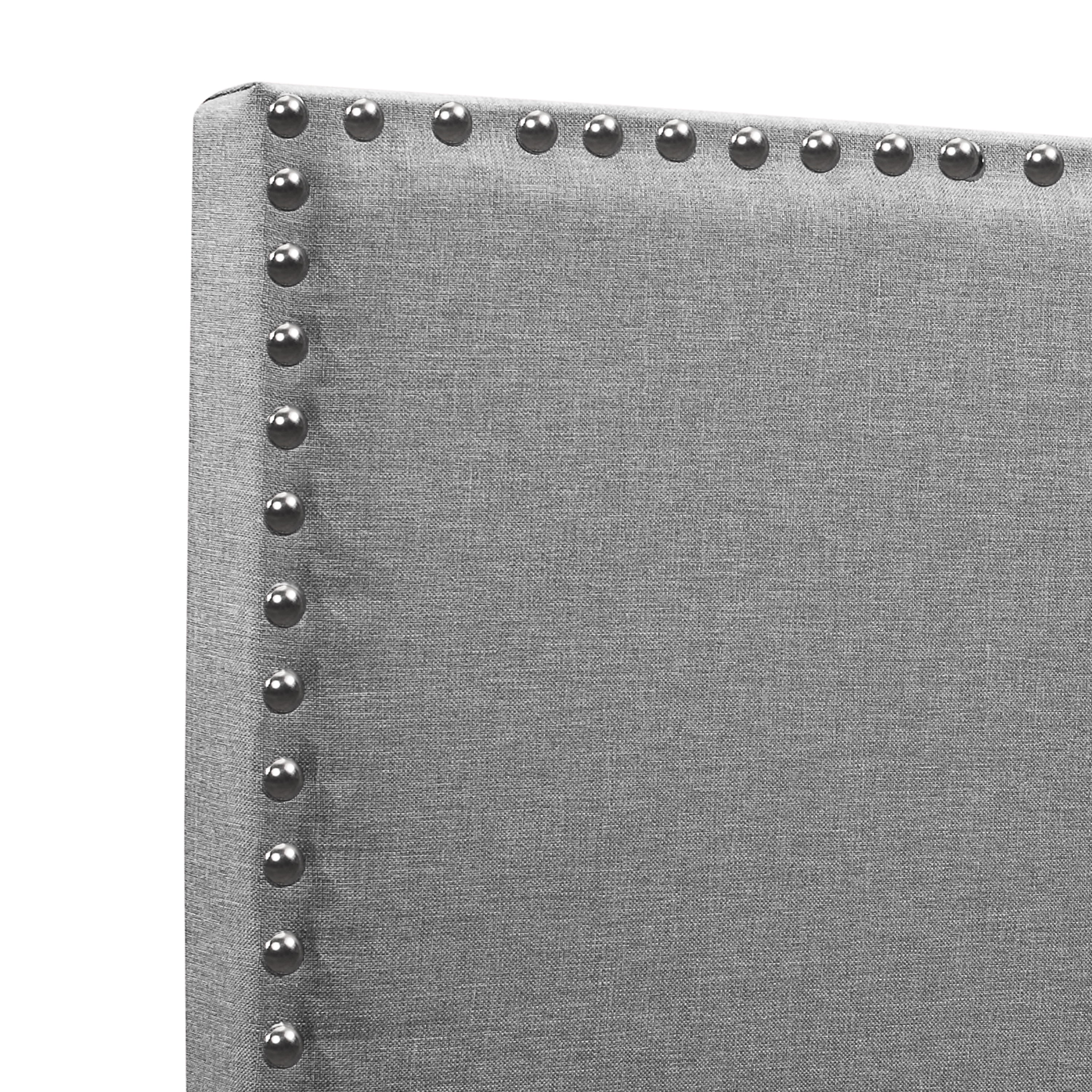LIKIMIO Twin Platform Bed Frame with Upholstered Headboard and Wood Slat Support, Gray