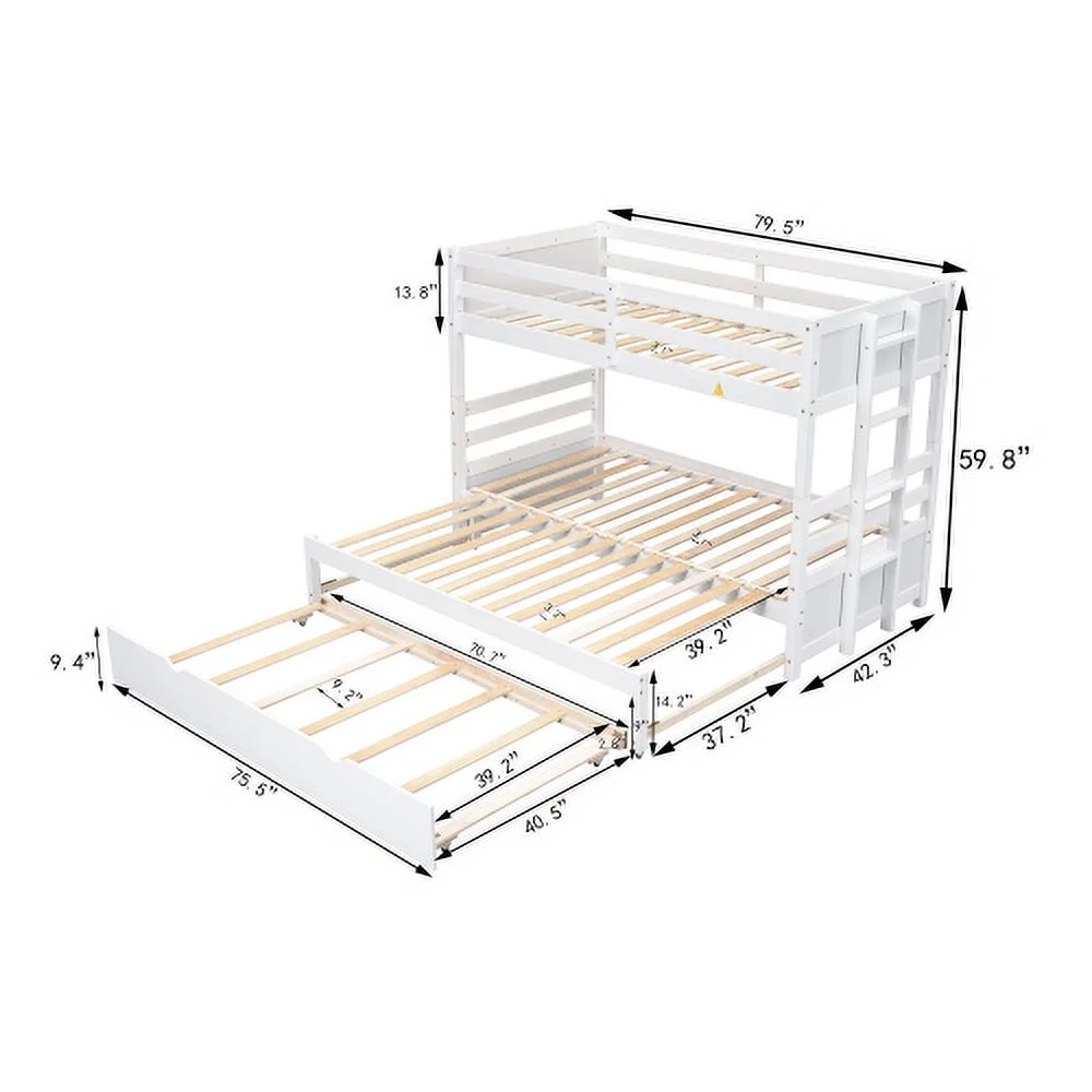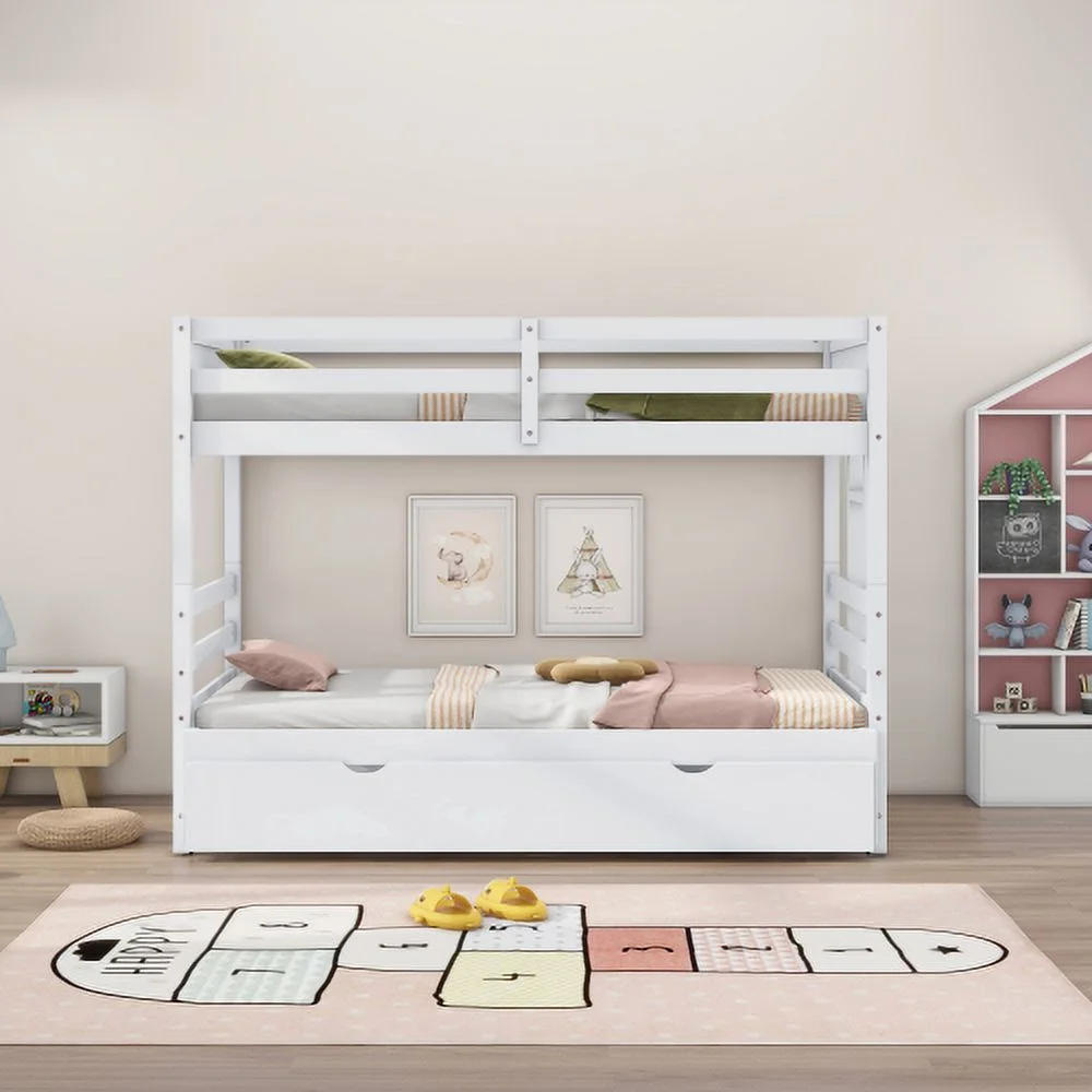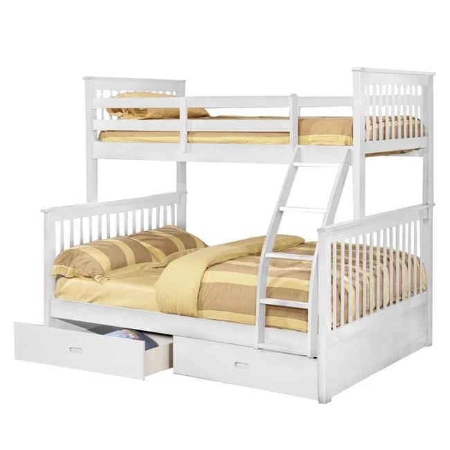 Mission Style Wooden Bunk Bed with 2 Drawers, White - Twin Over Full Size