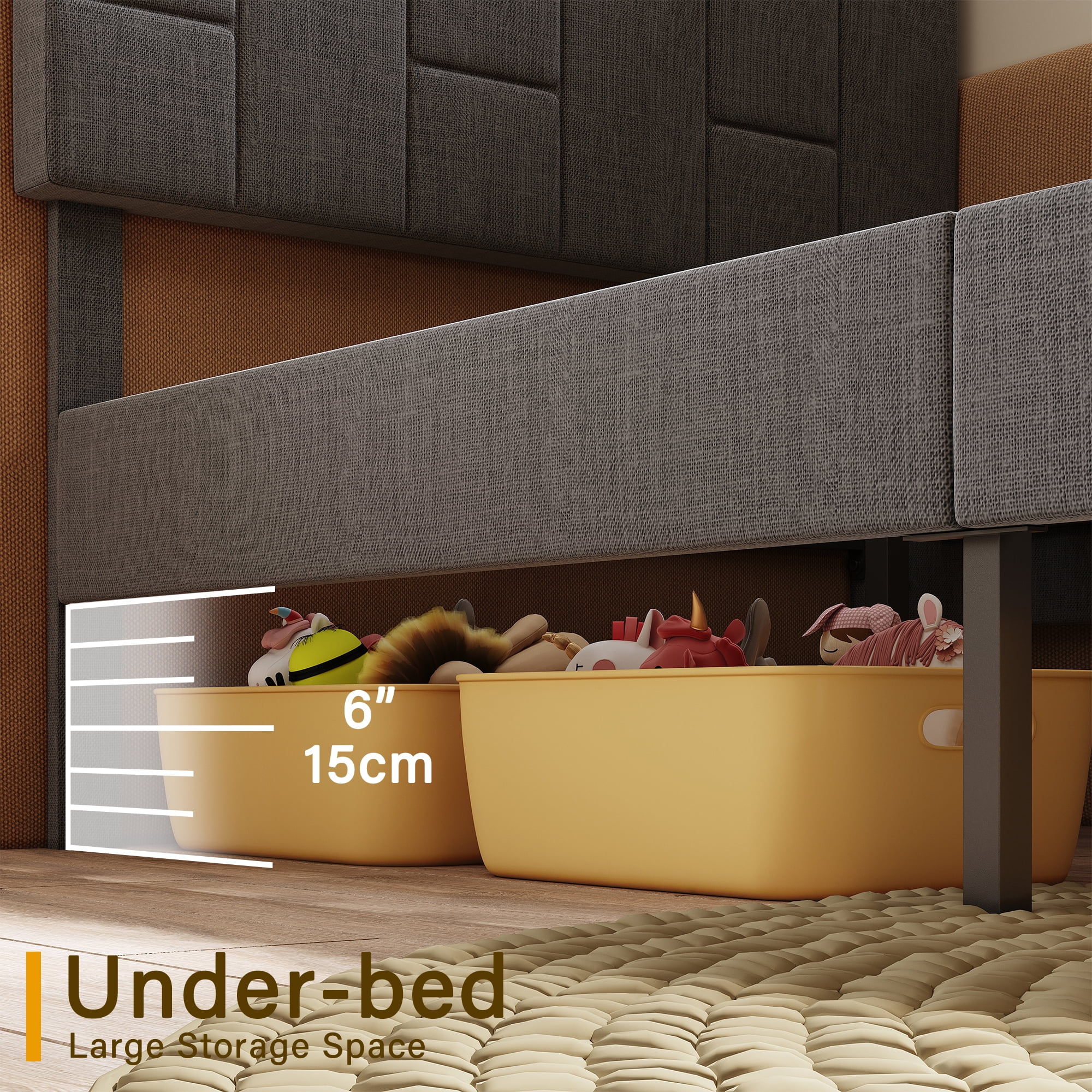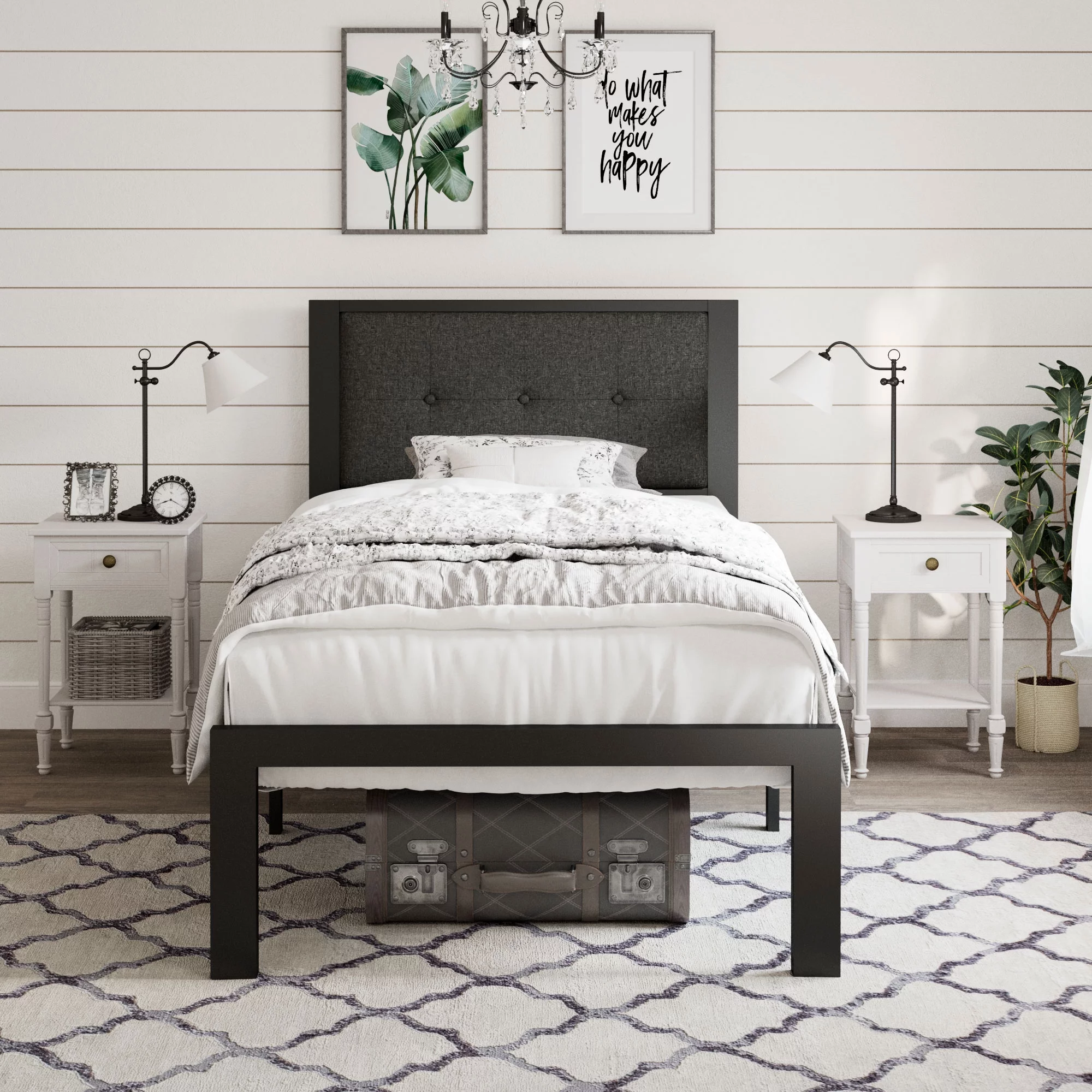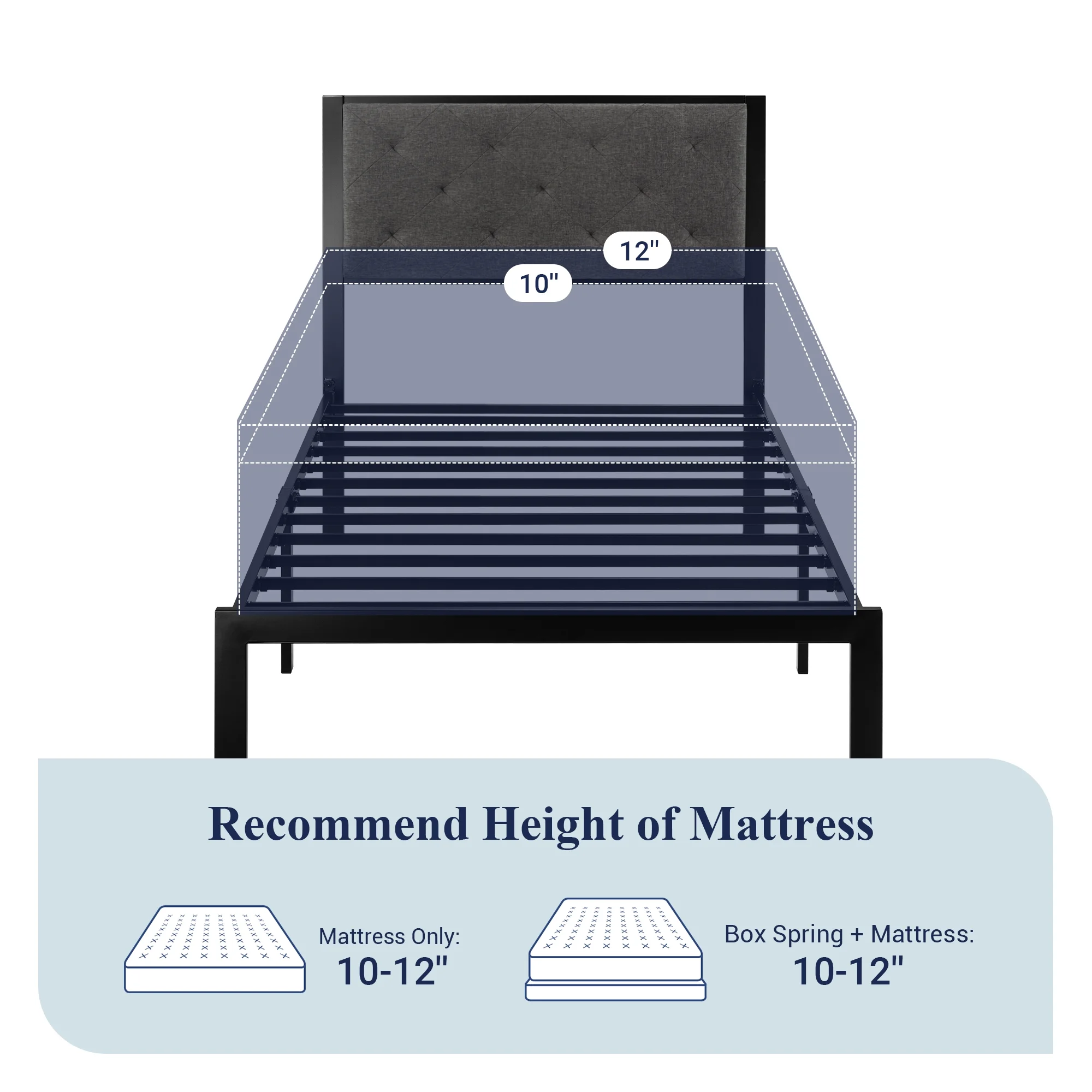 Amolife Twin Size Metal Bed Frame with Upholstered Headboard, Dark Grey